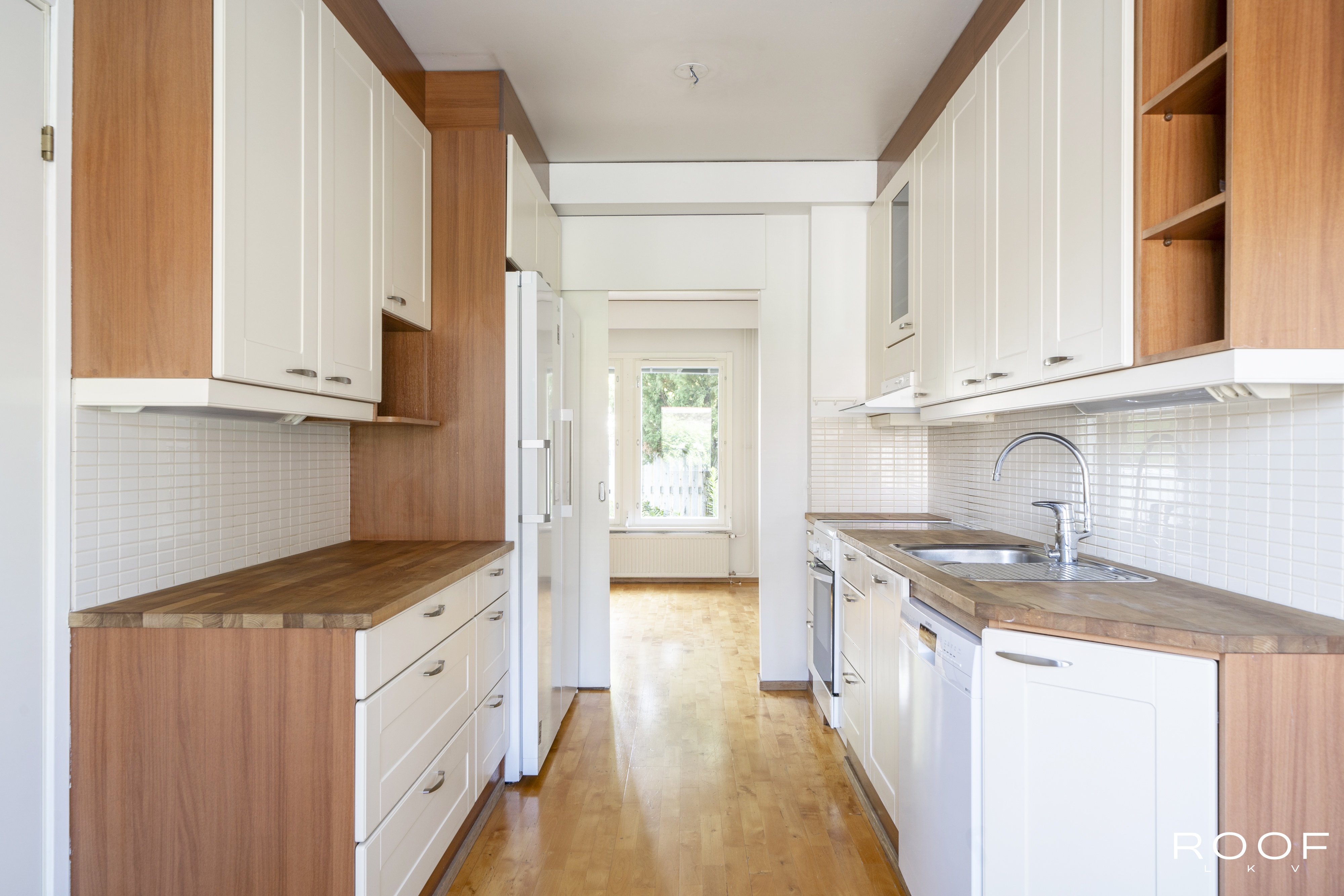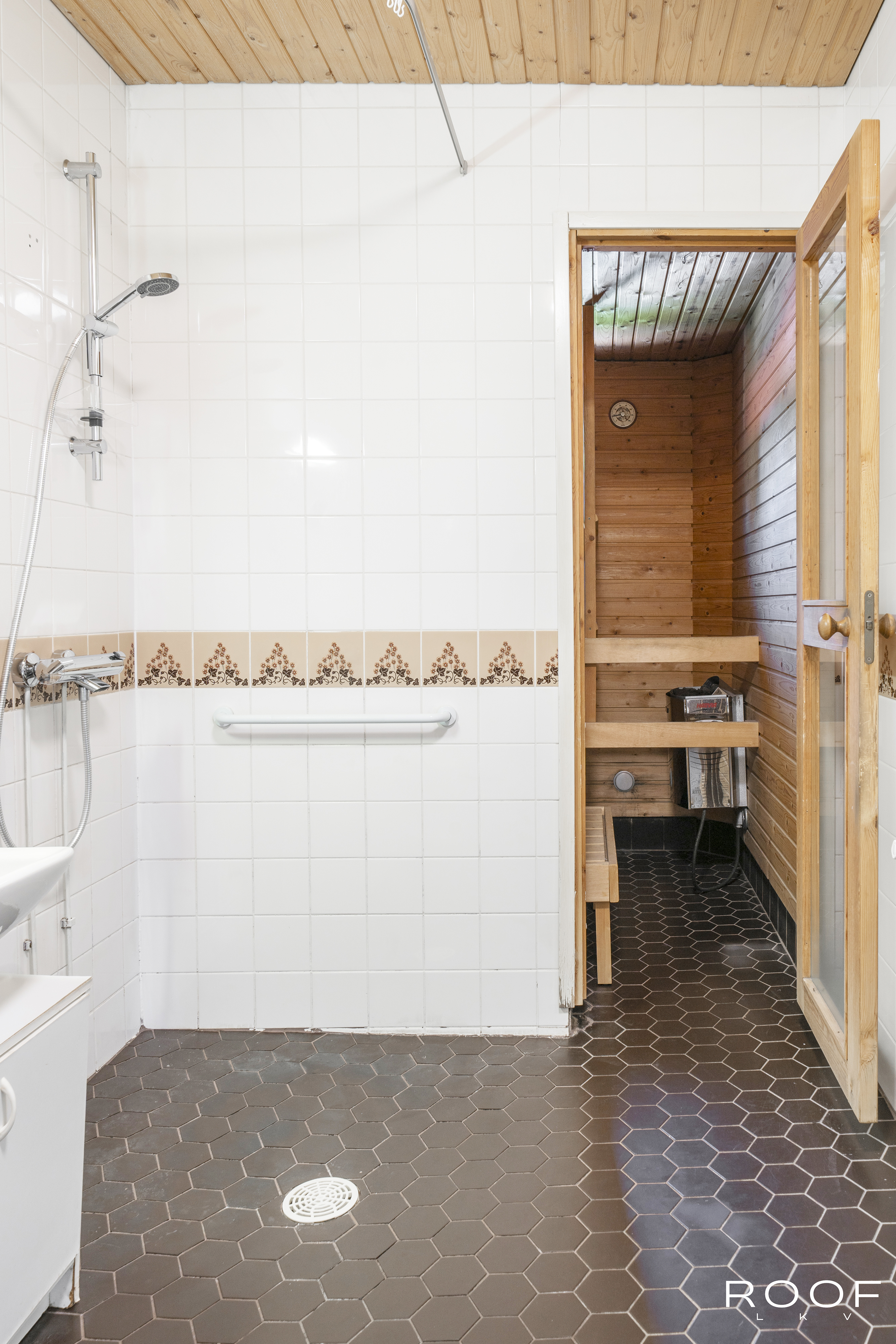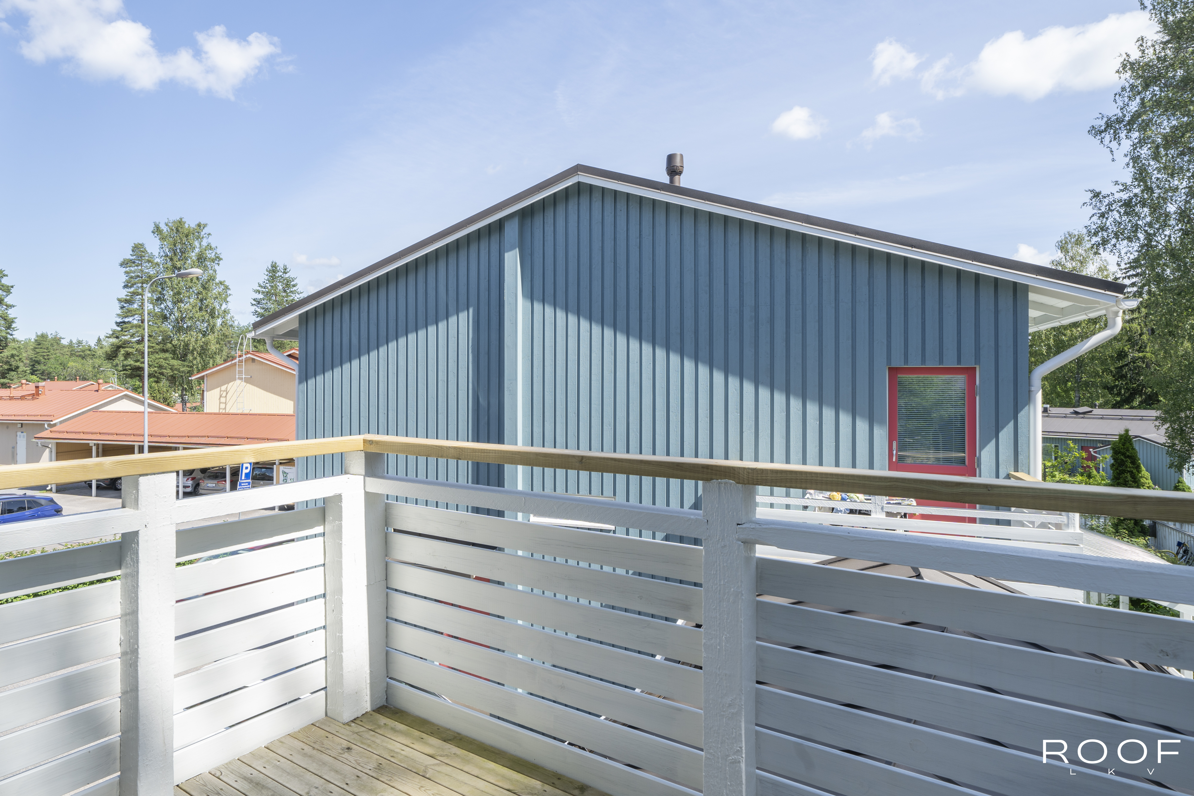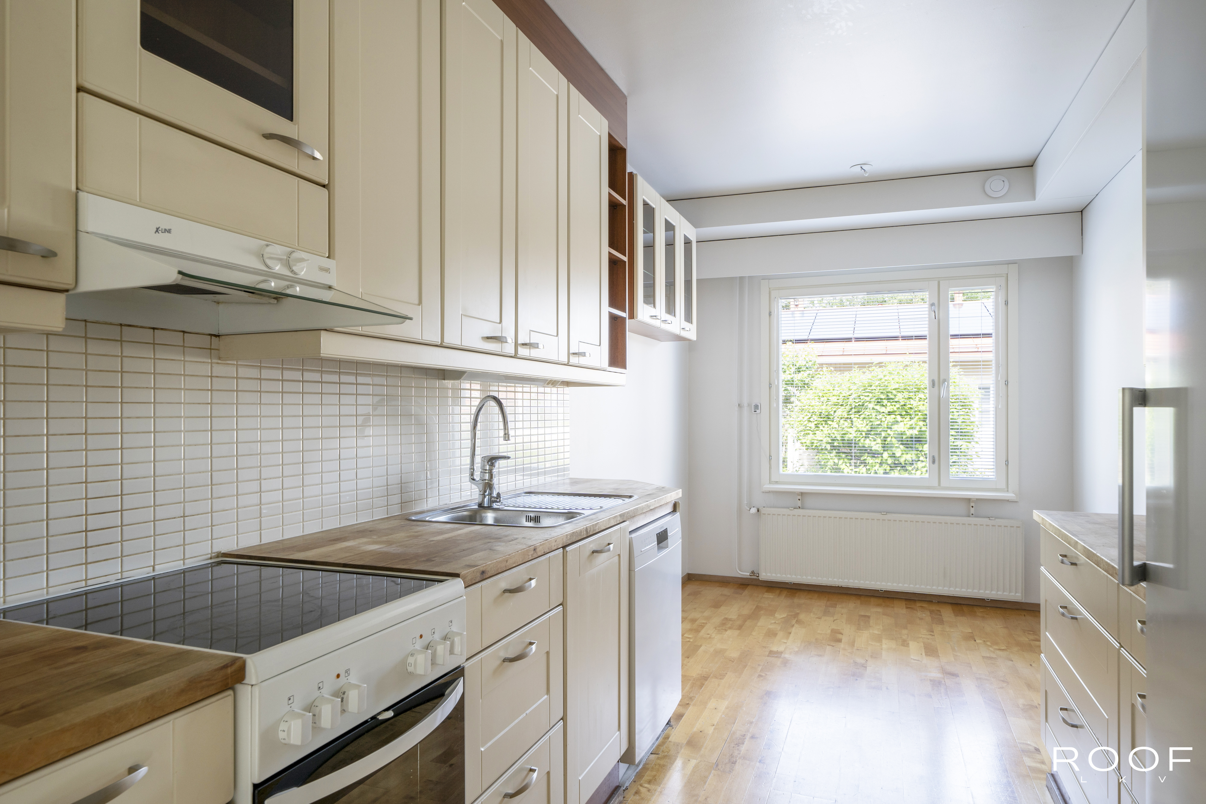 Yläkerrassa tilavat makuuhuoneet ja arjen toiminnot sijoittuvat alakertaan. Keittiö on oma kokonaisuutensa monipuolisine kotimaisine kaapistoineen ja uusittuine kodinkoneineen. Kaunis ja tilava eteinen, josta upeat puusepän tekemät lasiovet olohuoneeseen. Olohuoneesta on laaja näkymä suojaiselle ja aidatulle omalle takapihalle. WC molemmissa kerroksissa, sauna ja kylpyhuone yläkerrassa. Tilava vaatehuone. Kaksikerroksisuus antaa omaa rauhaa ja tilaa. Tilavat huoneet tekevät asumisesta miellyttävää kaikille perheenjäsenille. Taloyhtiössä on juuri valmistunut katto- ja ulkomaalausremontti, jonka yhteydessä kaksikerroksisten talojen päätylaudoitukset uusittiin. Taloyhtiö on rakennettu laadukkaasti perinteisellä tavalla, ei elementeistä kasaamalla. Yhtiöjärjestyksen mukaan huoneisto 4 h + k + s. Tämä koti tarjoaa tilaa ja toimivuutta perheille sekä luonnonläheistä asumista rauhallisella, perheiden suosimalla Hakuninmaan asuinalueella.