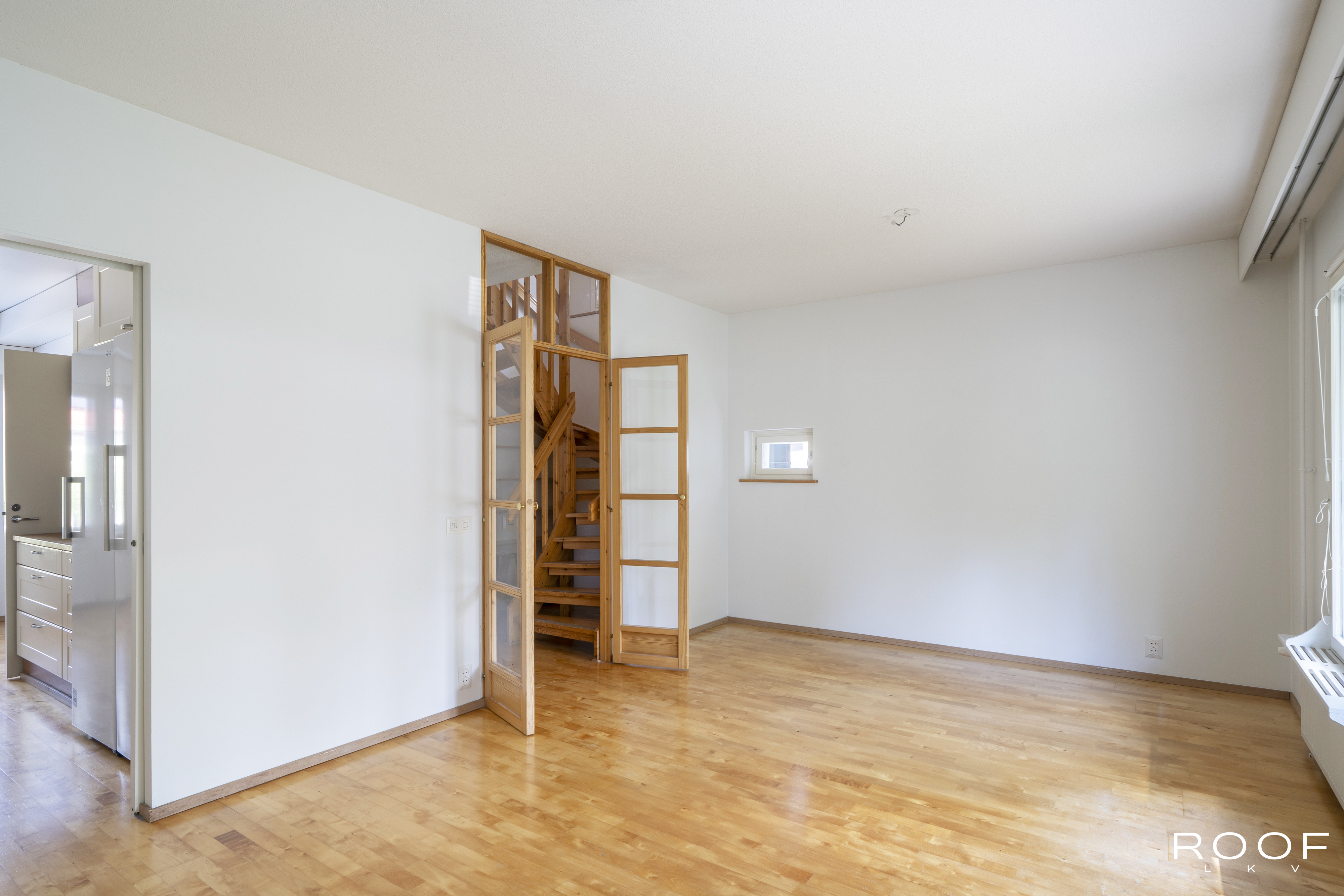 Tilava 99,5 neliömetrin paritalohuoneisto tarjoaa avaraa ja valoisaa asumista kahdessa kerroksessa.