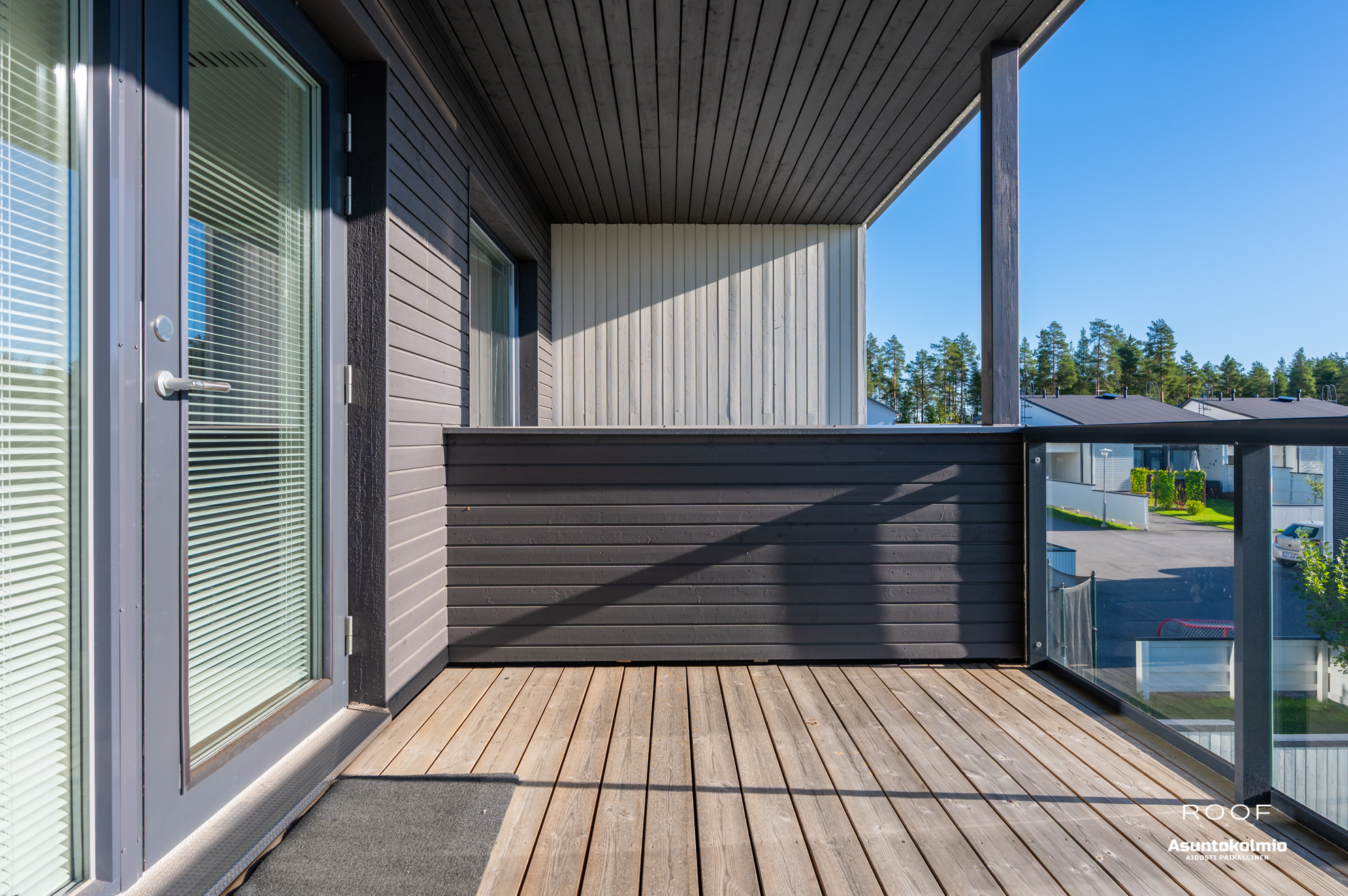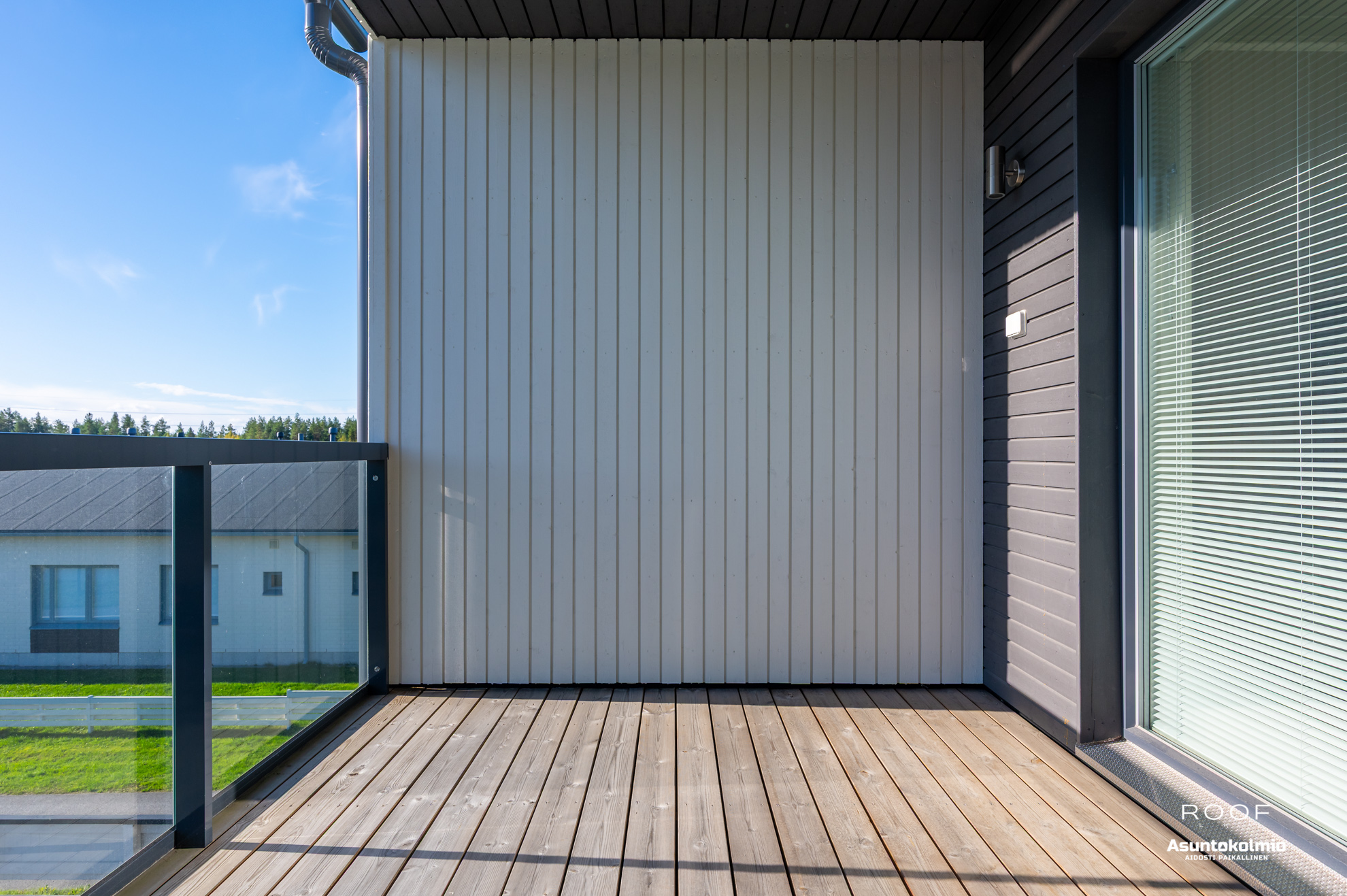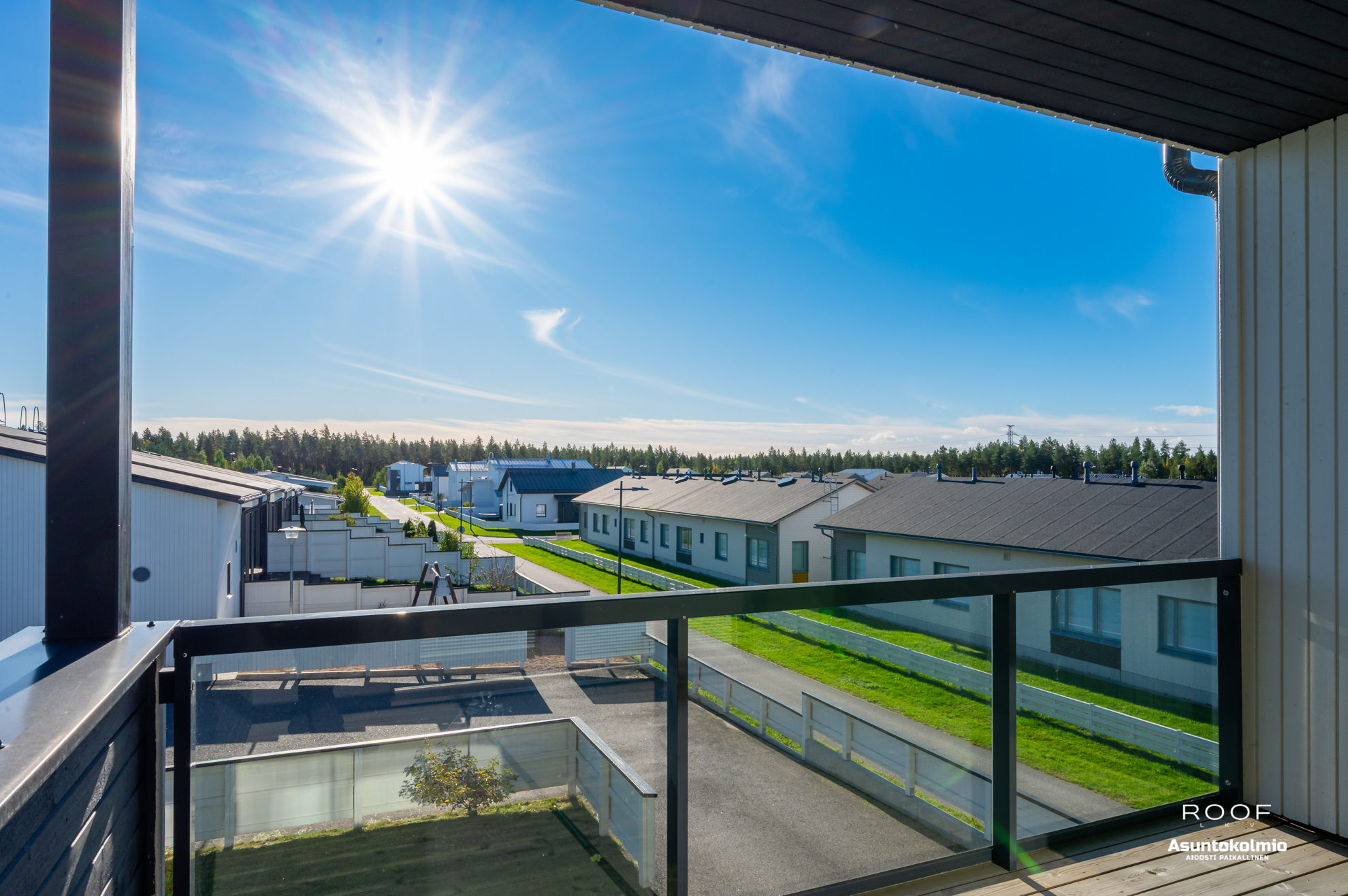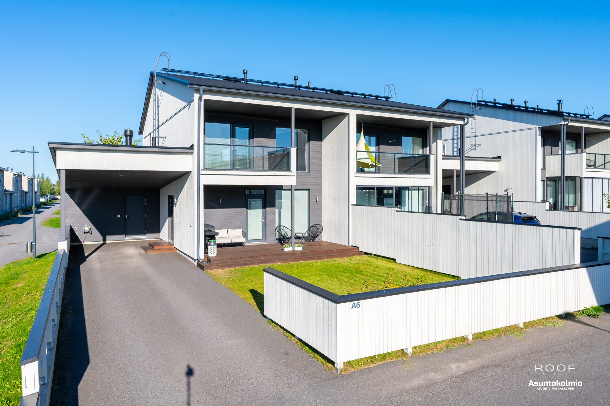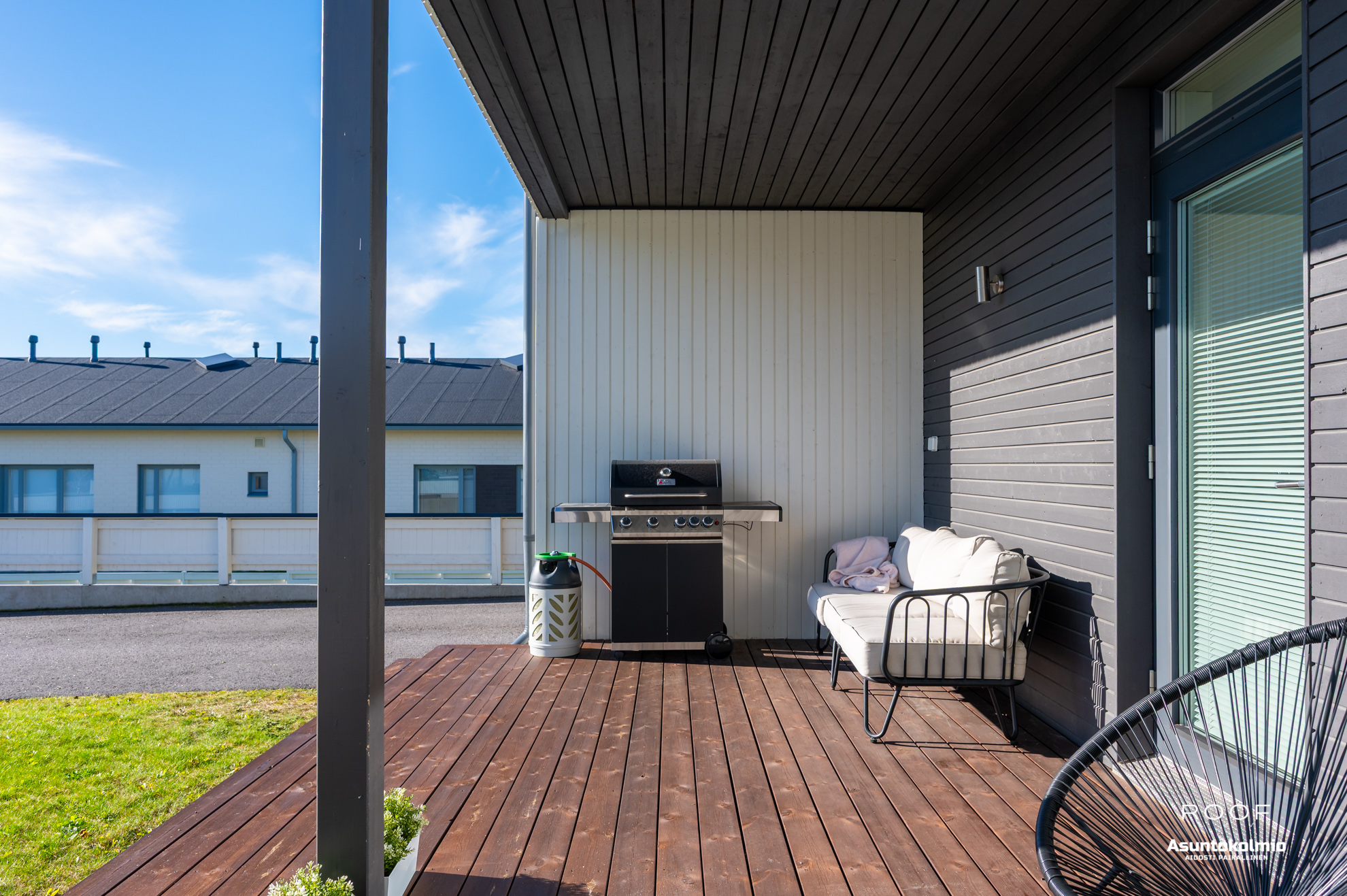 Huoneiston aurinkoinen piha on selkeästi aidattu, ja ennen kaikkea mukavan kokoinen. Osittain katettu terassi on mahdollista halutessaan myös lasittaa, joten terassilta löytyy tilaa nauttia kesäpäivistä. Lämmitysmuotona on kaukolämpö vesikiertoisella lattialämmityksellä, ilmanvaihto hoituu koneellisesti ja mikäli tarvetta, olohuoneesta löytyy varaus myös tulisijalle. Huoneiston edustalta löytyy autokatos, ja pihalle sopii tarvittaessa useampikin auto. Autokatoksessa sijaitsee lämmin lähes 8m2 varasto ja väestönsuojassa on lisää huoneistolle varattua säilytystilaa.