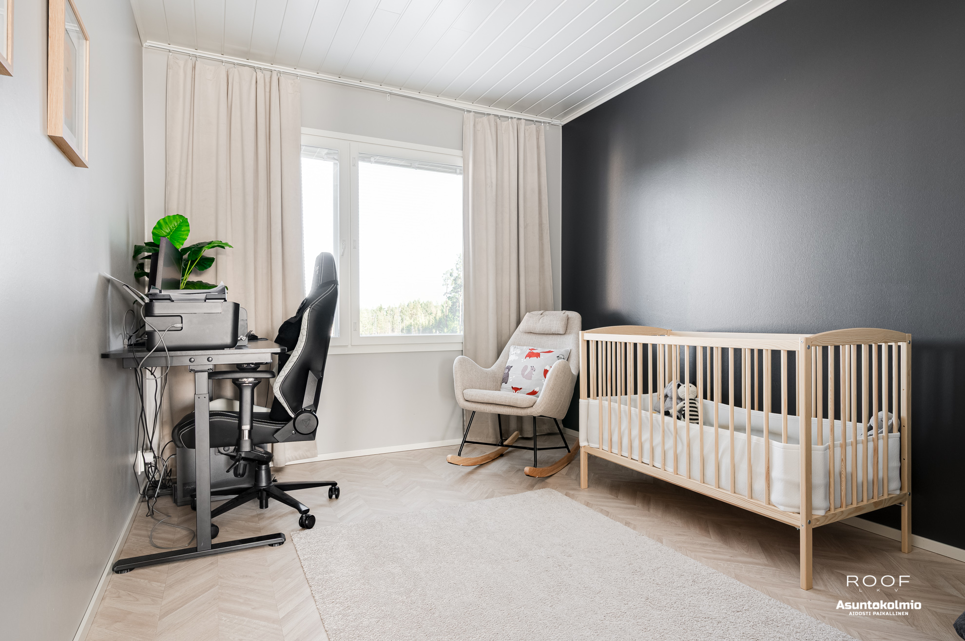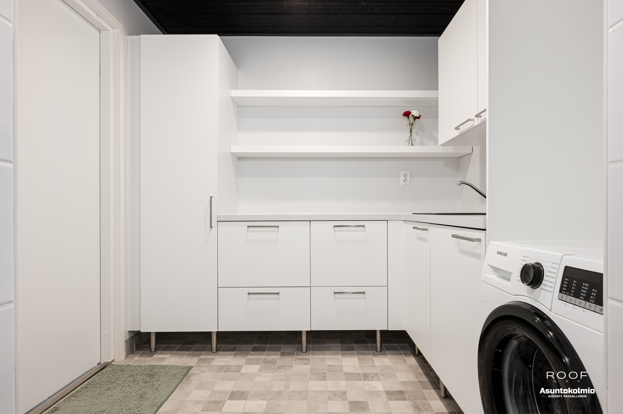 Tervetuloa As Oy Oulun Metsäretkeen, tähän vuonna 2018 valmistuneeseen yhtiöön! Asuntoon on tehty rakennusvaiheessa todella runsaalla kädellä muutostöitä. Koko Puustellin laadukas keittiö on räätälöity toiveiden mukaan, kuivien tilojen lattiat ovat joko kalanruotokuvioista laminaattia tai laattaa, eivätkä pesutilatkaan ole säästyneet muutostöiltä. Molemmista kerroksista löytyy kylpyhuoneet ja alakerrassa sijaitsee myös erillinen wc sekä kodinhoitohuone.