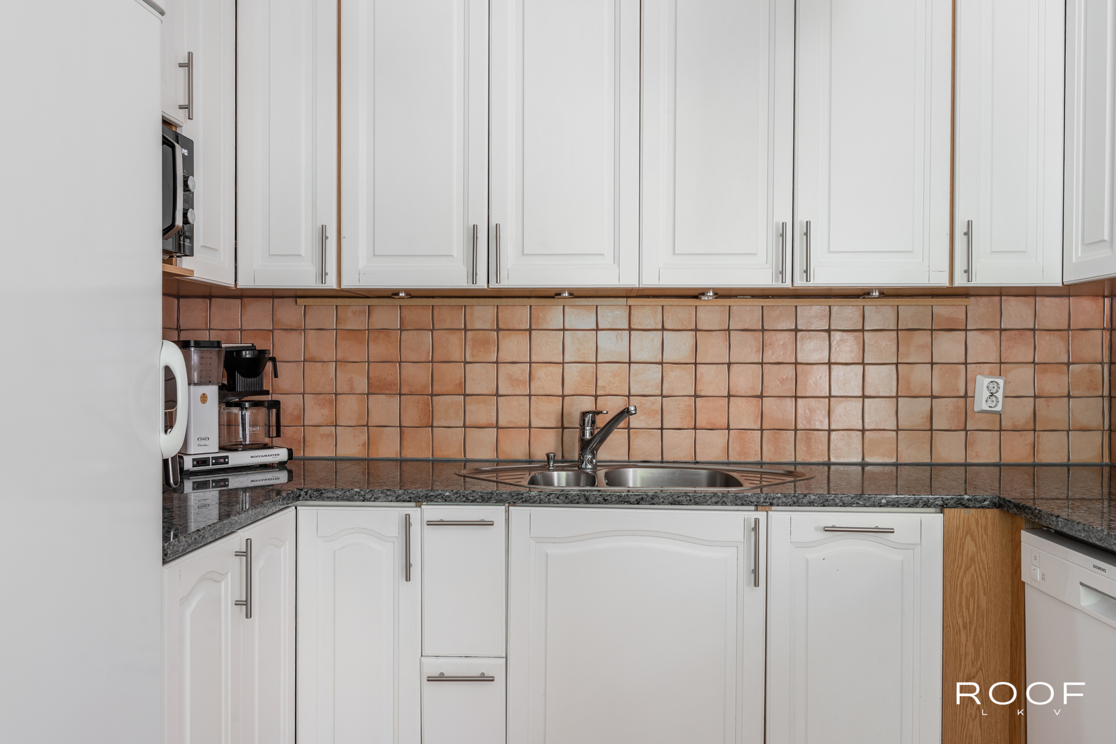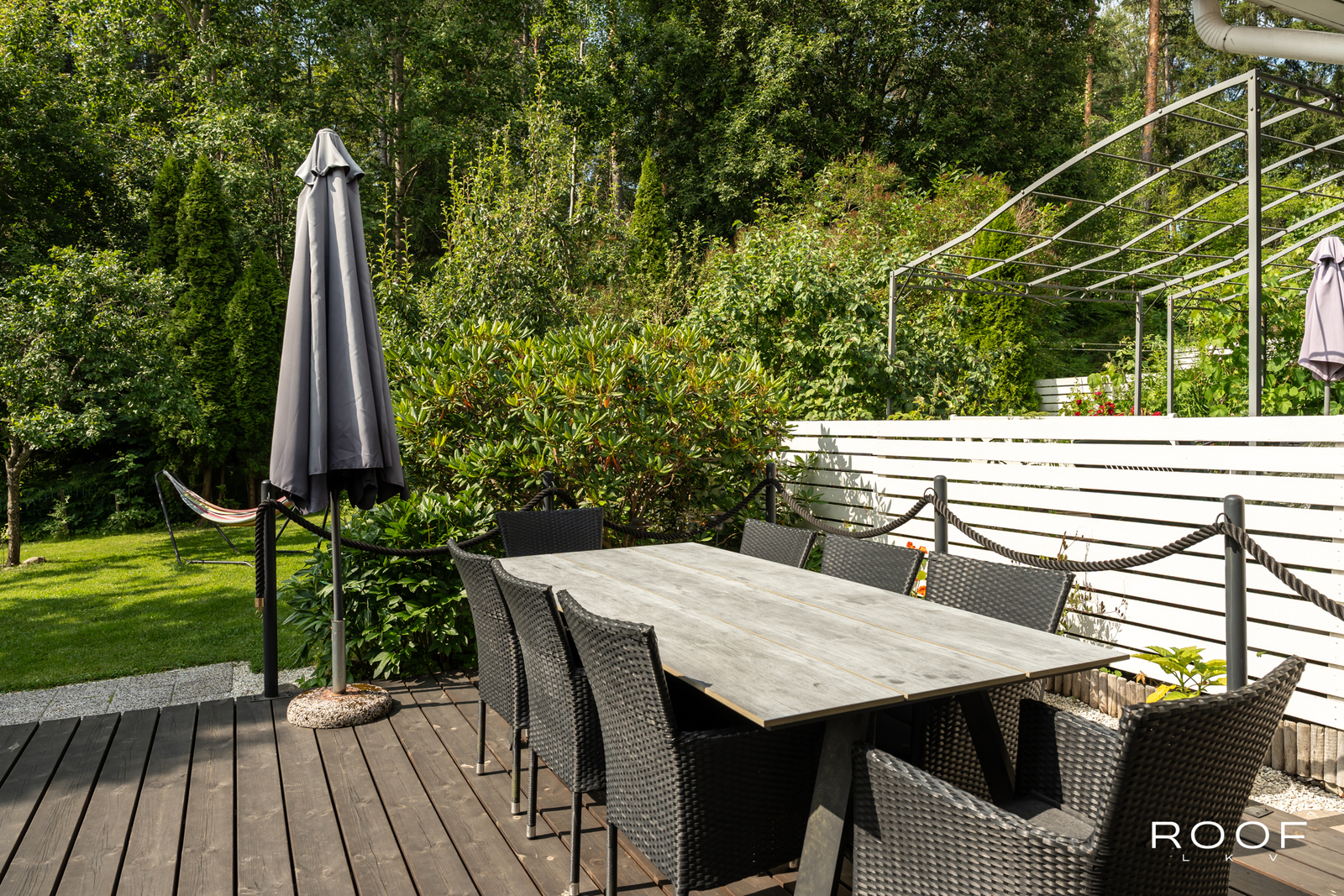 Takapiha on avara ja aurinkoinen, tarjoten hyvät puitteet oleskeluun ja vapaa-aikaan. Taloyhtiön yhteiset tilat, kuten leikkimökki, hiekkalaatikko ja keinu, ilahduttavat perheen pienimpiä.