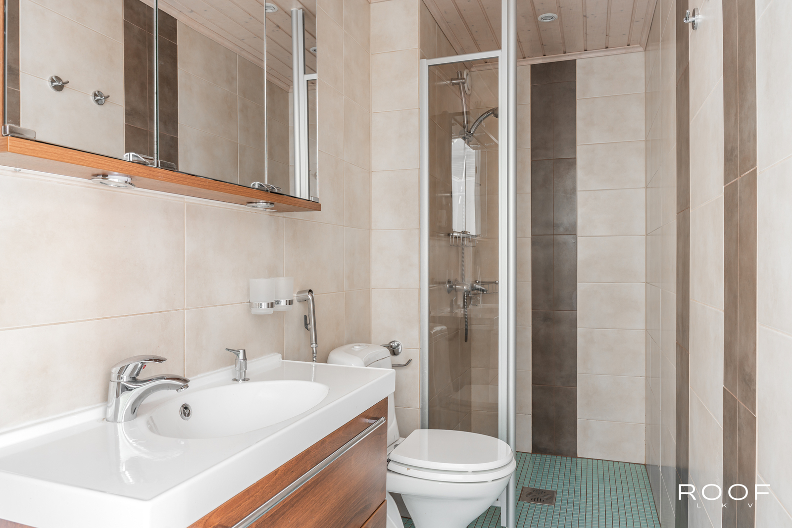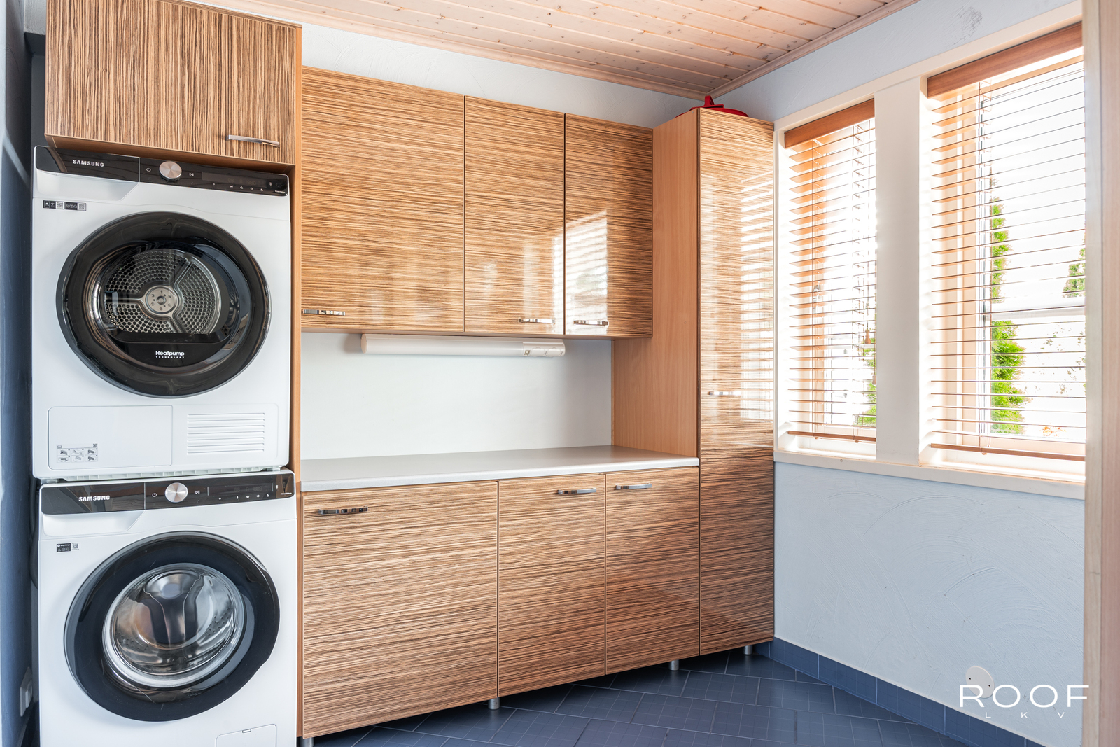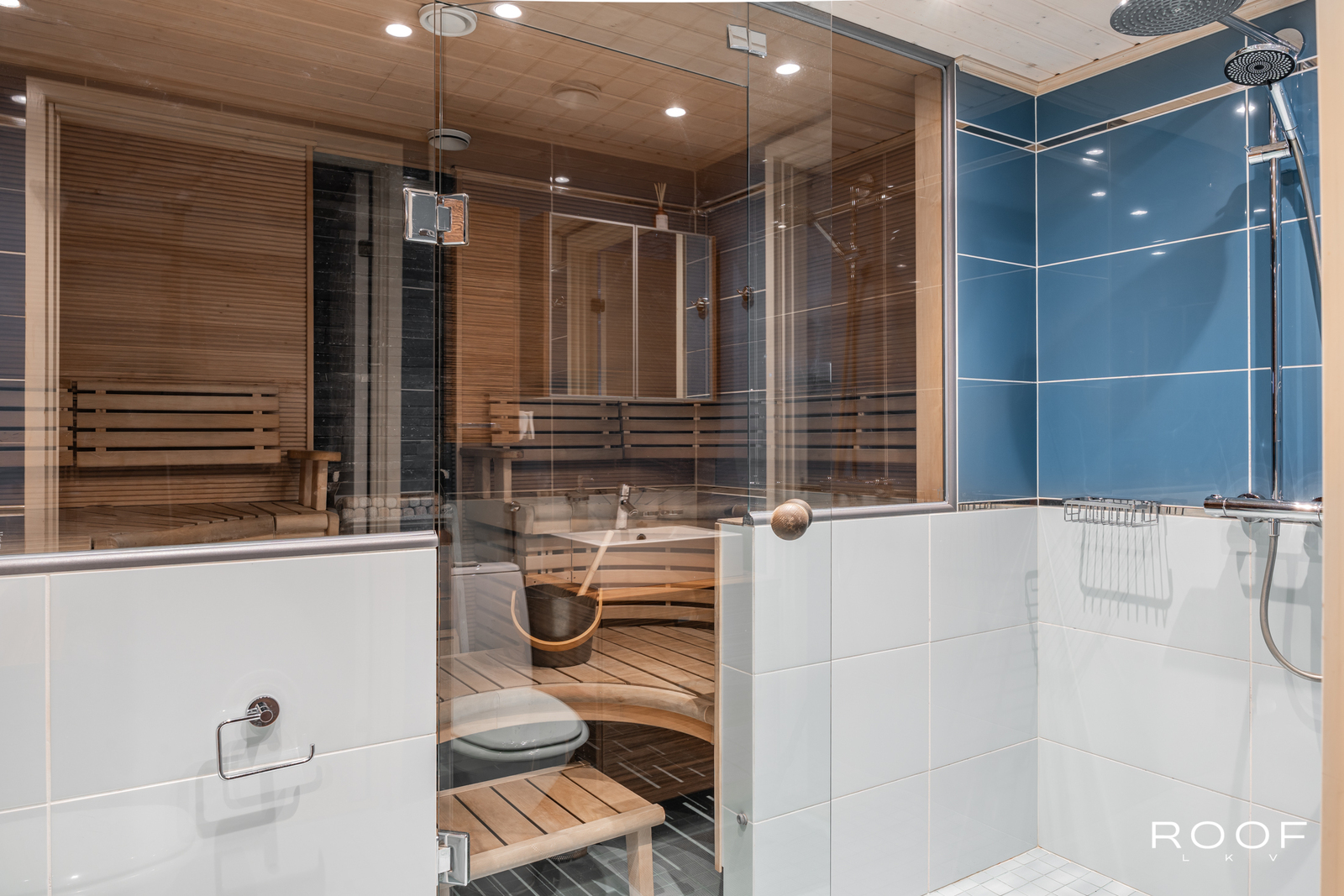 Lämmityskustannuksia voi pienentää hyödyntämällä alakerran takkaa. Saunaosasto ja kodinhoitotilat tekevät arjesta sujuvaa, ja säilytystilaa on runsaasti.