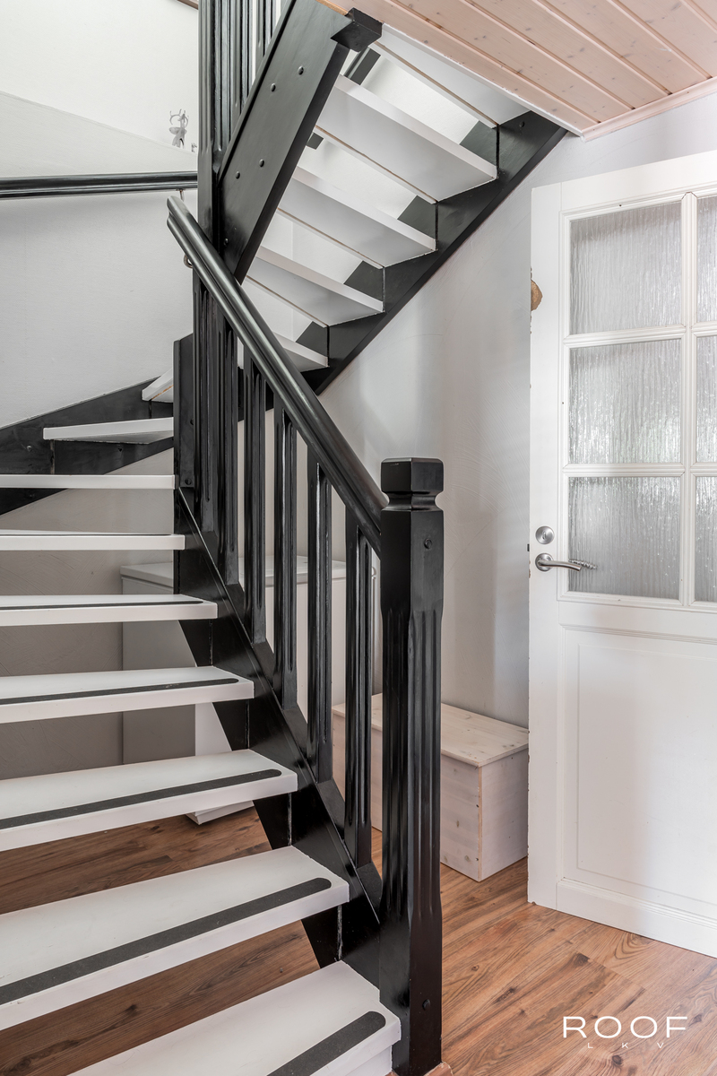 Huoneistoon A 1 rakennettu portaat asuinkerroksen ja kellarin välille.