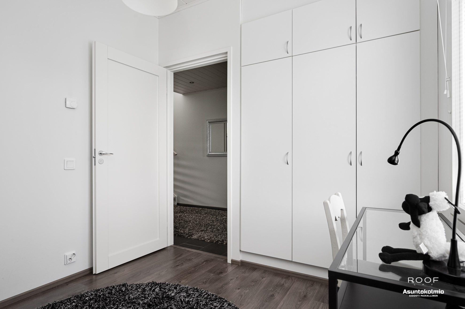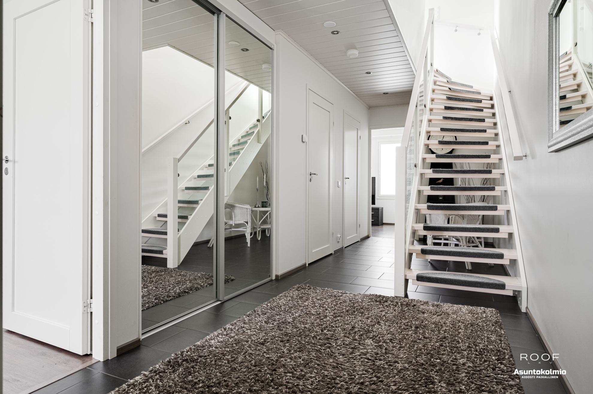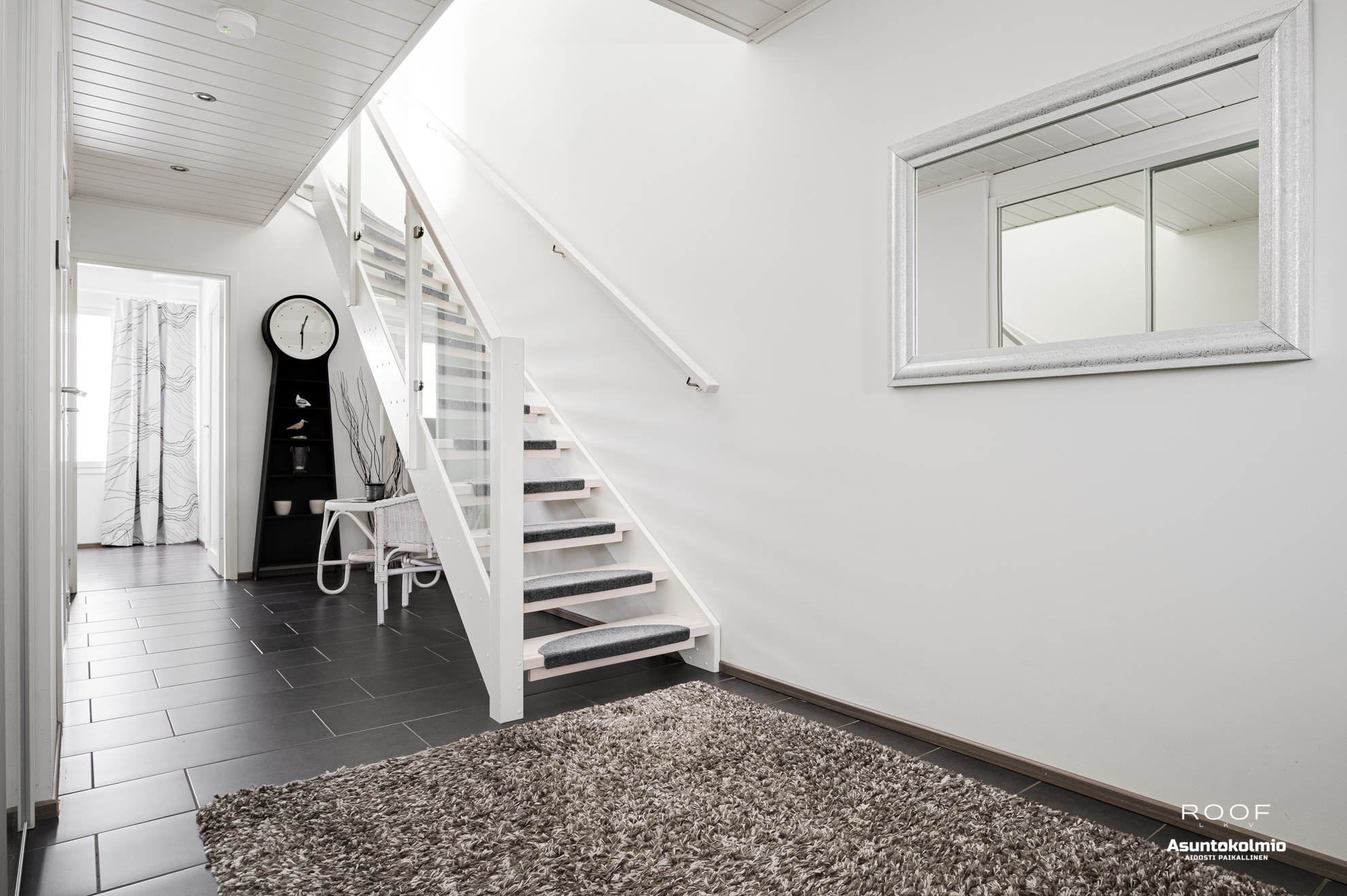 Kahden vaatehuoneen ja runsaiden kiinteiden kaapistojen ansiosta säilytystila ei lopu varmasti kesken. Lämmitysmuotona on kaukolämpö vesikiertoisella lattialämmityksellä, ja ilmanvaihto hoituu koneellisesti. Lisäksi kesähelteillä viilentää yläkertaan asennettu ilmalämpöpumppu. Yhtiö on hyvin hoidettu, ja vastikään on mm. maalattu kaikki julkisivut.