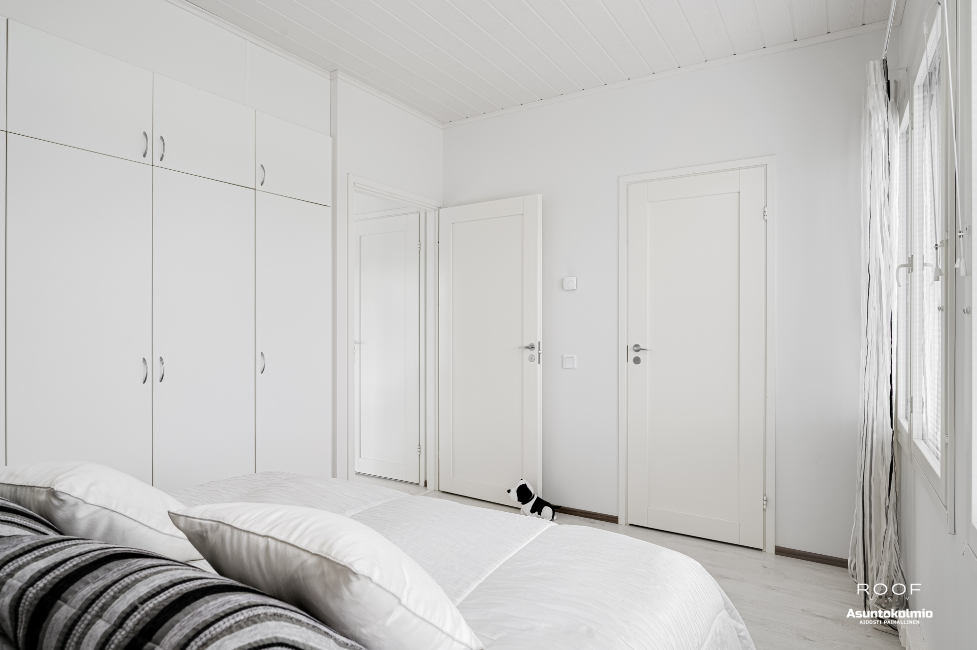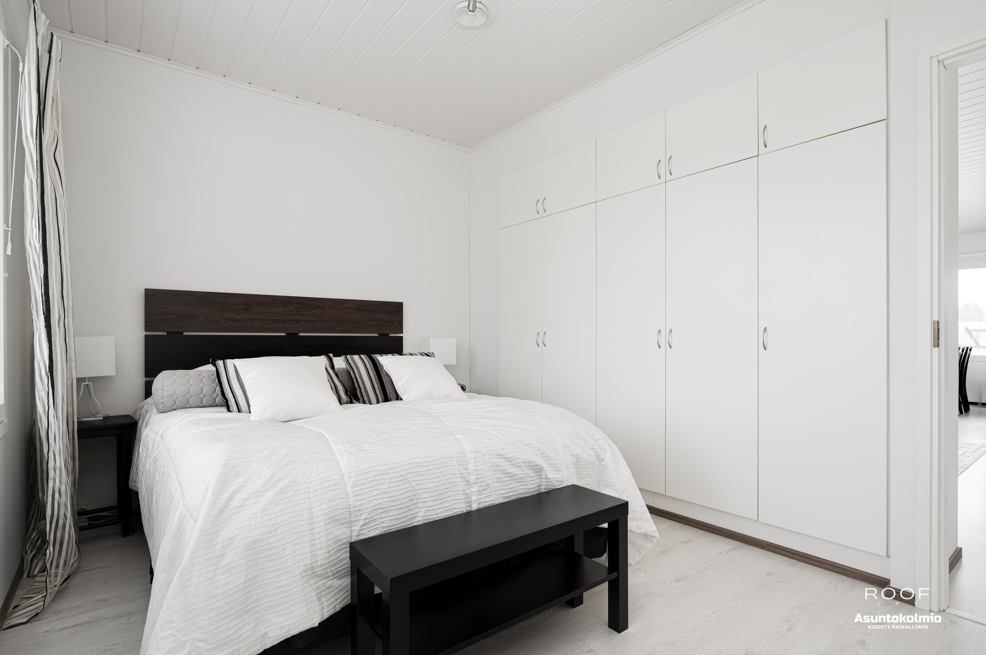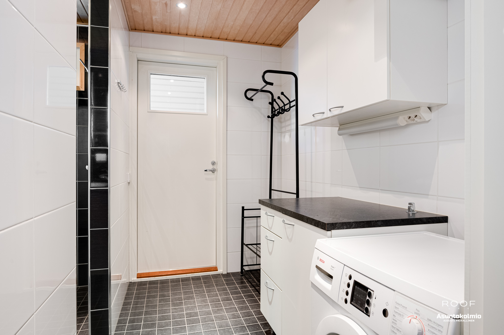 Kahden vaatehuoneen ja runsaiden kiinteiden kaapistojen ansiosta säilytystila ei lopu varmasti kesken. Lämmitysmuotona on kaukolämpö vesikiertoisella lattialämmityksellä, ja ilmanvaihto hoituu koneellisesti. Lisäksi kesähelteillä viilentää yläkertaan asennettu ilmalämpöpumppu. Yhtiö on hyvin hoidettu, ja vastikään on mm. maalattu kaikki julkisivut.