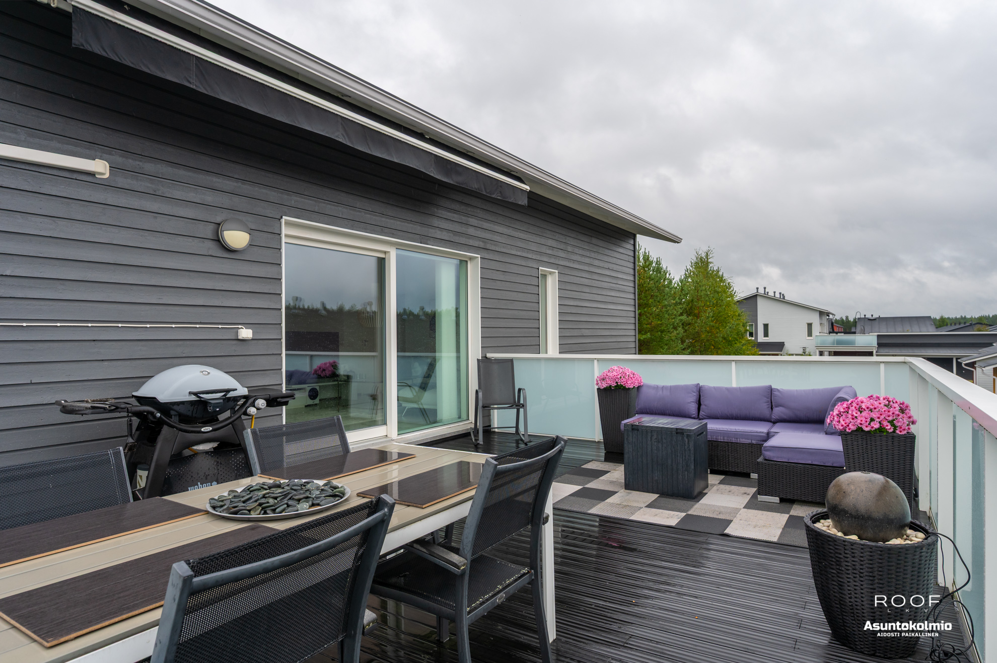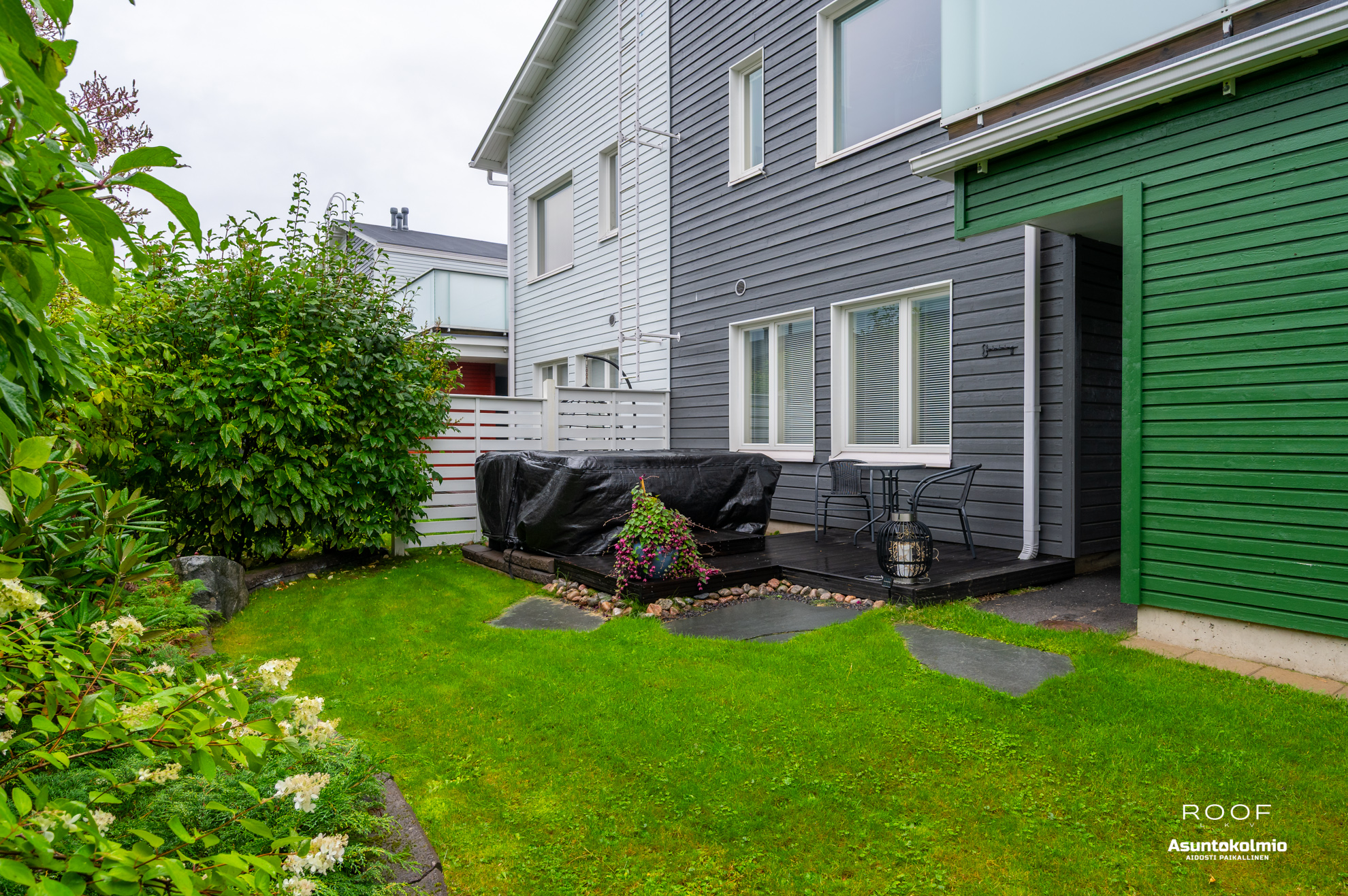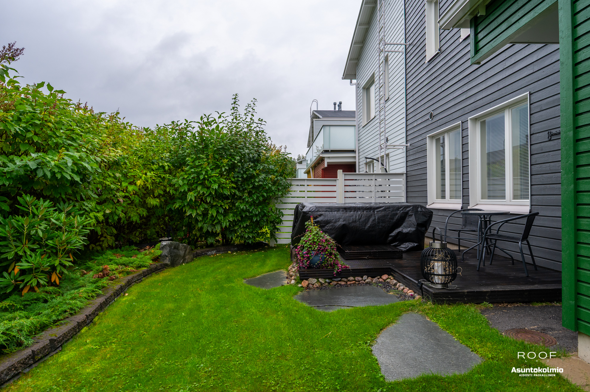 Tervetuloa As Oy Oulun Birdieen, tähän upeaan 105 m² paritalokotiin, joka sijaitsee yhtiön parhaalla paikalla! Tämä upea koti pitää sisällään poikkeuksellisen suuren kattoterassin sekä talotyypille erittäin harvinaisen eristetyn autotallin sähköisellä nosto-ovella. Lisäksi erittäin suojaiselta takapihalta löytyy toinen terassi porealtaineen, jonne on kätevä kulkea suoraan saunasta kodinhoitohuoneen ulko-oven kautta. Sekä kattoterassi että takapiha ovat aurinkoiseen etelä-lounaaseen suuntautuvia, joten voit nauttia auringosta käytännössä koko päivän, eikä niihin ole suoraa näköyhteyttä käytännössä mistään.