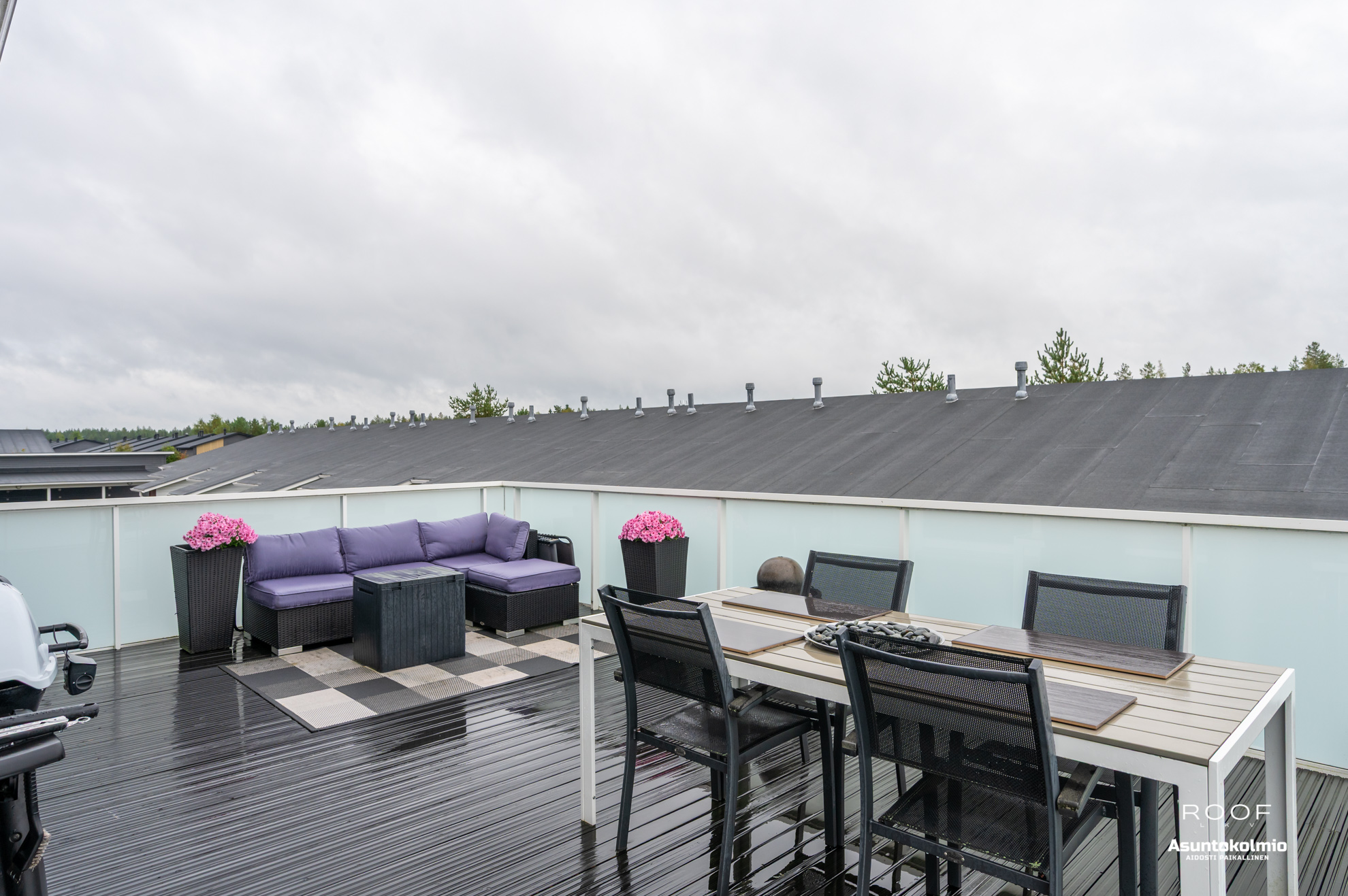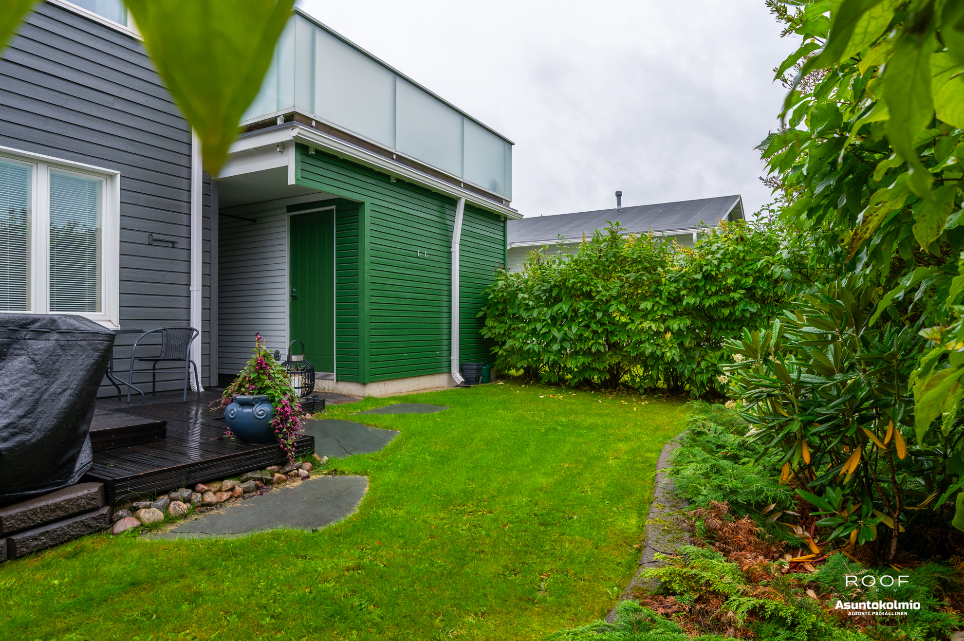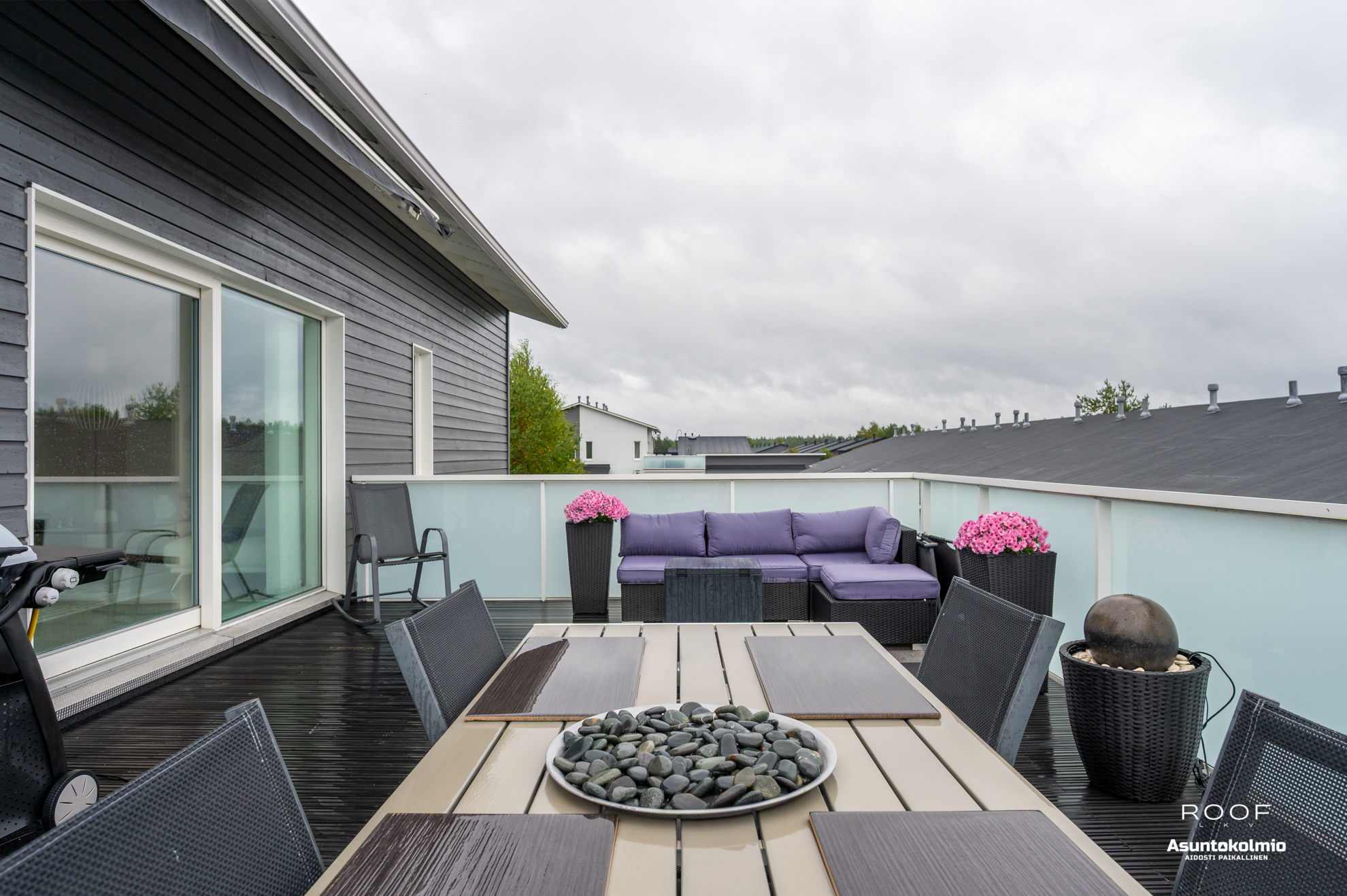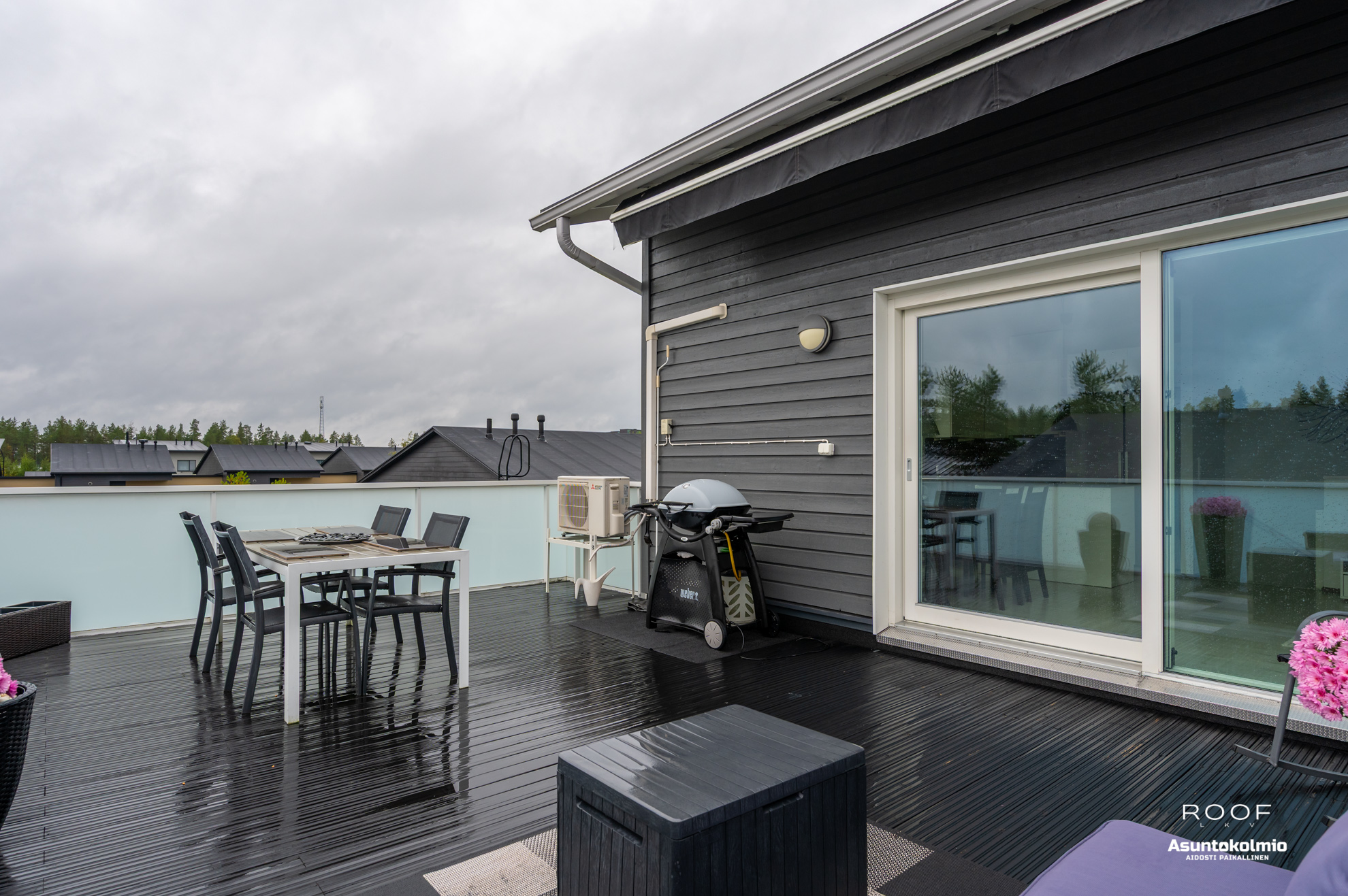 Tervetuloa As Oy Oulun Birdieen, tähän upeaan 105 m² paritalokotiin, joka sijaitsee yhtiön parhaalla paikalla! Tämä upea koti pitää sisällään poikkeuksellisen suuren kattoterassin sekä talotyypille erittäin harvinaisen eristetyn autotallin sähköisellä nosto-ovella. Lisäksi erittäin suojaiselta takapihalta löytyy toinen terassi porealtaineen, jonne on kätevä kulkea suoraan saunasta kodinhoitohuoneen ulko-oven kautta. Sekä kattoterassi että takapiha ovat aurinkoiseen etelä-lounaaseen suuntautuvia, joten voit nauttia auringosta käytännössä koko päivän, eikä niihin ole suoraa näköyhteyttä käytännössä mistään.