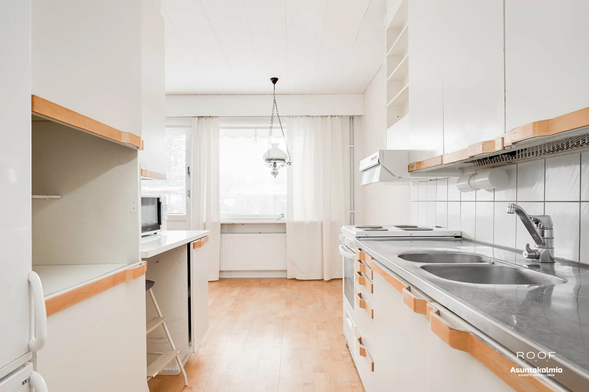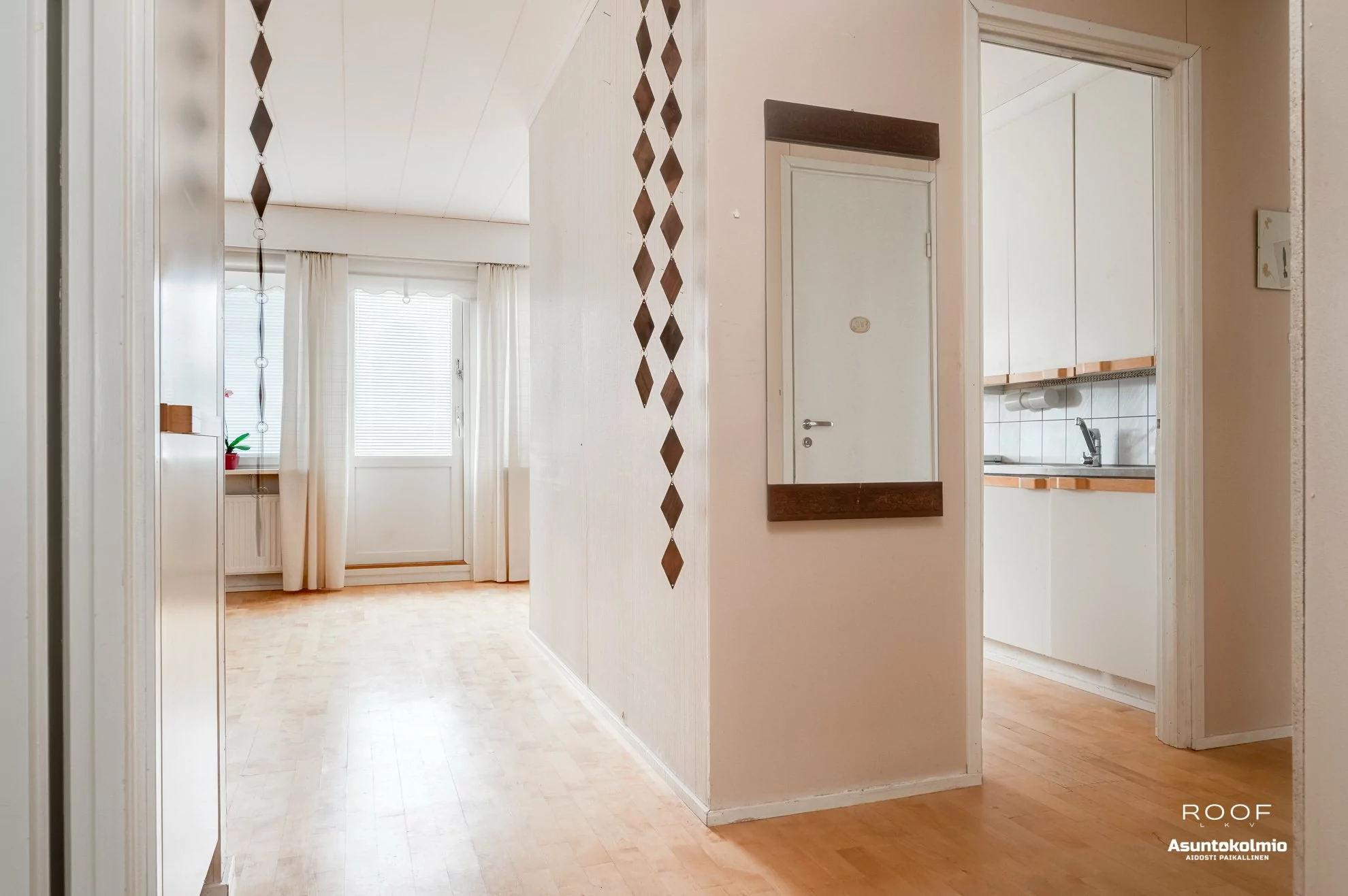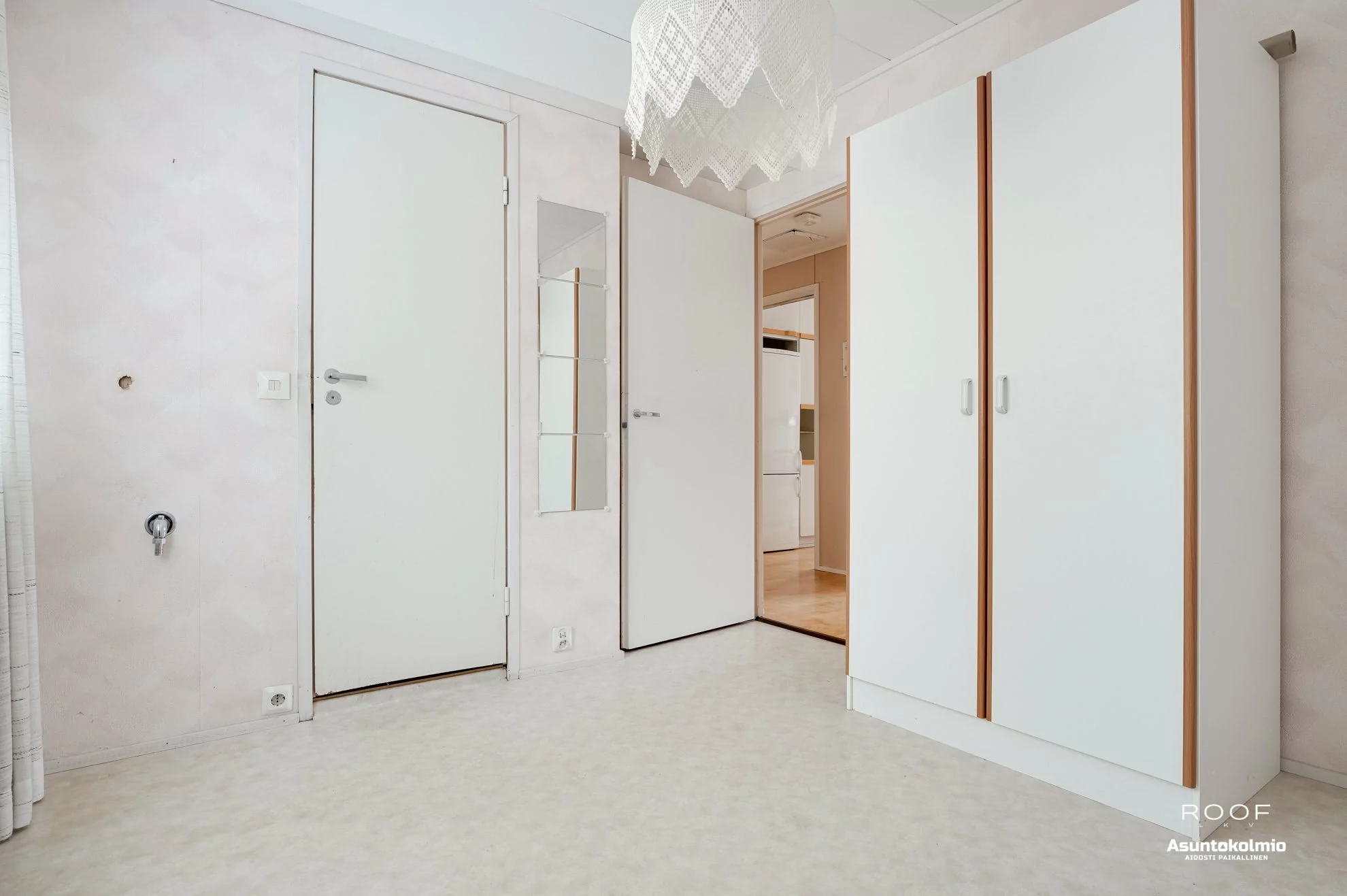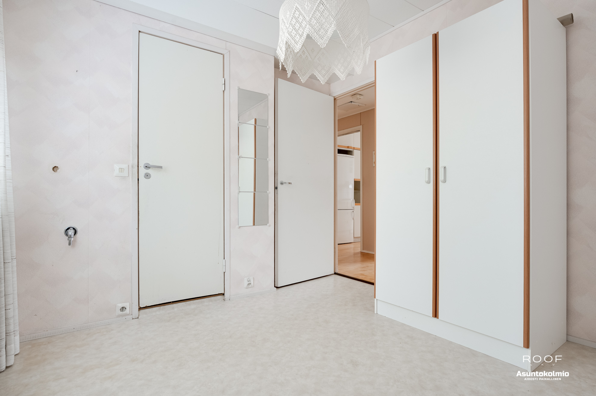 Ajalle tyypillisesti avarapohjainen ja valoisa asunto, josta saat laittaa mieluisesi. Pintoja onkin mukava päivittää nykyaikaan, kun kallein, eli kylpyhuoneremontti on jo tehty. Säilytystiloja on reilusti, eli runsas määrä kaapistoja ja iso vaatehuone.