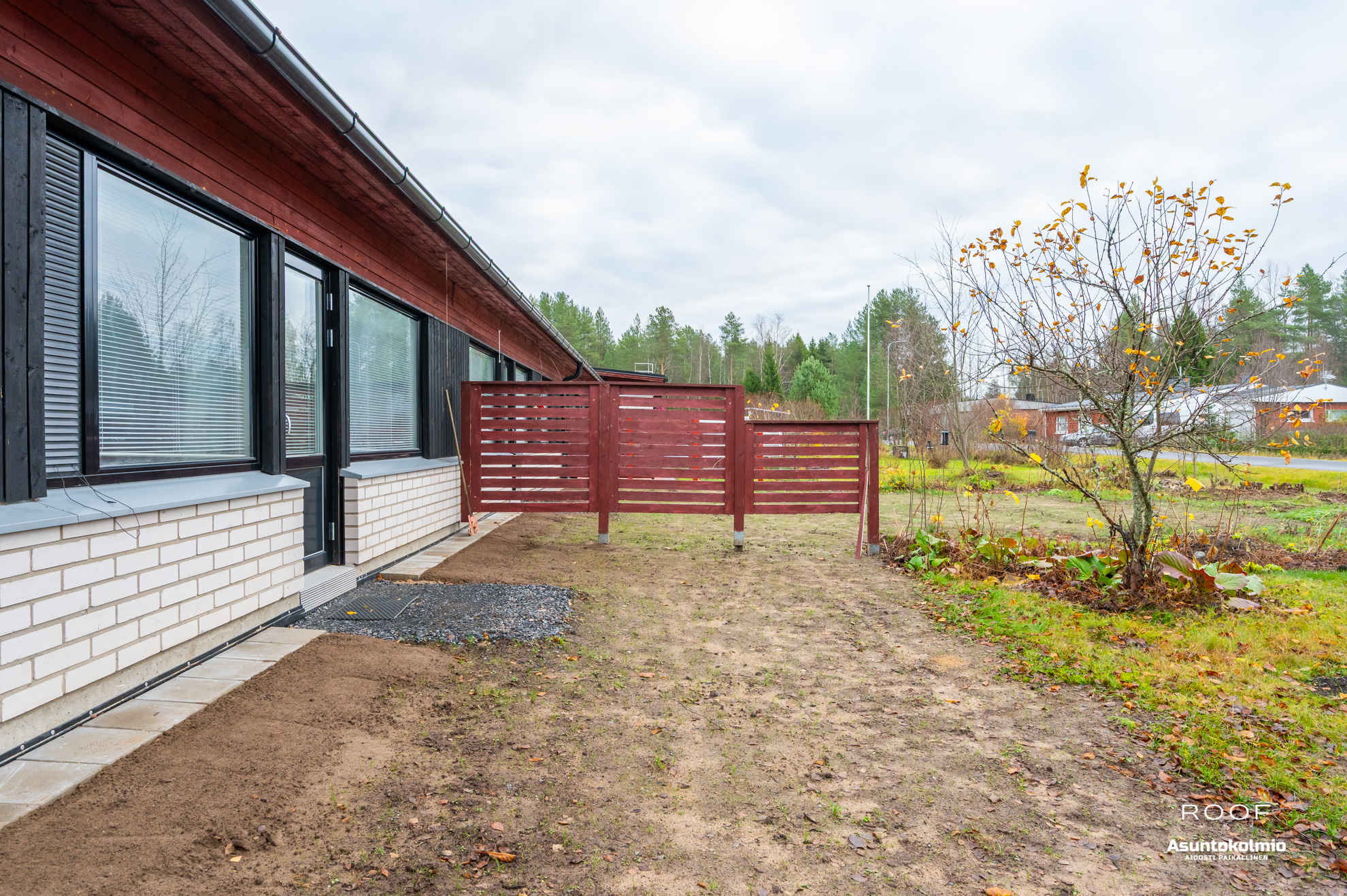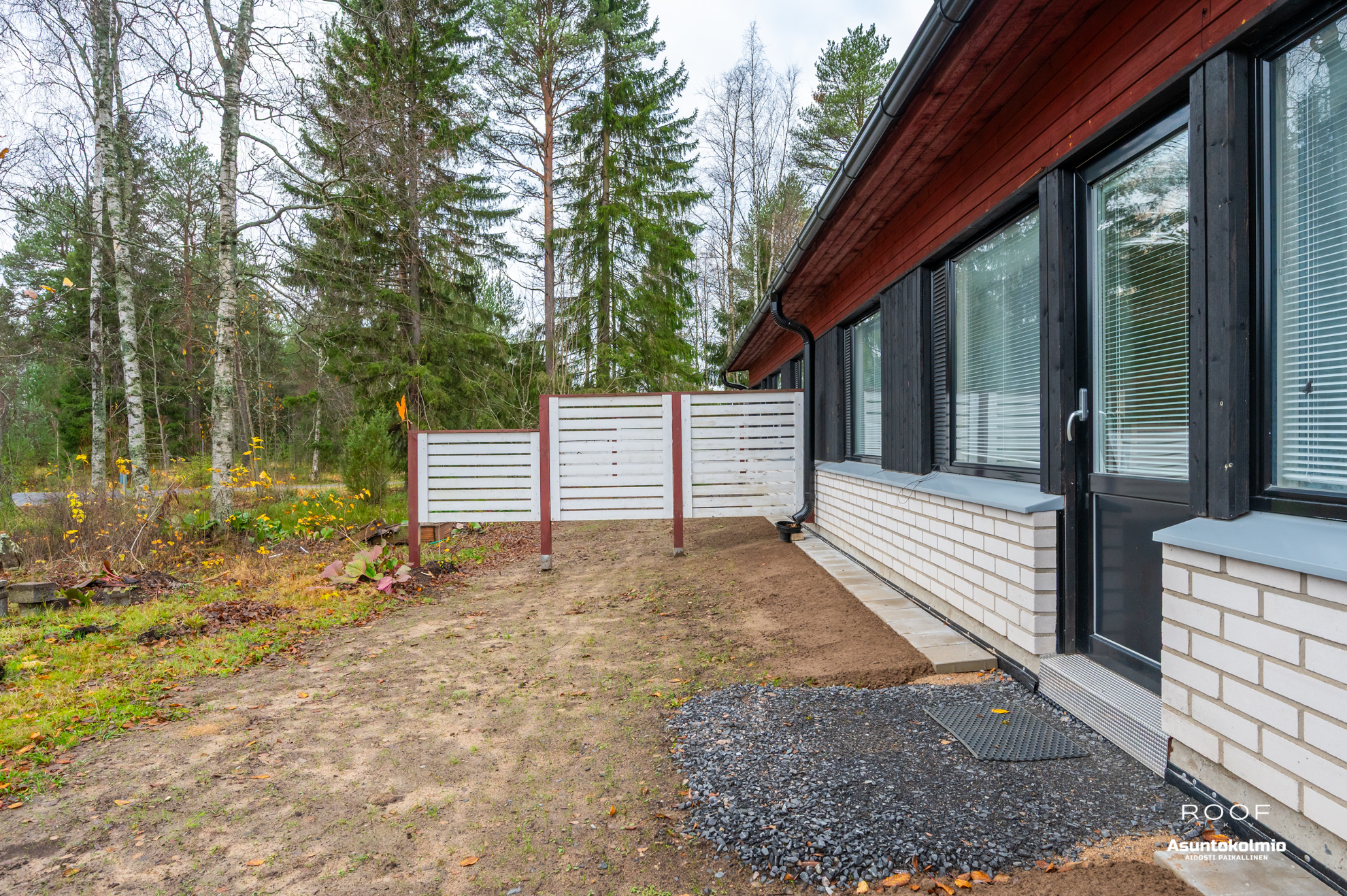 Perustukset kuivina pitävä salaojitus- ja piharemontti on saatu juuri päätökseen, ja pihamaat ovatkin kuin tyhjä kangas, johon pääsee jokainen toteuttamaan tyylinsä mukaiset keitaat ensi kesänä. Yhtiön yhteisinä tiloina on rivitalolle harvinaiset pesutupa ja saunaosasto, nämä siistit yhteiset tilat on uusittu vuonna 2005.
