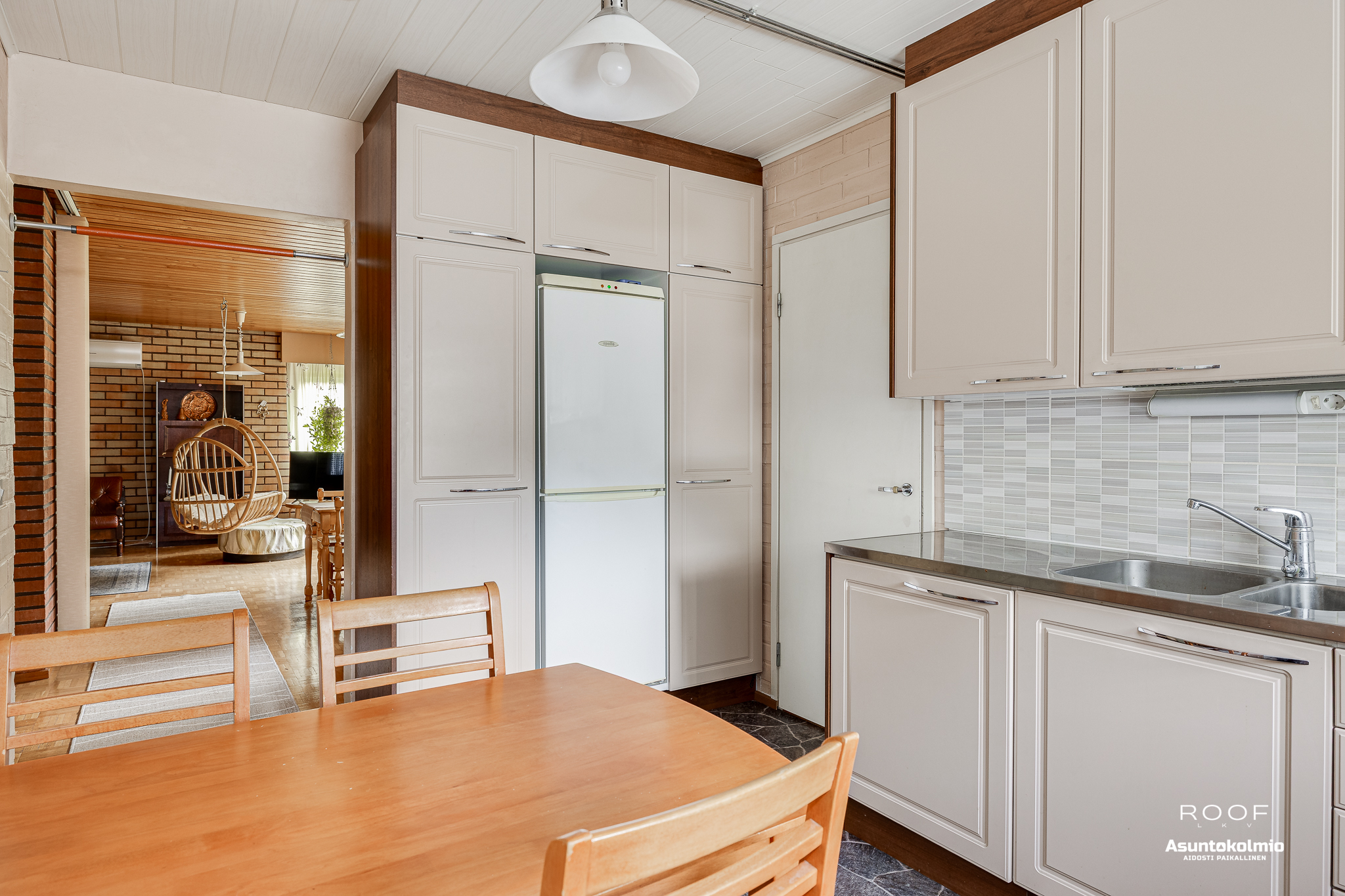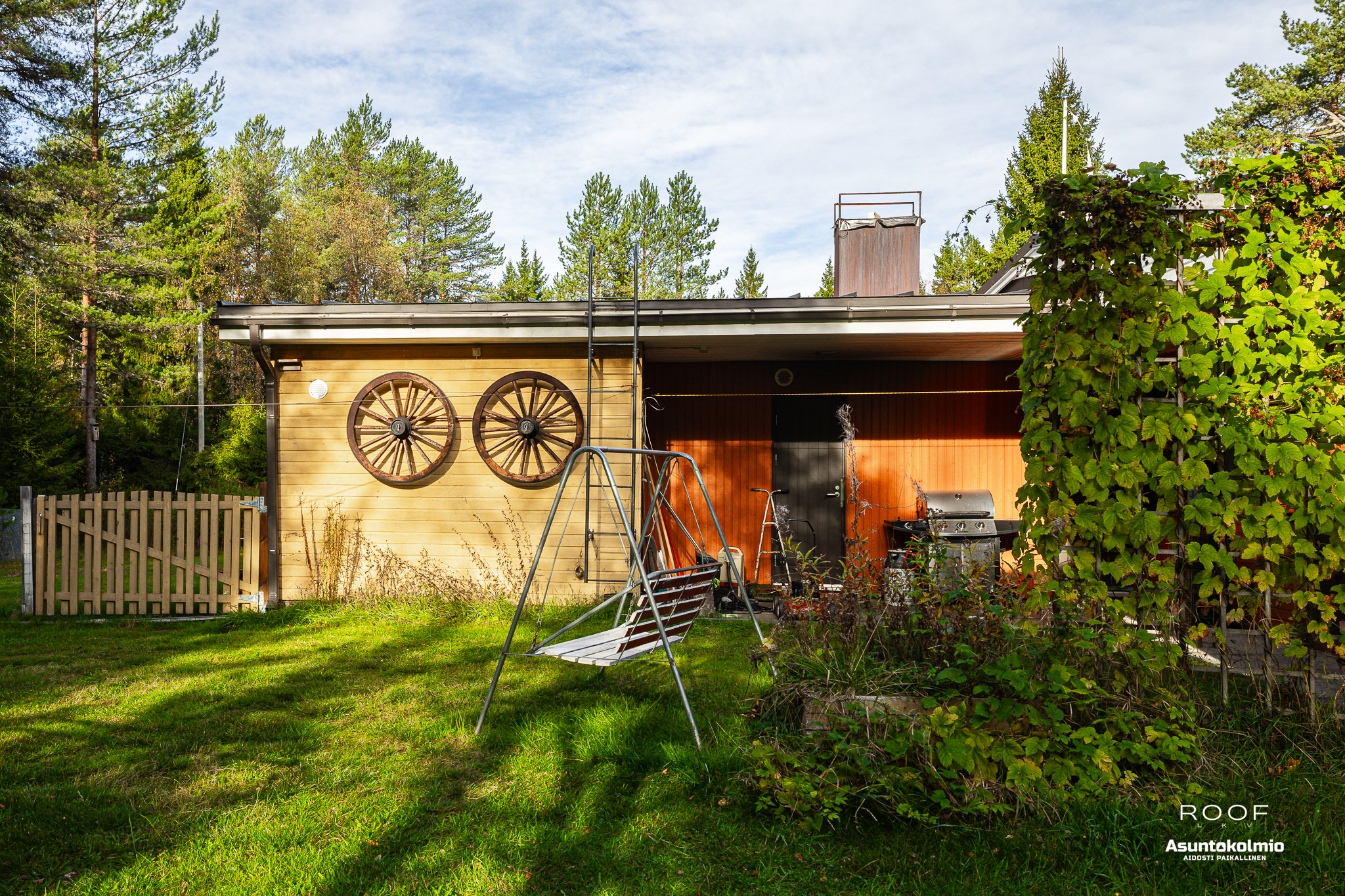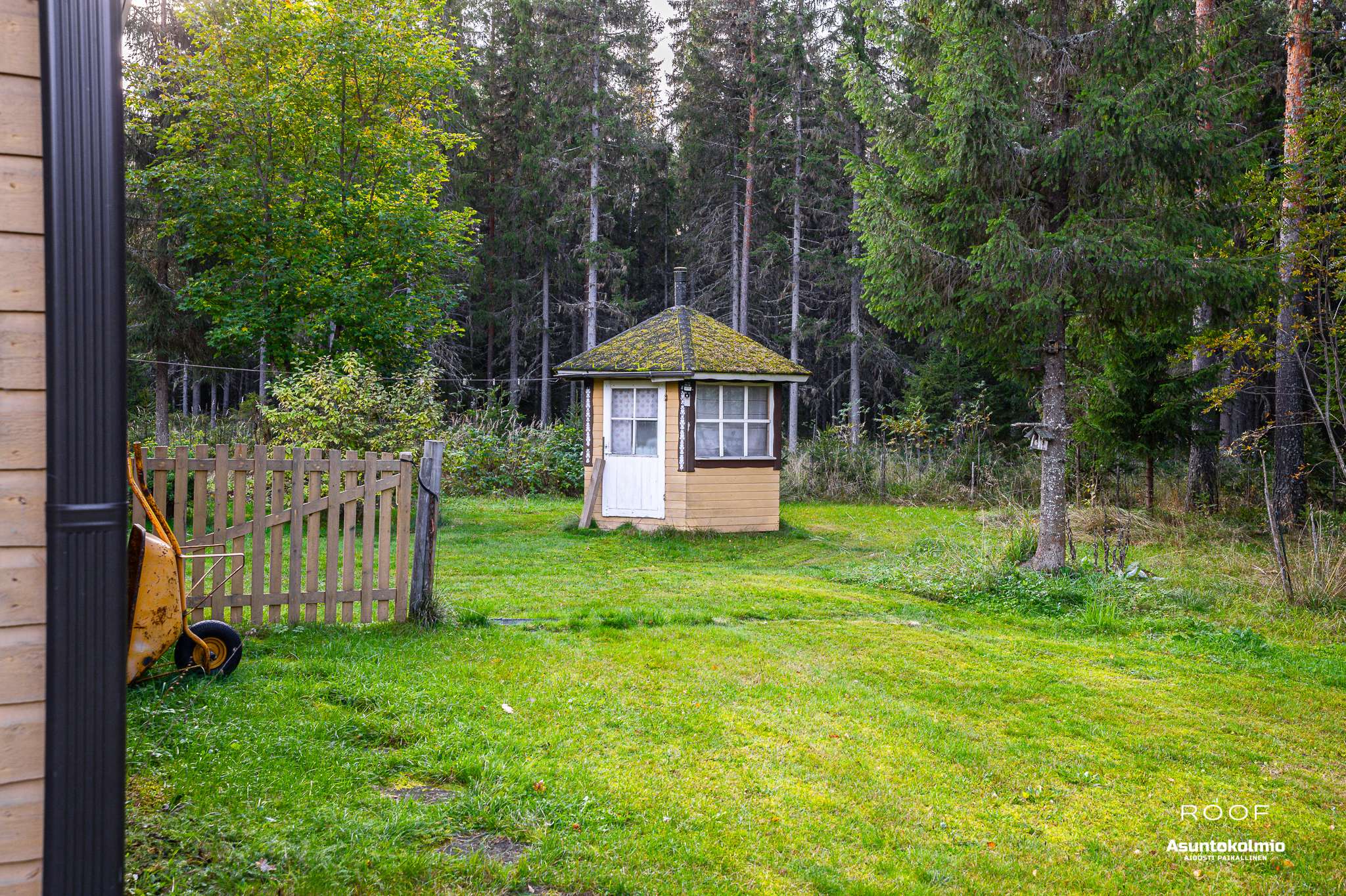Talon pihapiirissä on grillikota, joka sopii mainiosti syysiltojen viettoon, sekä peltikattoinen varasto. Lisäksi talossa on runsaasti säilytystilaa, kuten vaatehuone, ulkovarasto ja kylmähuone.