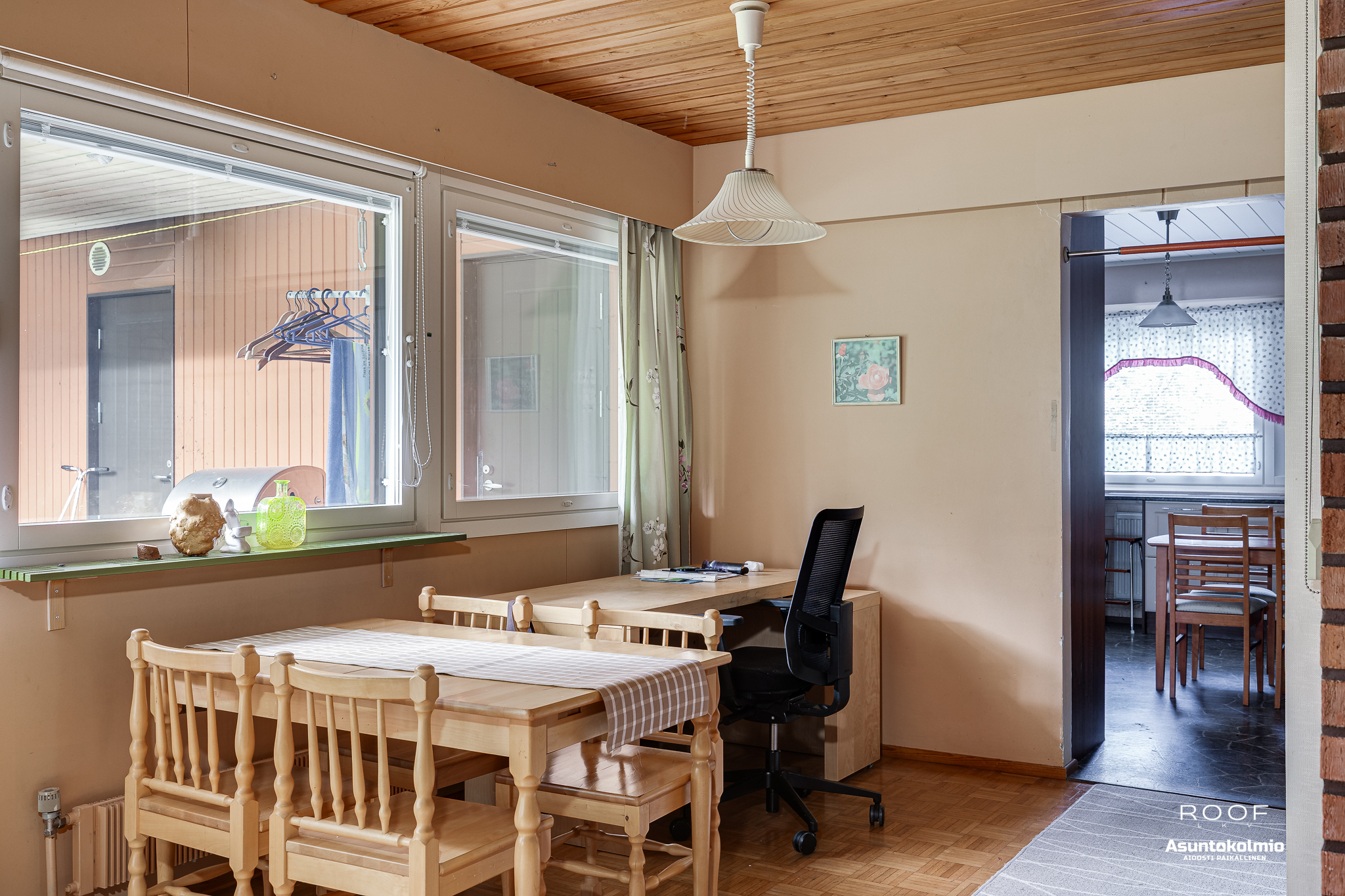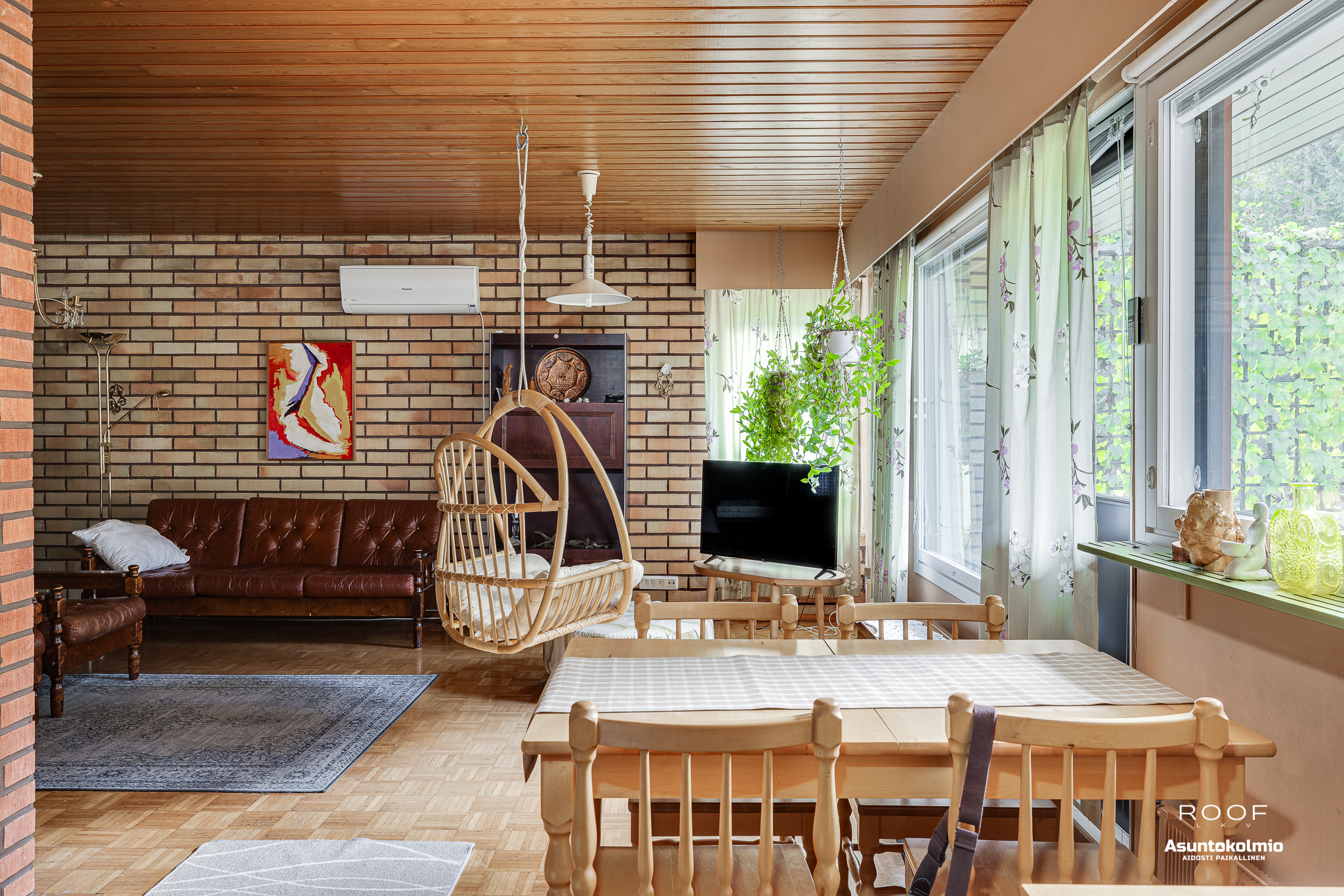 Talon tilat ovat yhdessä tasossa, mikä tekee siitä käytännöllisen ja helppokulkuisen. Valtavan kokoisessa oleskelutilassa on tunnelmallinen takka ja ilmalämpöpumppu jotka tuovat lisämukavuutta ja energiatehokkuutta. Asunnon tekniikasta on pidetty huolta sillä 2012-2015 on vesikate ja keittiö remontoitu sekä lämpökattila, käyttövesiputket sekä ikkunat ja ulko-ovet uusittu.