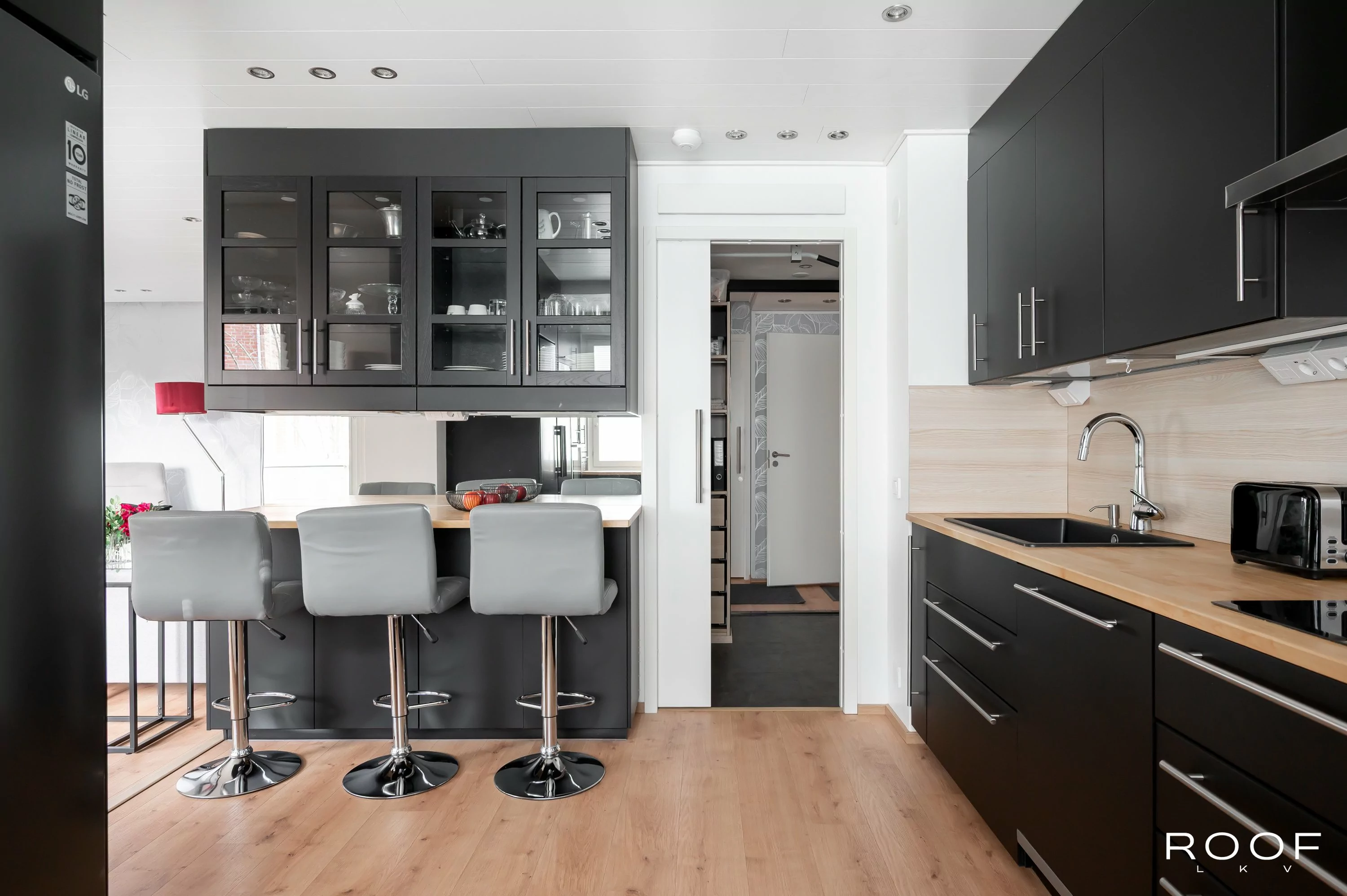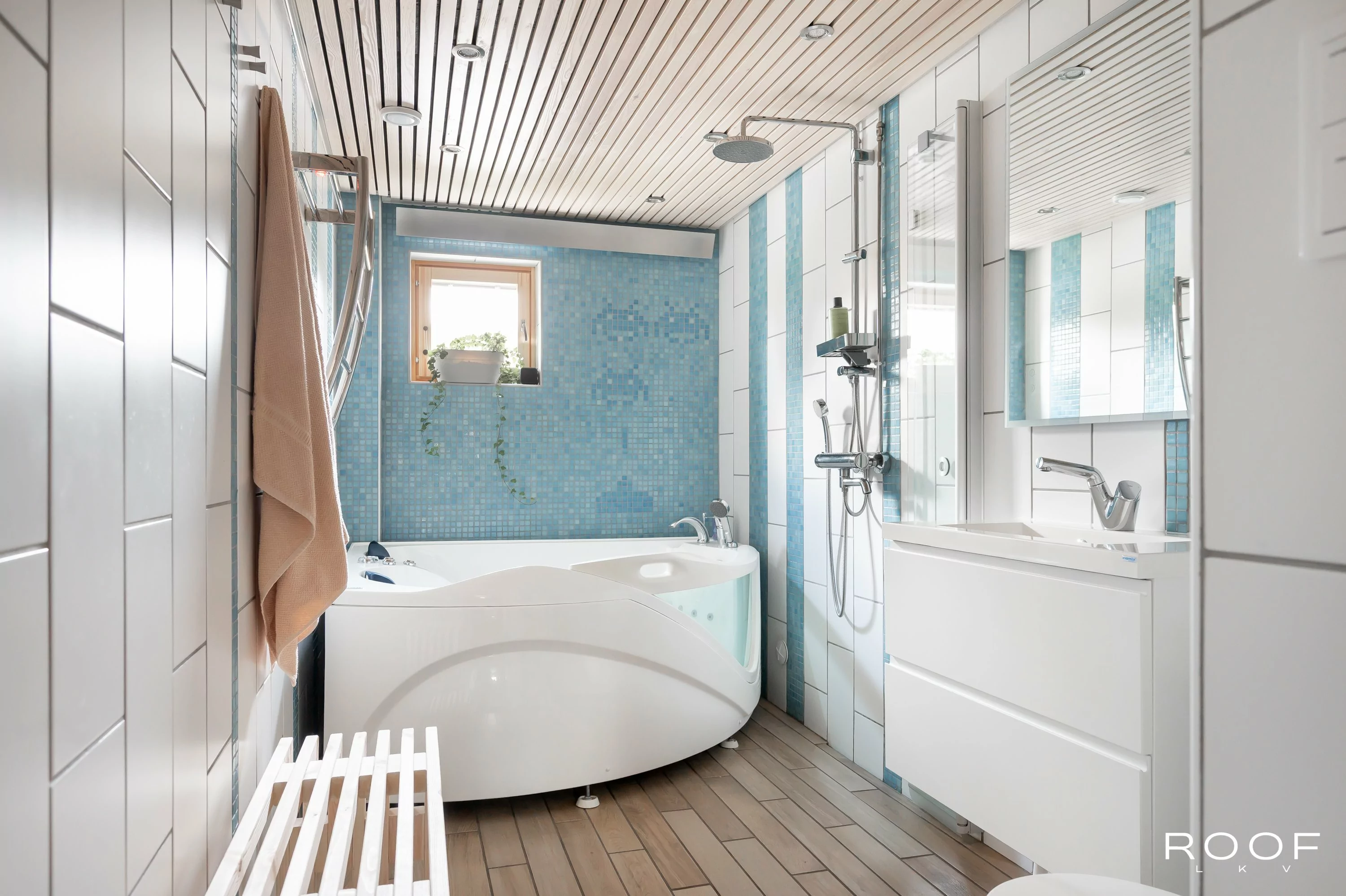 Remontissa on kiinnitetty erityistä huomiota laatuun ja toimivuuteen: erilliseen WC:hen on lisätty kodinhoitohuonenurkkaus, kylpyhuonetta on laajennettu ja varustettu kylpyammeella sekä lattialämmityksellä. Koko huoneistoon on asennettu äänieristetty alaslaskettu katto ja väliseiniin äänieristeet. Kaapelointi on uusittu ja jokaisesta huoneesta löytyy CAT-6a Ethernet-li...