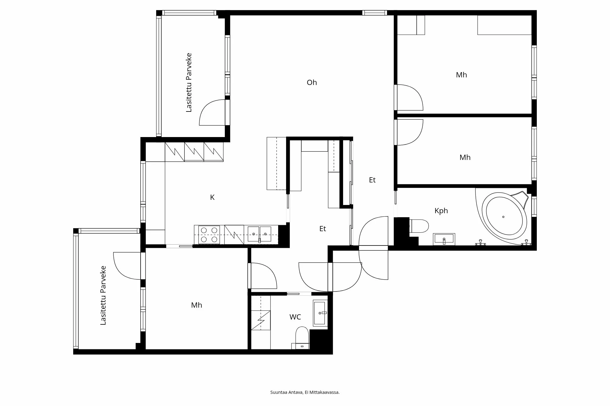Huoneluku: 4h+k+kph+vh+ erillinen wc/khh +2 x parveke + autokatos
