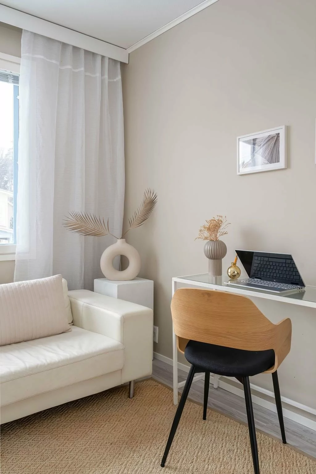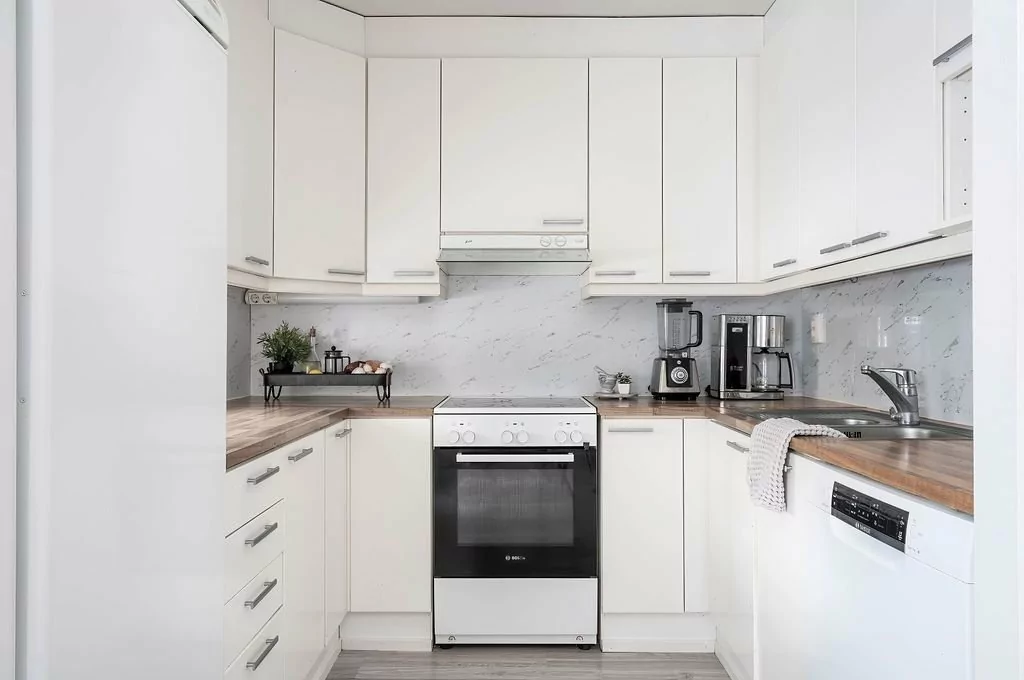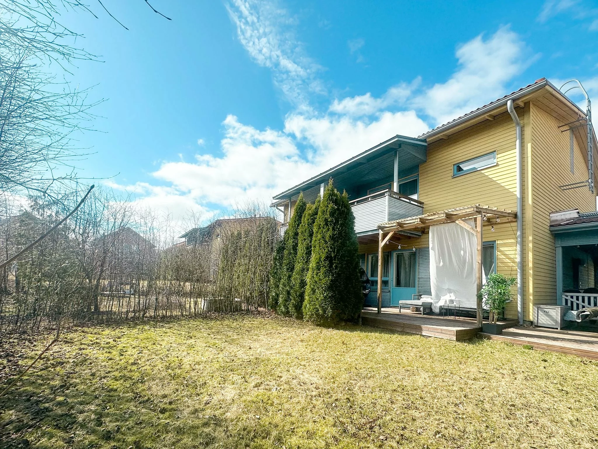 Toimiva pohjaratkaisu. Alakerrassa keittiö, ruokailutila, erillinen WC ja valoisa olohuone josta käynti omalle katetulle terassille. Lisäksi takapihalta löytyy. mukavan kokoinen nurmikkopiha. Keittiössä hyvin kaappi- ja tasotilaa. Yläkerrassa kolme makuuhuonetta, joista suurimmassa oma parveke. Kylpyhuone löytyy asunnon toisesta...