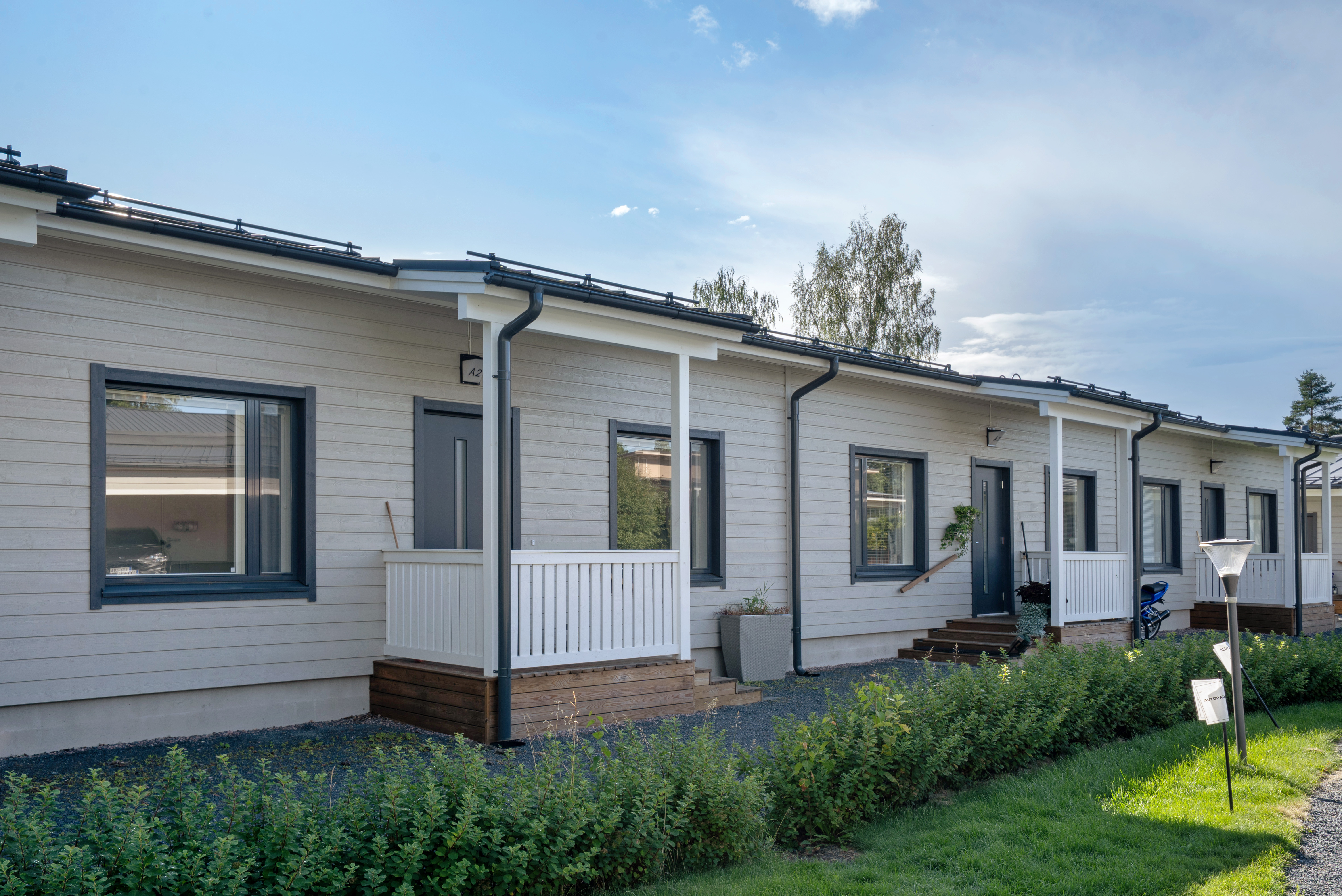 Taloyhtiössä on kaksi rivitaloa ja yhteensä kahdeksan yksitasoista huoneistoa. Tälle asunnolle kuuluu oma lämmityspistorasialla varustettu autokatospaikka, ja yhtiön 2509 m²:n omalla tontilla on lisäksi neljä pihapaikkaa. Kaunis ja tilava pihapiiri tarjoaa viihtyisän ympäristön asumiselle.