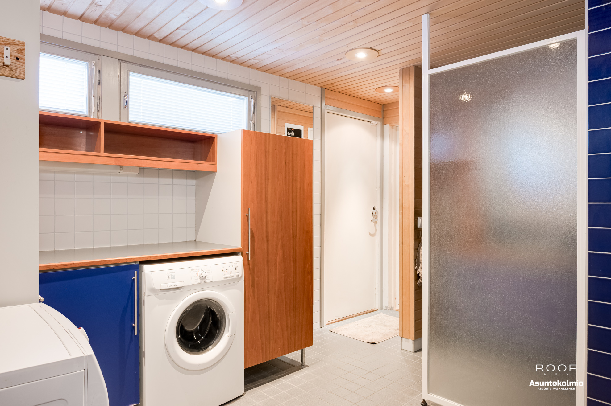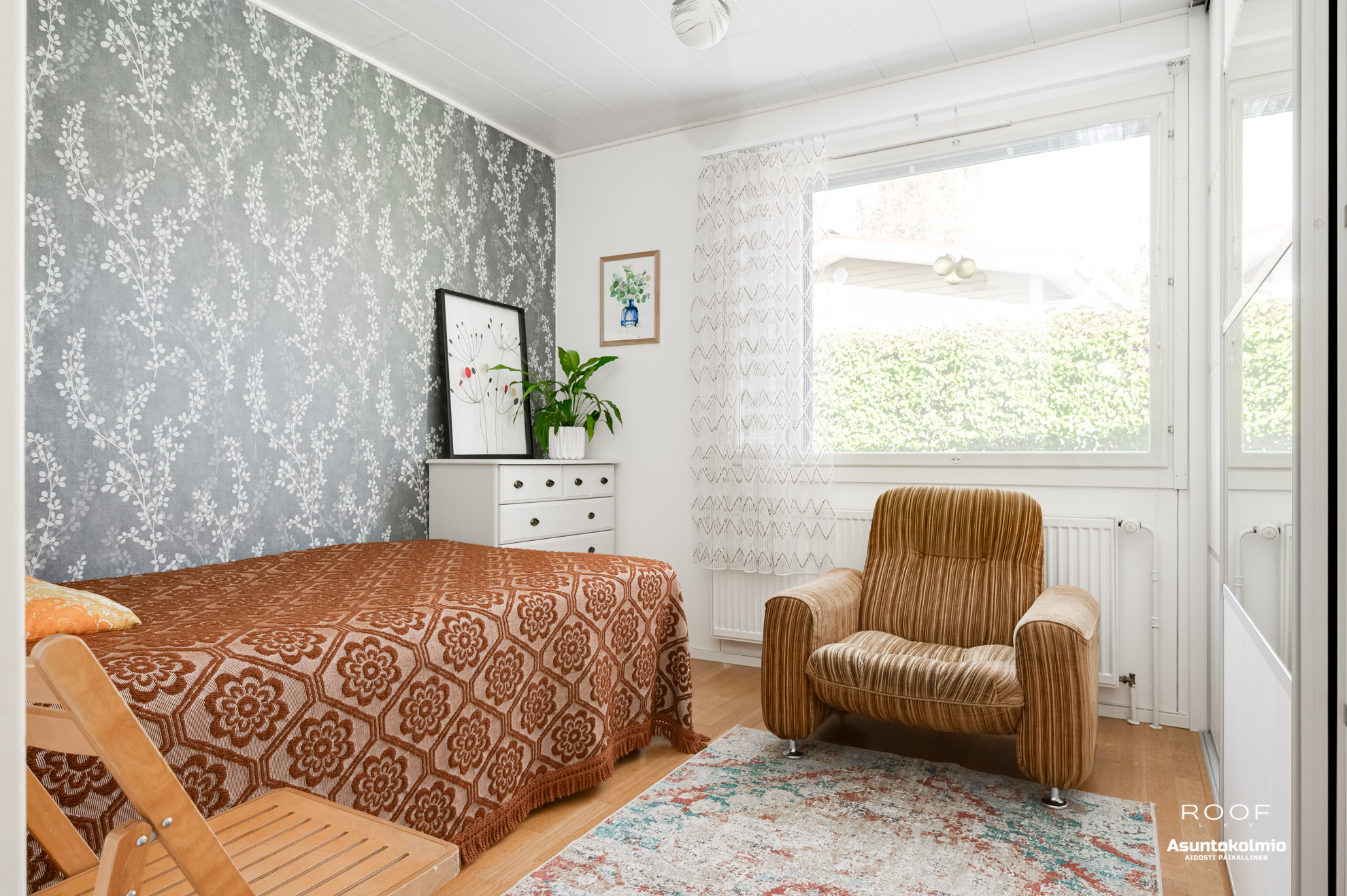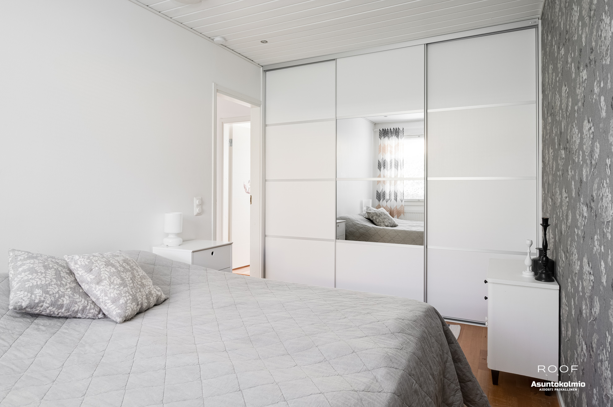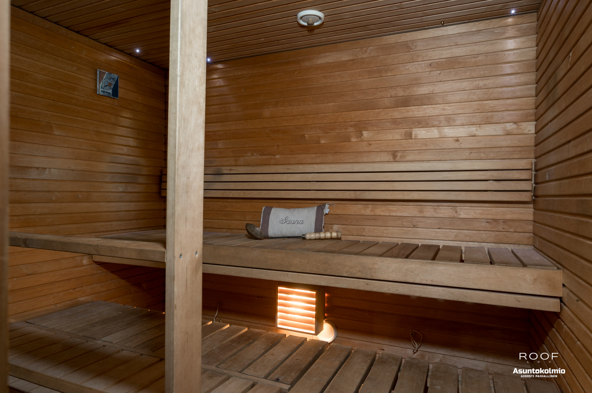 Asuintilat ovat yhdessä tasossa, ja talossa on kolme makuuhuonetta, jotka tarjoavat mukavasti tilaa perheelle. Olohuoneessa on lämpöä varaava takka, joka luo tunnelmaa ja tuo lisälämpöä kylminä talvi-iltoina. Keittiössä on lattialämmitys, joka lisää mukavuutta, ja modernit kodinkoneet helpottavat arkea.