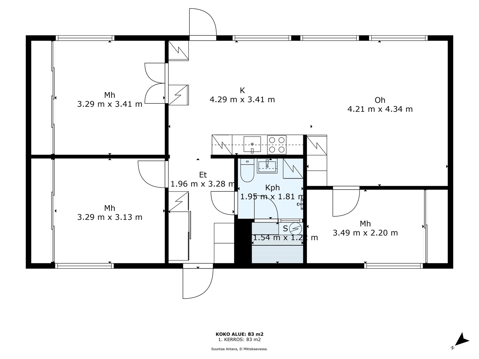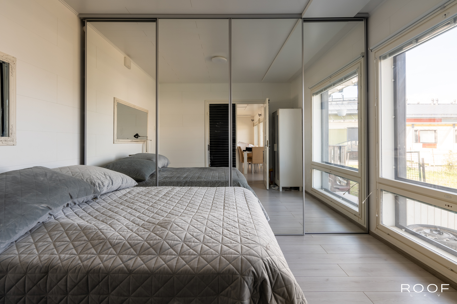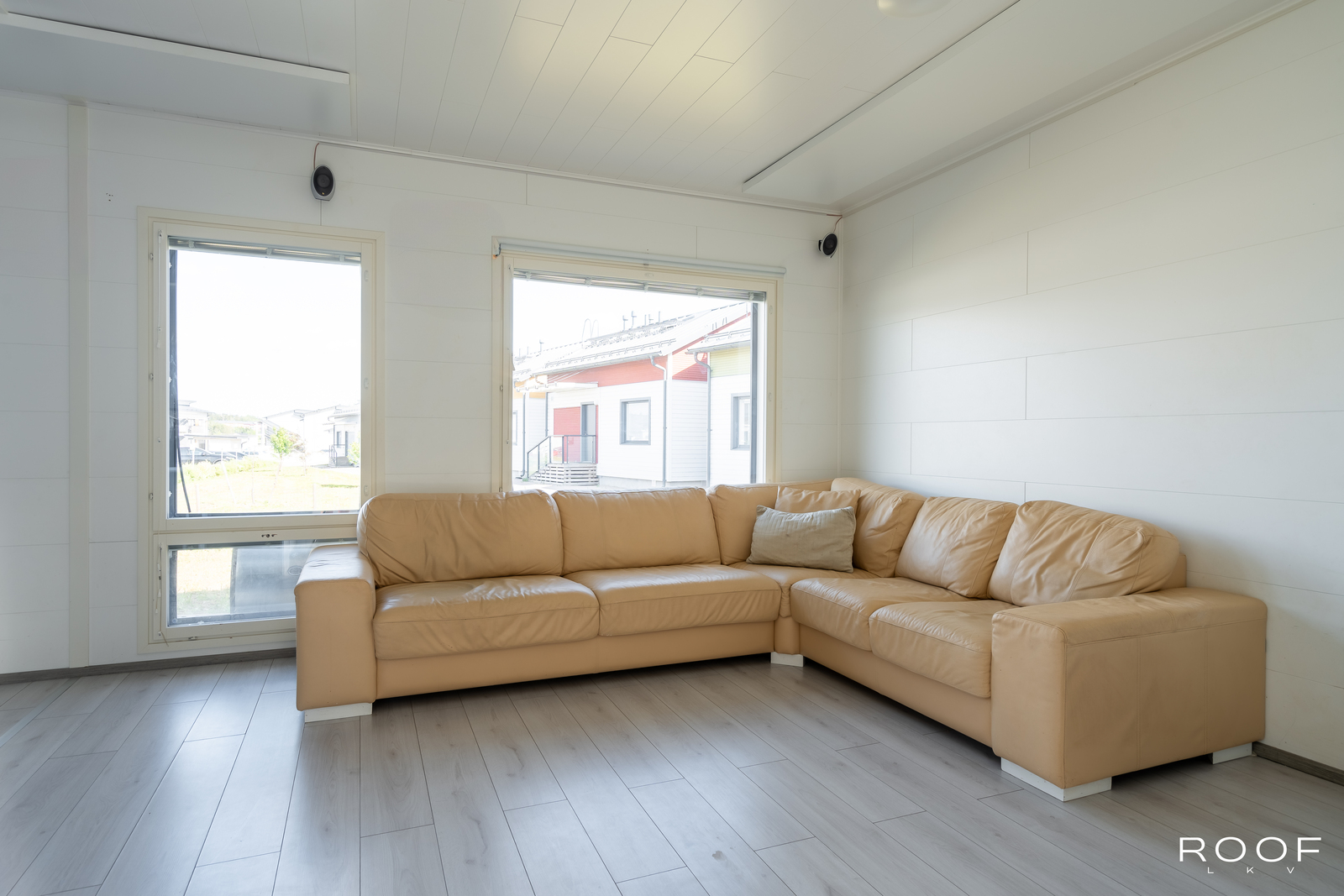 Tämä vuonna 2018 valmistunut yksitasoinen erillistalo tarjoaa toimivan pohjaratkaisun ja selkeät tilat monenlaisiin elämäntilanteisiin. Kaksi makuuhuonetta sijaitsevat vierekkäin talon toisessa päädyssä, ja kolmas makuuhuone on rauhallisesti erillään toisella puolella kotia. Tämä mahdollistaa tilojen joustavan käytön esimerkiksi lastenhuoneina, työhuoneena tai vierastilana.