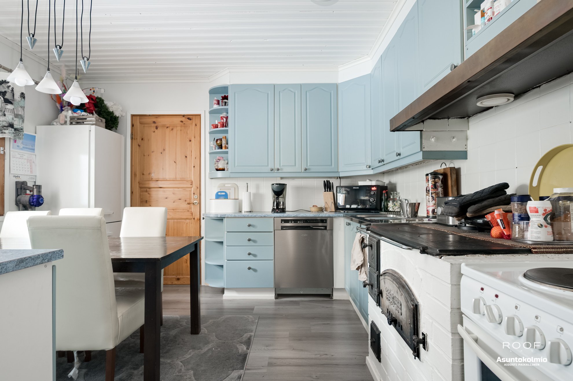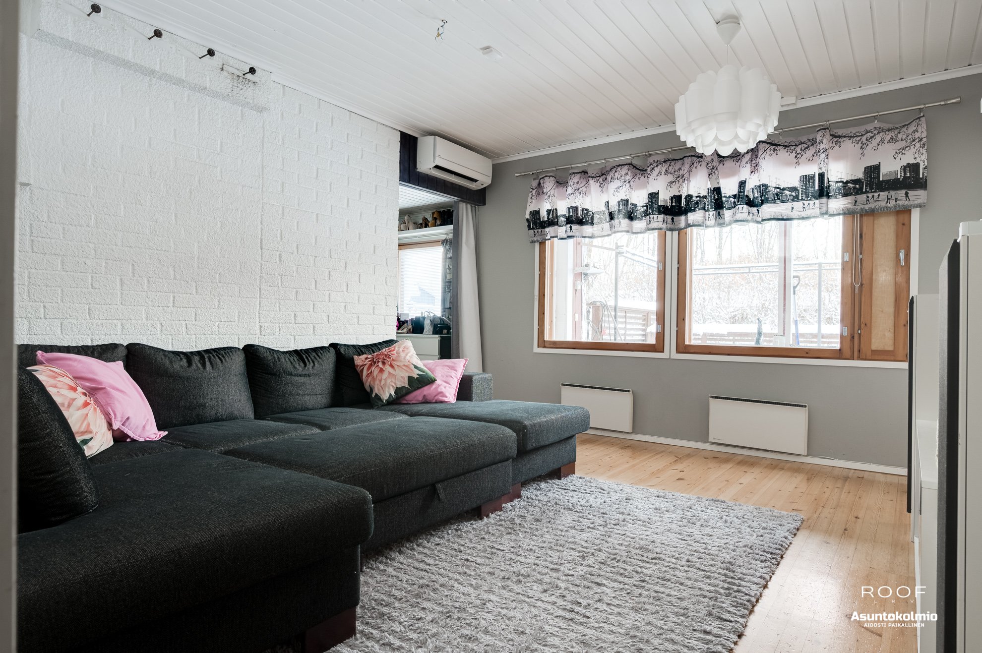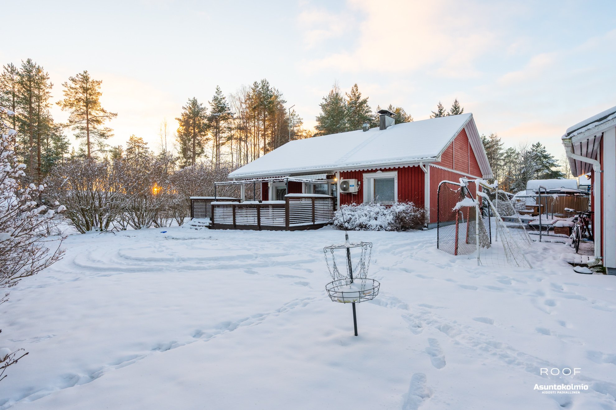 Vuonna 1988 valmistunut omakotitalo on pidetty hyvässä kunnossa, ja sen tilava pohjaratkaisu kattaa vajaa sata neliötä. Talon valoisuus ja avarat oleskelutilat tekevät siitä miellyttävän paikan asua. Kodin sydämenä toimii varaava takka, joka tuo lämpöä ja tunnelmaa viileinä iltoina sekä yhdessä ilmalämpöpumpun kanssa huolehtivat lämmityksestä. Keittiössä on sekä puu- että sähköliesi, mikä tarjoaa monipuolise...