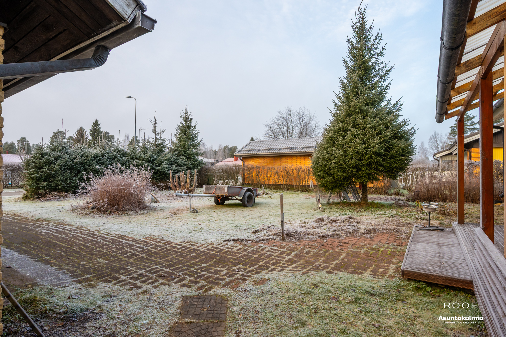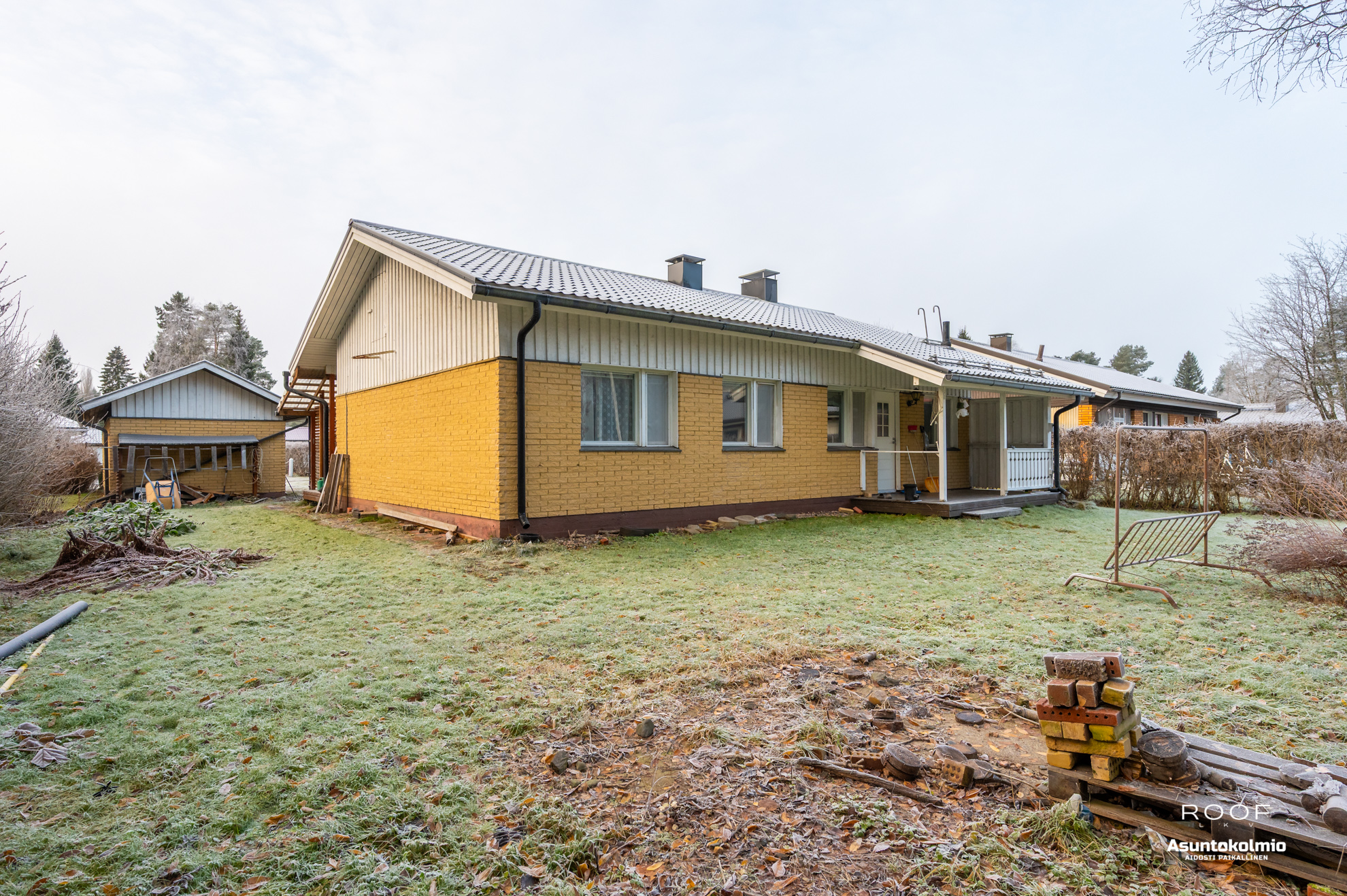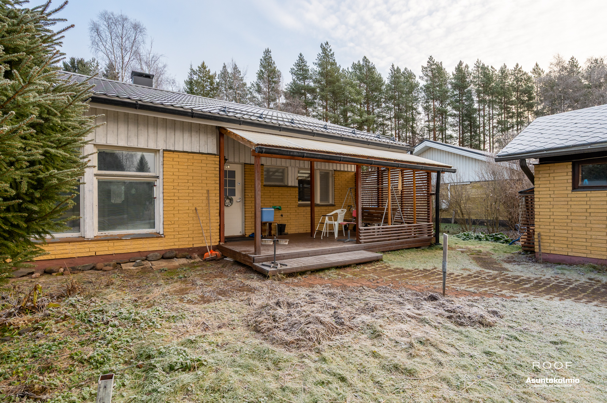 Rauhallisella alueella sijaitsevassa talossa on 3 makuuhuonetta, iso valoisa olohuone ja tilava keittiö. Kylpyhuoneen yhteydessä on hyvin tilaa pyykinpesukoneelle ja sen yhteydessä on talon toinen wc. Vaaleansävyisessä keittiössä on runsaasti kaappitilaa ja sinne sijoitat hyvin ruokapöydän. Keittiöstä on kulku takapihan katetulle terassille ja suojaisalle piha-alueelle. Etupihan katettu kuisti vastaanottaa sisääntulijat. Katetuilla terasseilla pääset nauttimaan sekä aamu- että ilta-auringosta.. Piha-alueella...