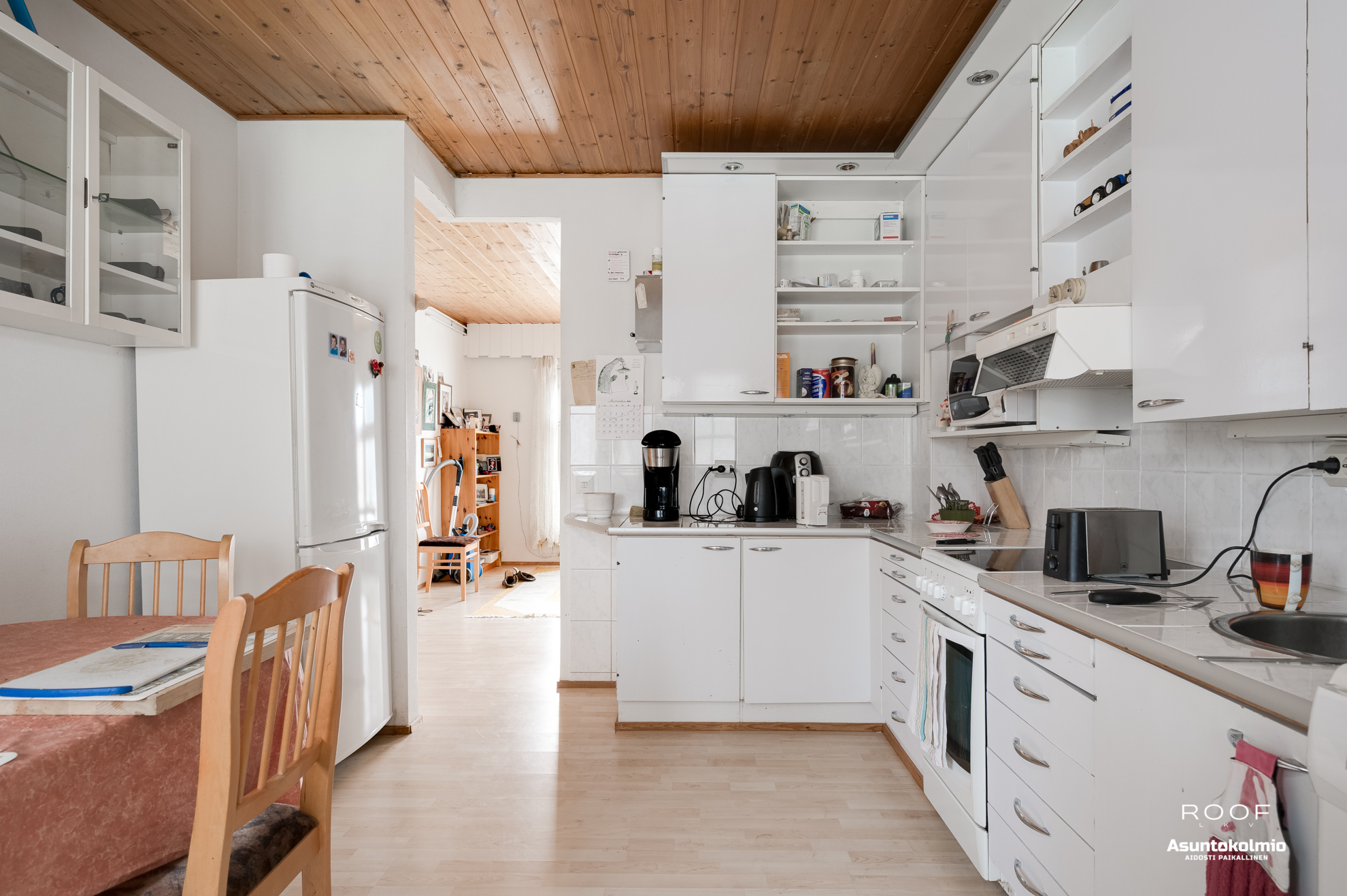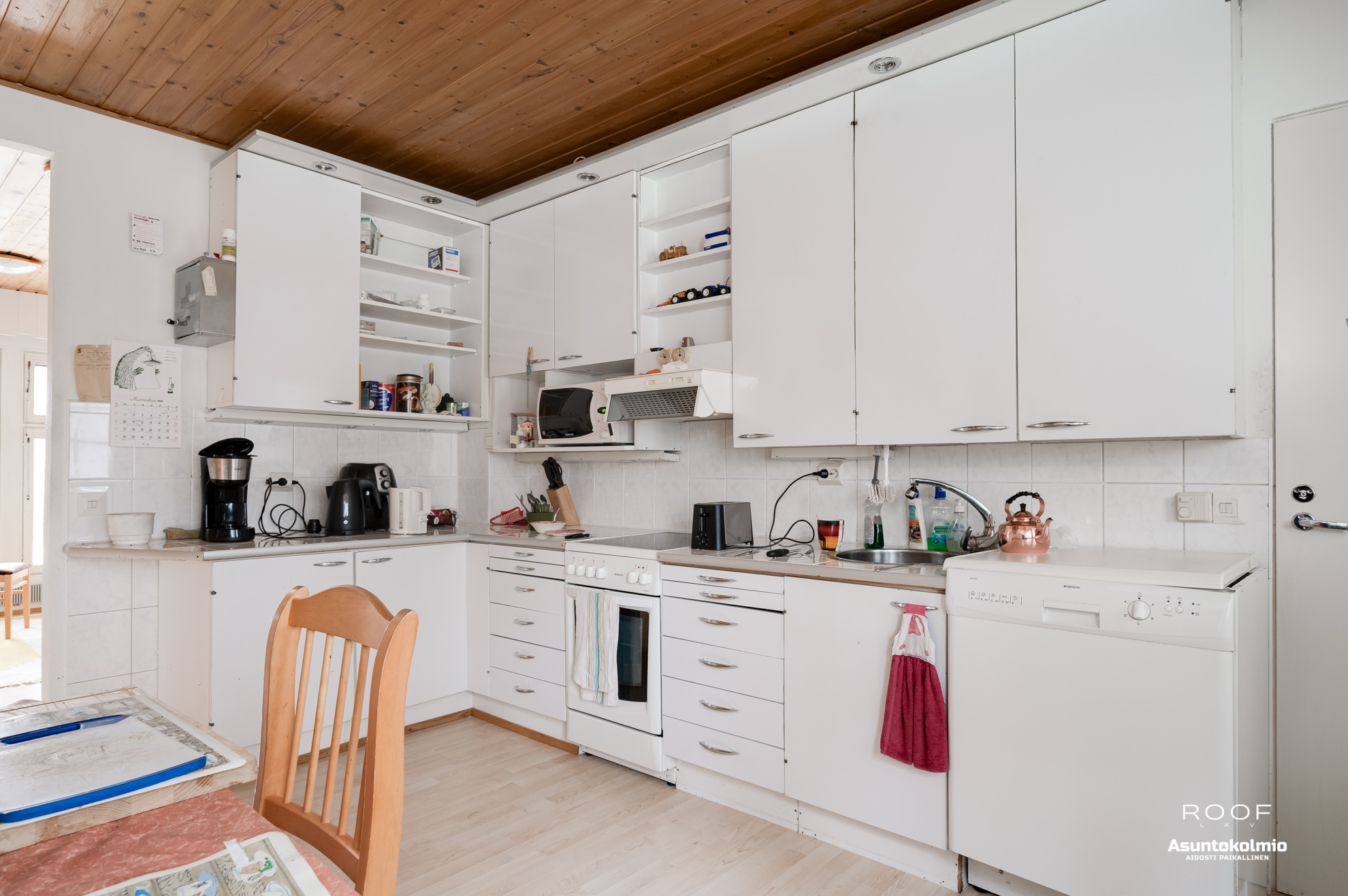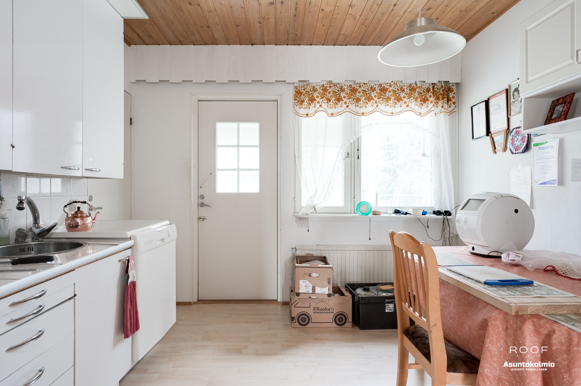 Rauhallisella alueella sijaitsevassa talossa on 3 makuuhuonetta, iso valoisa olohuone ja tilava keittiö. Kylpyhuoneen yhteydessä on hyvin tilaa pyykinpesukoneelle ja sen yhteydessä on talon toinen wc. Vaaleansävyisessä keittiössä on runsaasti kaappitilaa ja sinne sijoitat hyvin ruokapöydän. Keittiöstä on kulku takapihan katetulle terassille ja suojaisalle piha-alueelle. Etupihan katettu kuisti vastaanottaa sisääntulijat. Katetuilla terasseilla pääset nauttimaan sekä aamu- että ilta-auringosta.. Piha-alueella...
