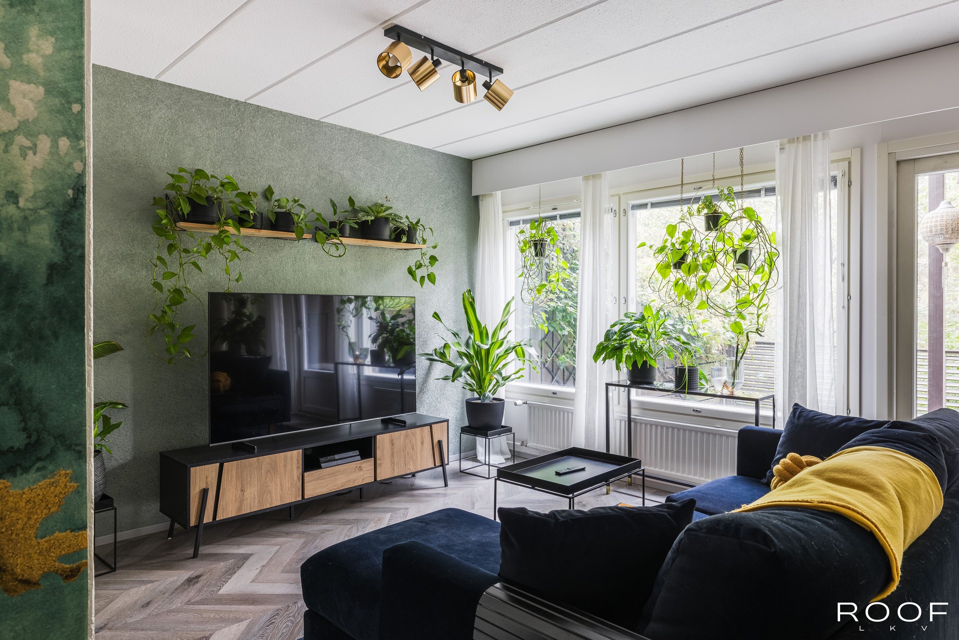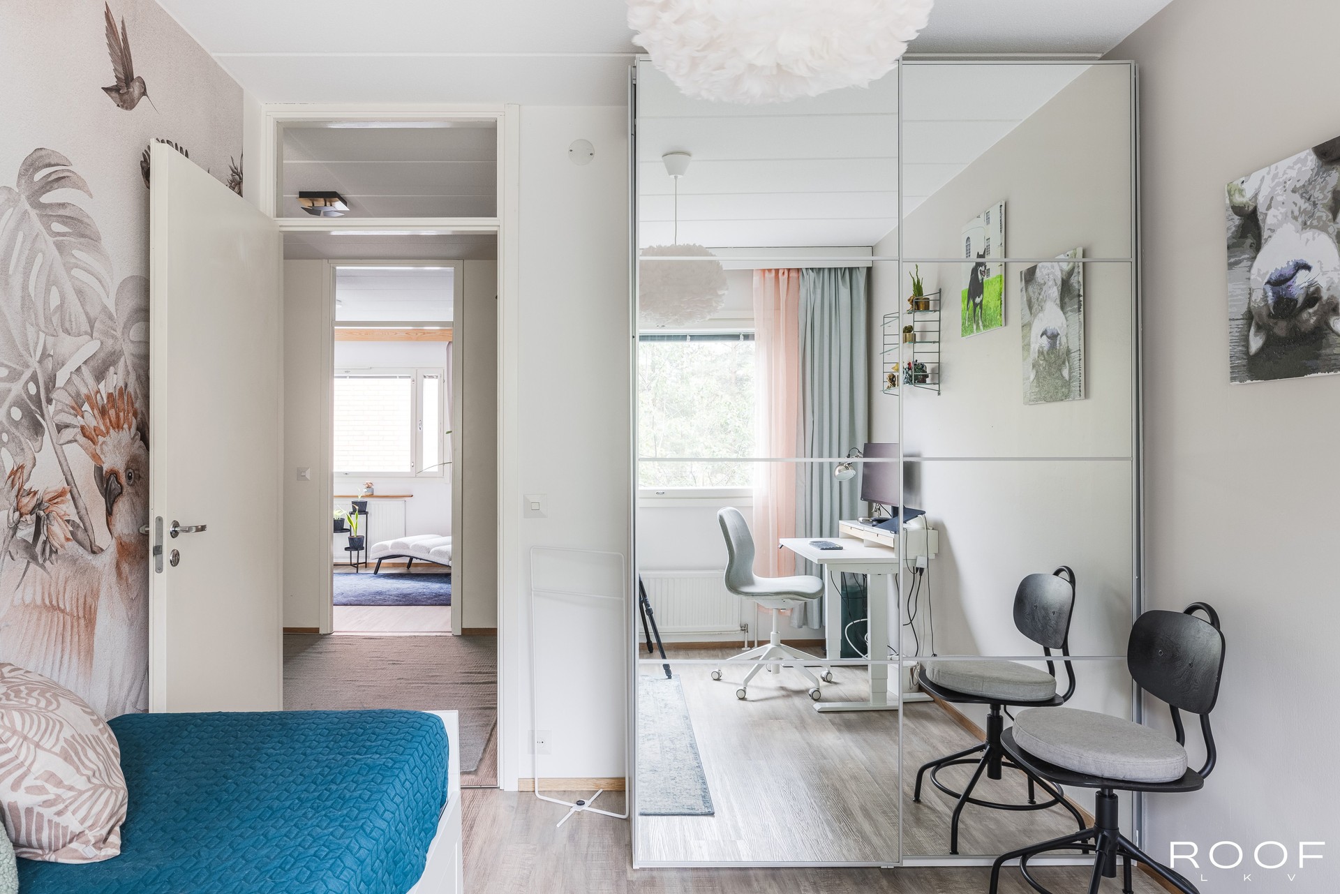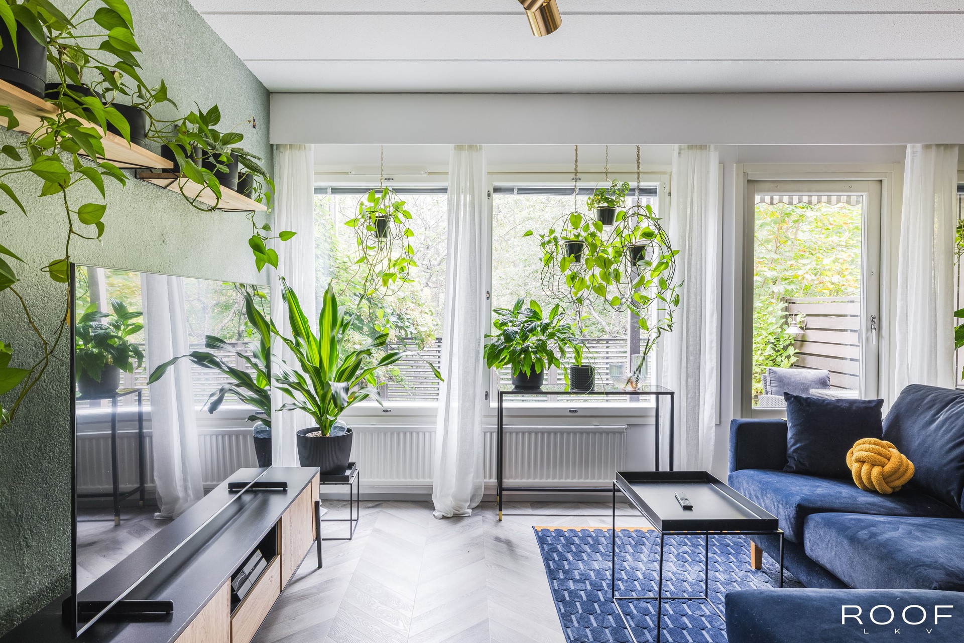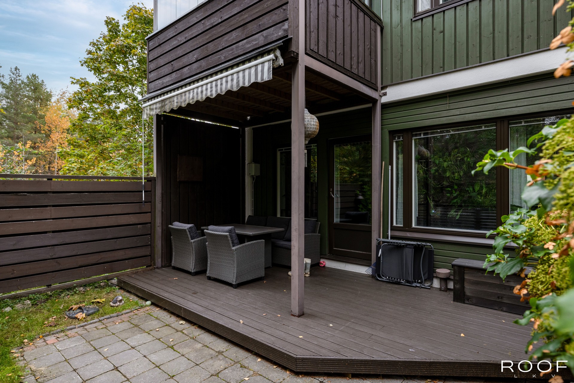 Asunnon oma sauna ja kylpyhuone tarjoavat arjen mukavuutta, ja lasitettu parveke sekä terassi laajentavat oleskelutiloja ulos. Parveke avautuu lounaaseen, mikä tuo mukavasti iltapäivän aurinkoa. Asunnon pinnat ovat hyvässä kunnossa, ja luonnonvalo tulvii sisään isoista ikkunoista.