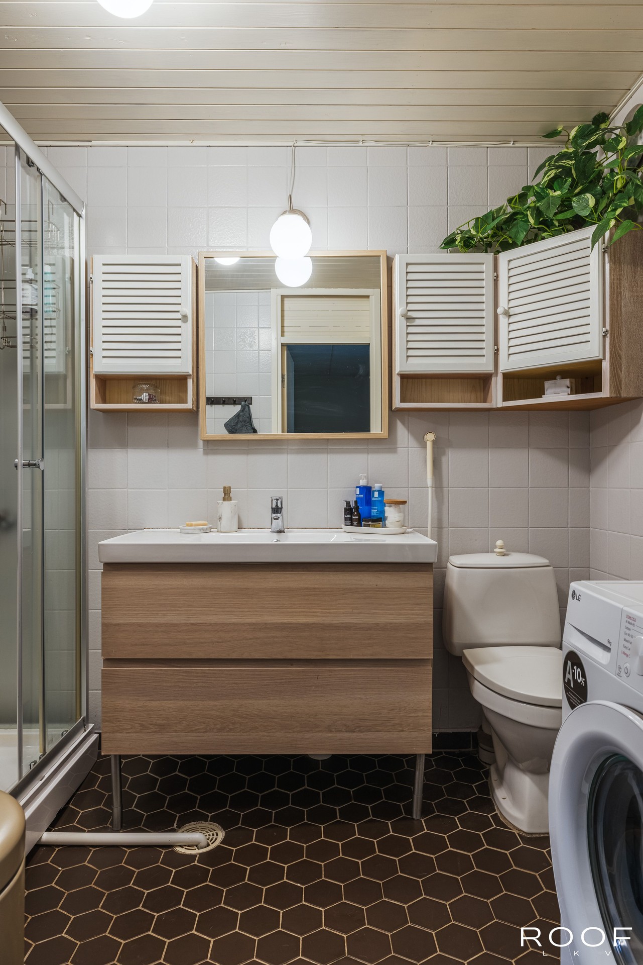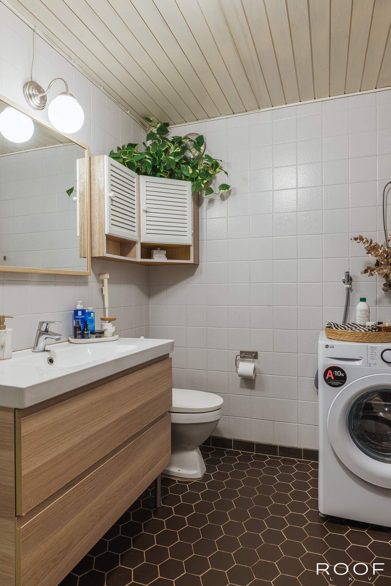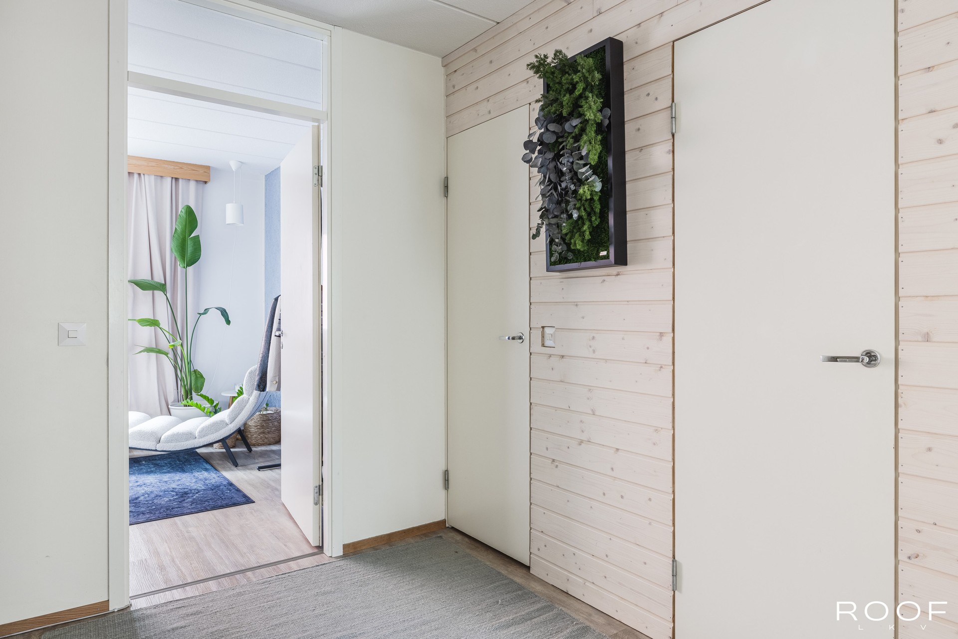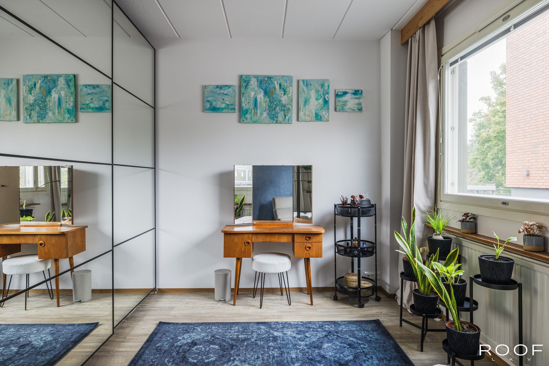 Asunnon oma sauna ja kylpyhuone tarjoavat arjen mukavuutta, ja lasitettu parveke sekä terassi laajentavat oleskelutiloja ulos. Parveke avautuu lounaaseen, mikä tuo mukavasti iltapäivän aurinkoa. Asunnon pinnat ovat hyvässä kunnossa, ja luonnonvalo tulvii sisään isoista ikkunoista.