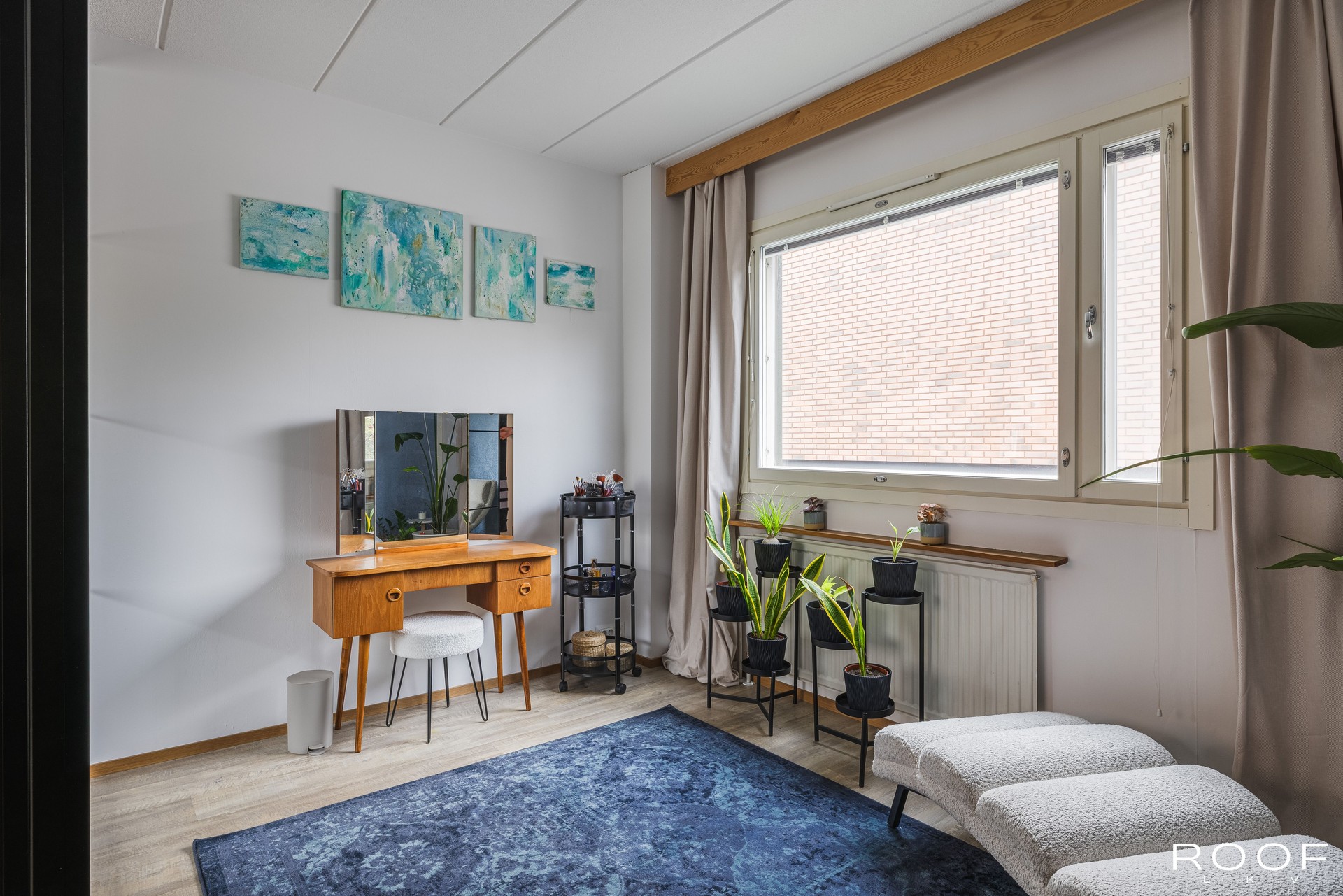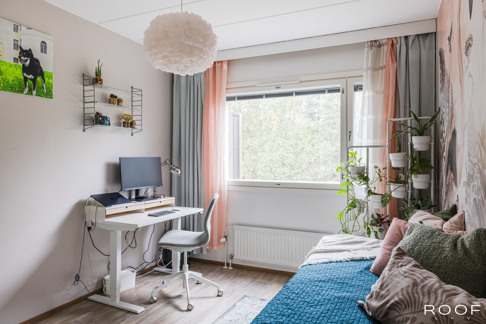 Sijainti on mitä mainioin – lähellä on sekä bussi- että juna-asema, joten liikkuminen on vaivatonta. Alueella on myös hyvät palvelut (Kauppakeskus Kaari kävelymatkan päässä), kuten päiväkodit ja koulut, joten tämä koti sopii erittäin hyvin perheille.