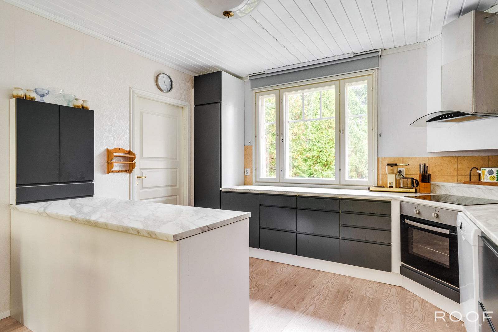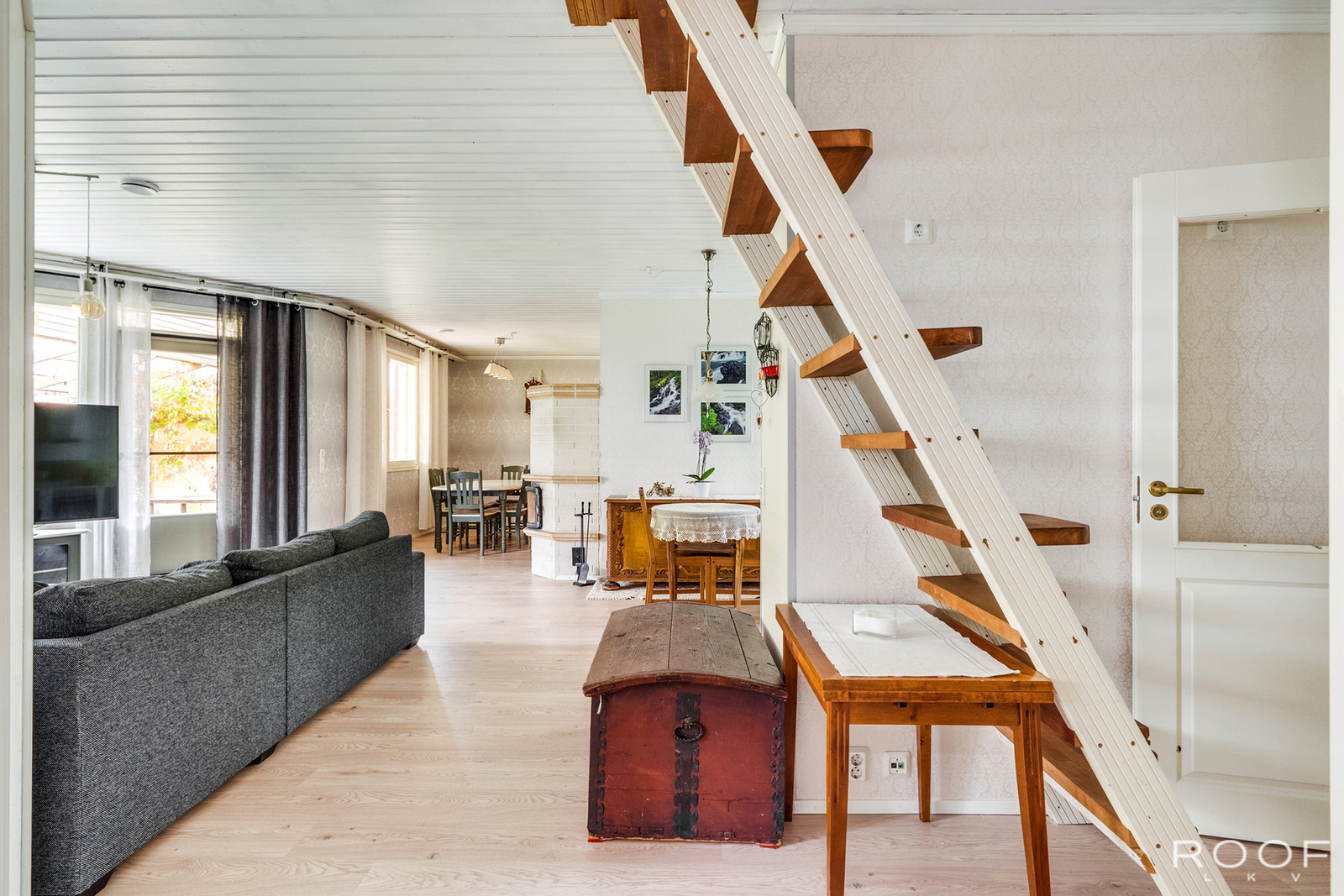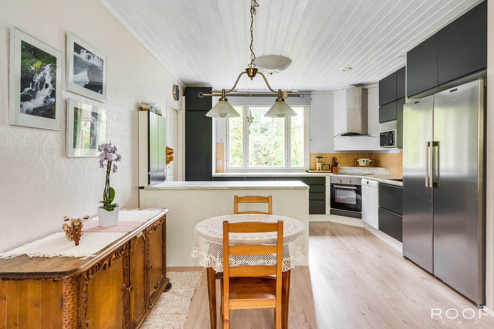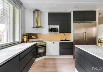 Vuonna 2022 uusittu keittiö on tilava ja soveltuu vaativampaankin makuun. Isonkin perheen vaatimukset täyttävä, kun on kaksi suihkutila ja kolme wc:ta. Tilava avoin olohuone-ruokailutila-keittiö yhdessäololle. Olohuoneesta käytännöllisesti kulku katetulle terassille.