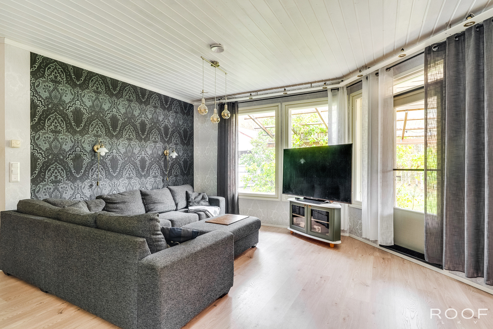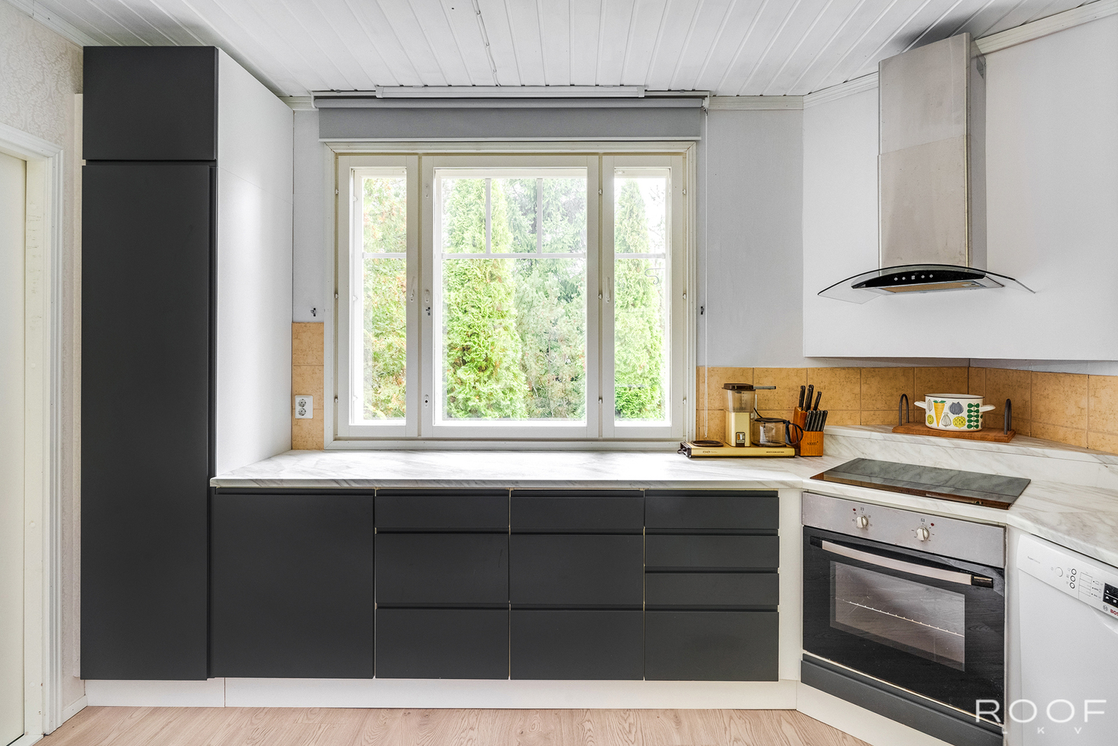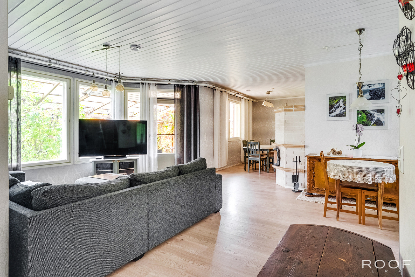 Vuonna 2022 uusittu keittiö on tilava ja soveltuu vaativampaankin makuun. Isonkin perheen vaatimukset täyttävä, kun on kaksi suihkutila ja kolme wc:ta. Tilava avoin olohuone-ruokailutila-keittiö yhdessäololle. Olohuoneesta käytännöllisesti kulku katetulle terassille.