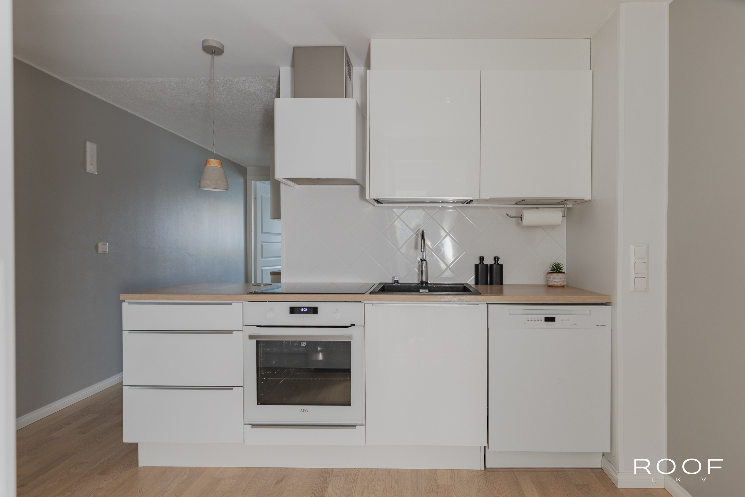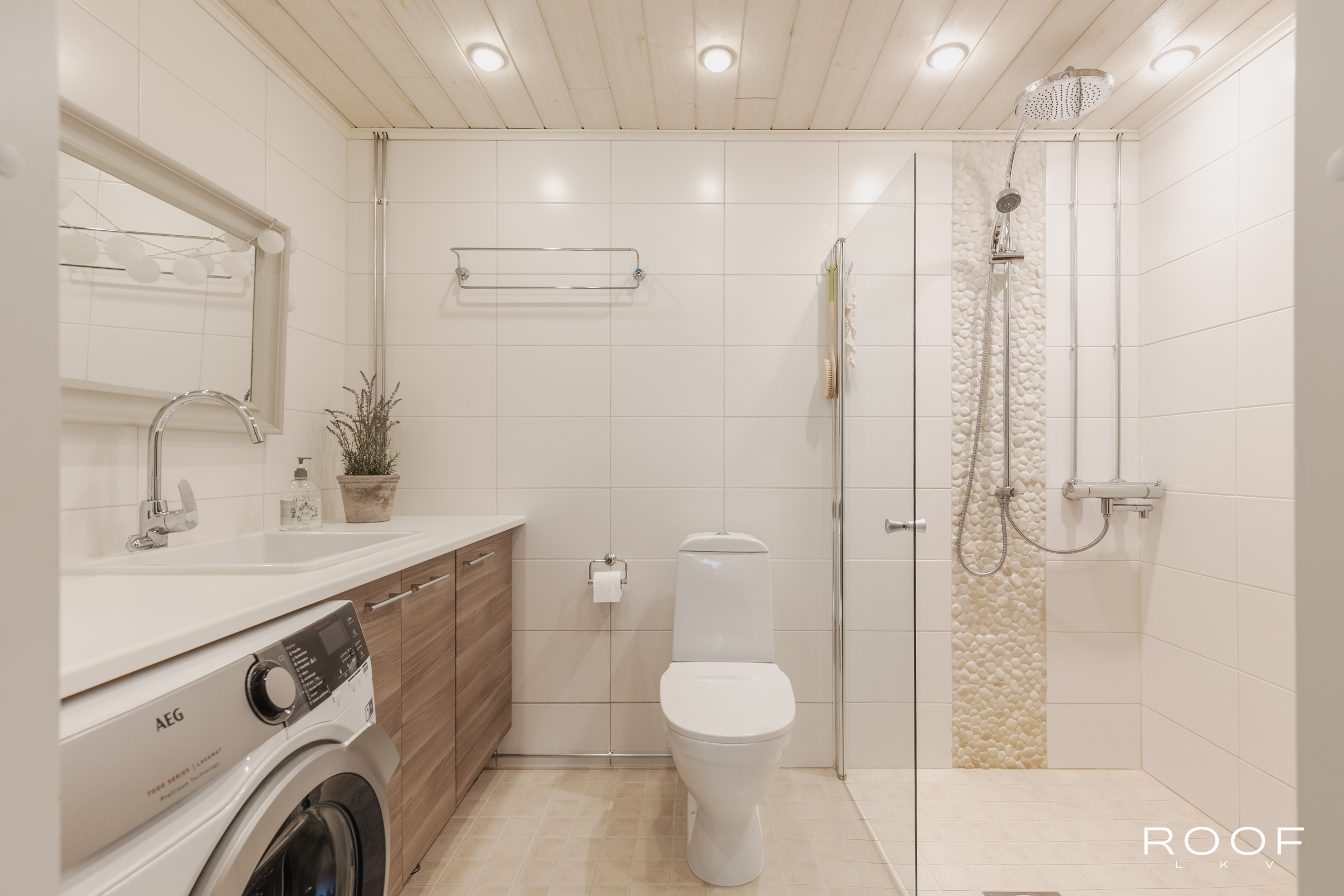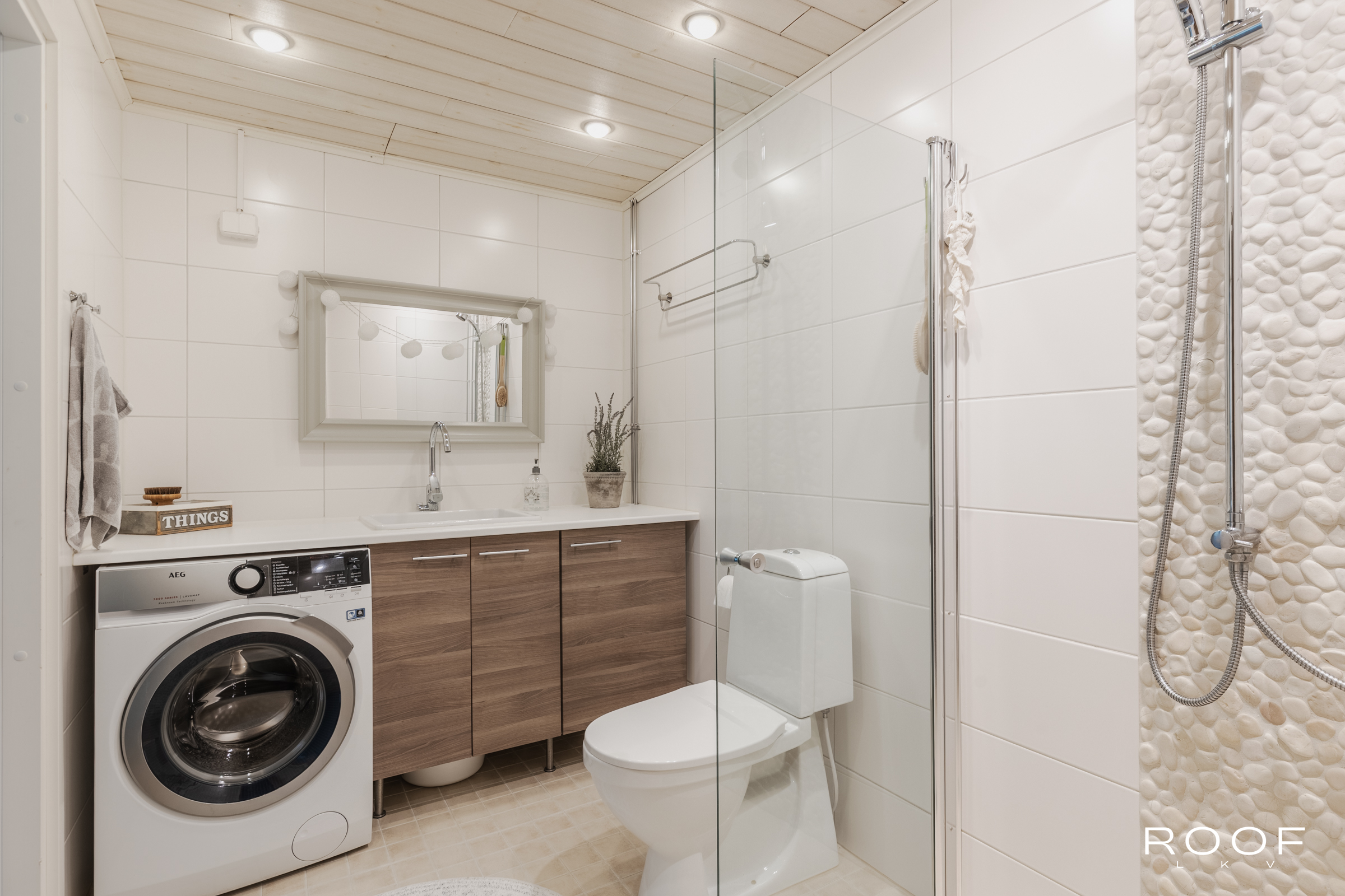 Keittiö on moderni ja hyvin varusteltu — käytössäsi on muun muassa trendikäs aamiaiskaappi, induktioliesi sekä erillisuuni pyrolyysi toiminnolla. Kodin kaunis sauna ja tilava kylpyhuone tarjoavat rentouttavia hetkiä pitkän päivän päätteeksi, ja erillinen wc lisää arjen mukavuutta. Ensimmäisen kerroksen sijainti tekee kodista käytännöllisen erityisesti lapsiperheille.