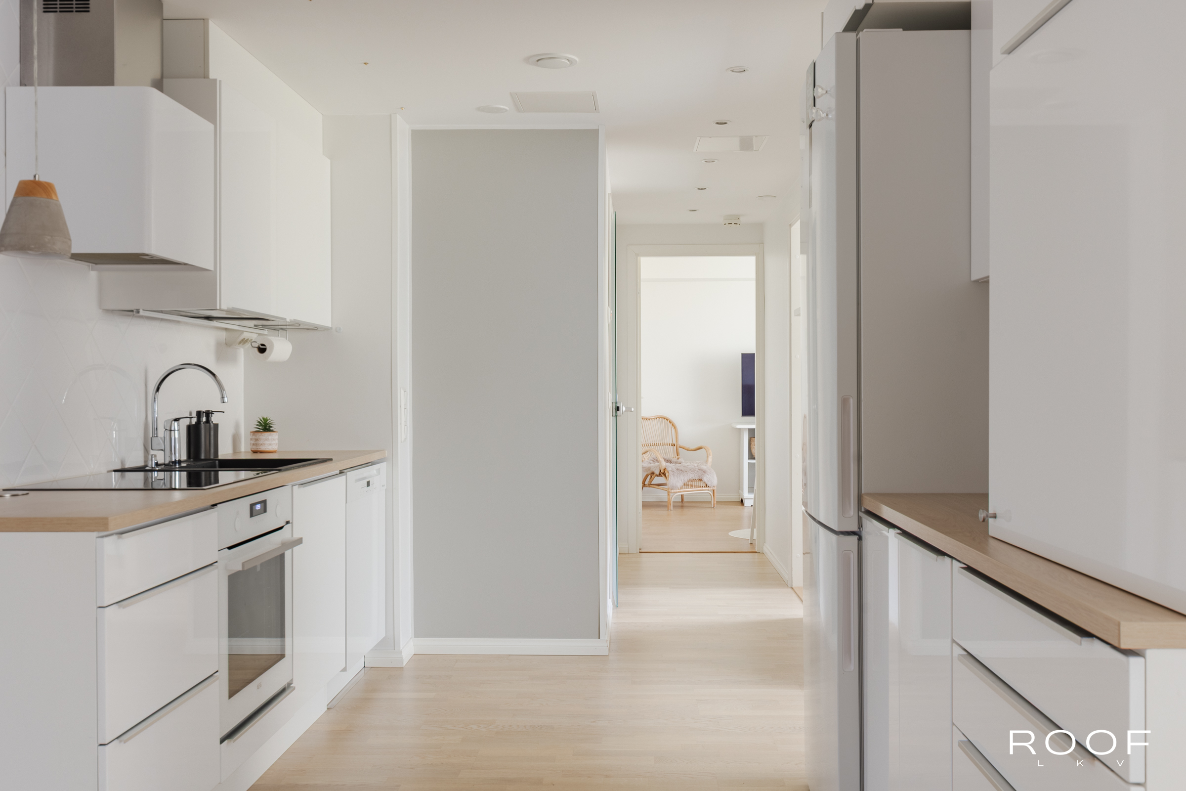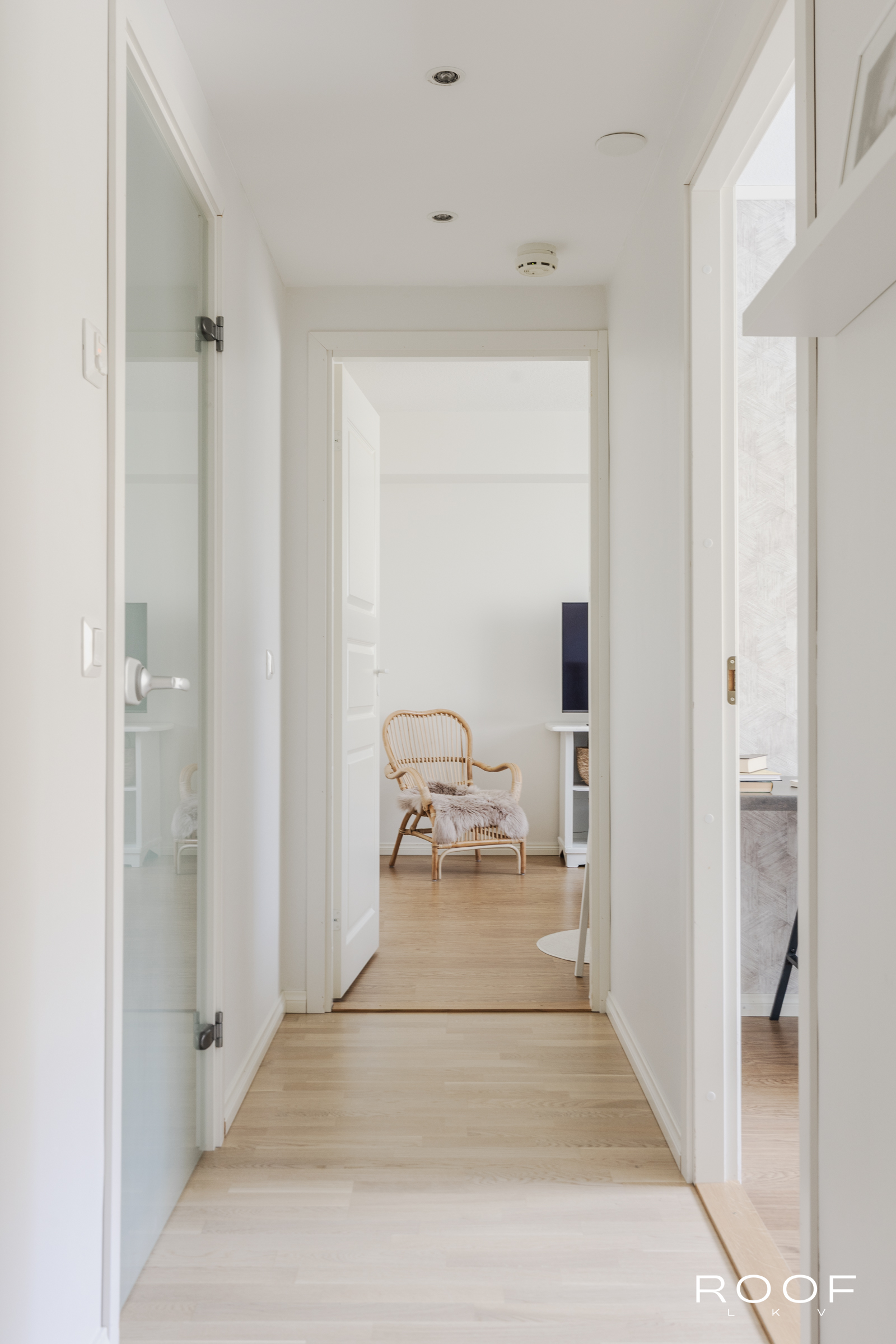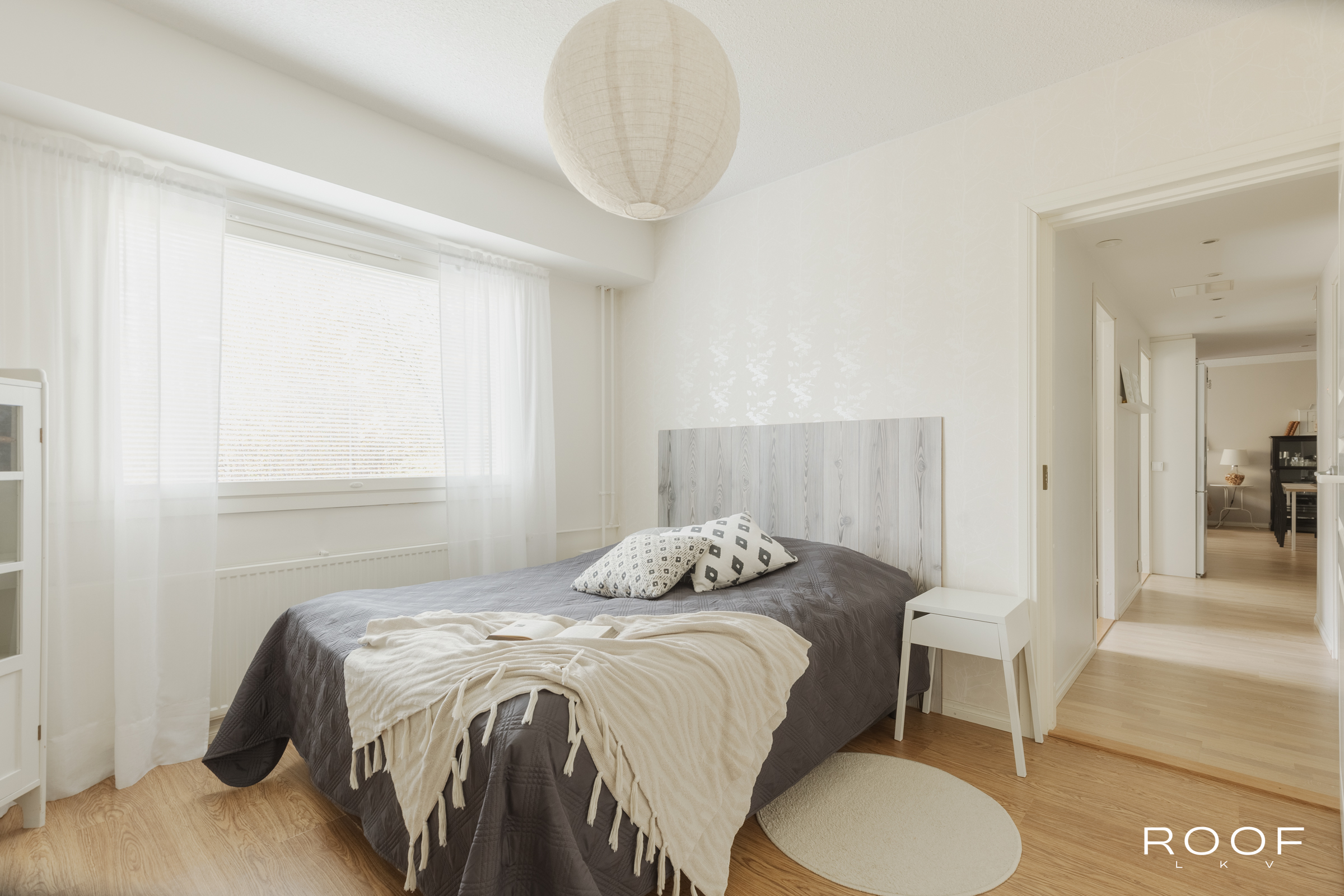 Tämä tilava läpitalon huoneisto tarjoaa erinomaiset puitteet perheasumiselle. Asunnossa on neljä makuuhuonetta, jotka mahdollistavat monipuoliset sisustusratkaisut ja mukavan tilan jokaiselle perheenjäsenelle. Olohuoneesta on käynti lasitetulle parvekkeelle, josta avautuvat näkymät rauhalliselle takapihalle.