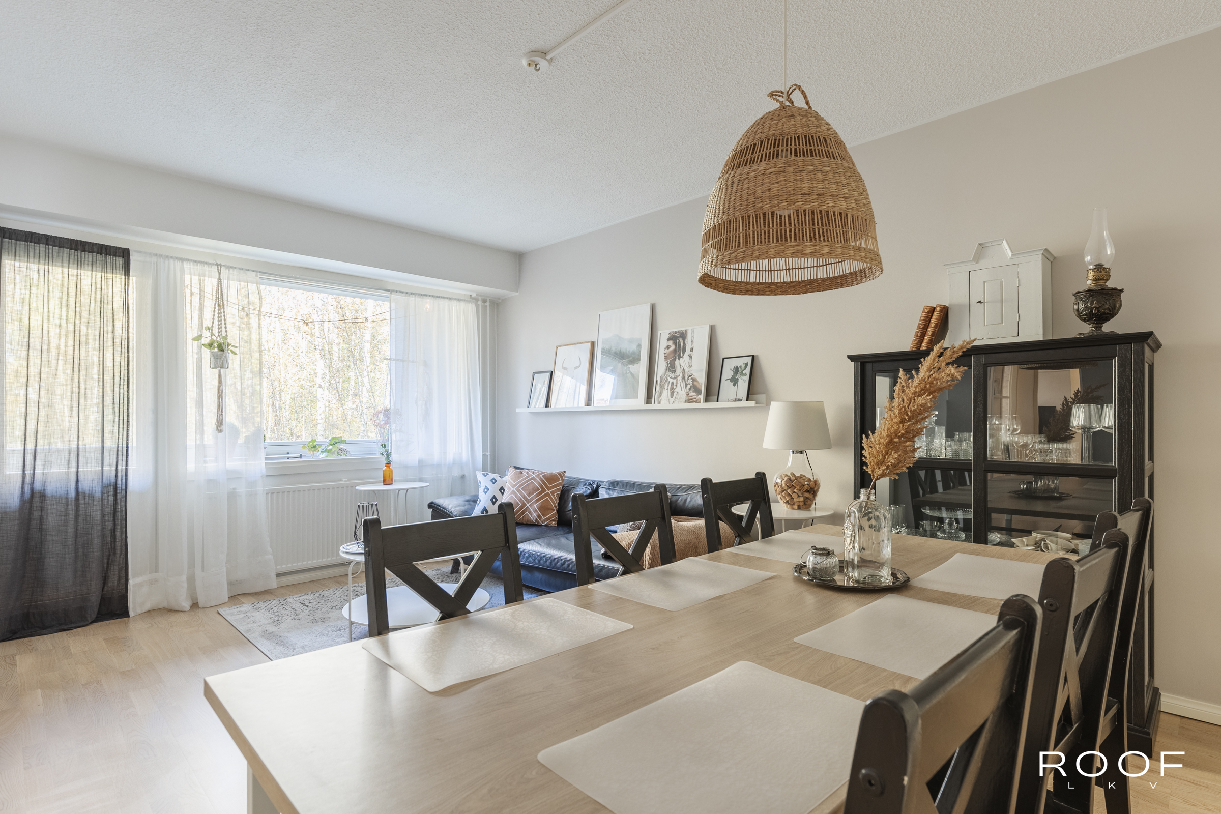 Tämä asunto tarjoaa mainiot puitteet perhe-elämälle rauhallisessa ja viihtyisässä ympäristössä.