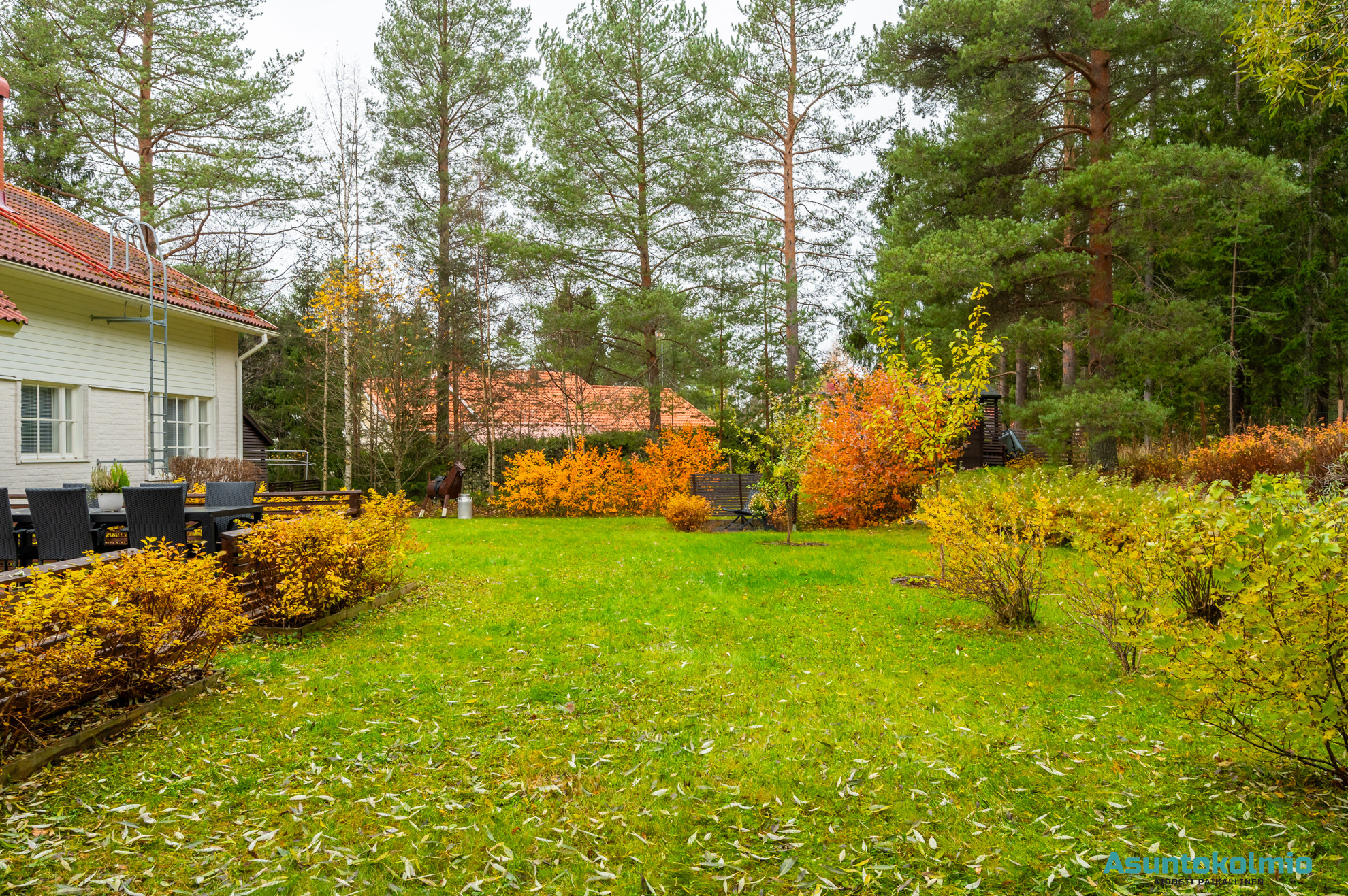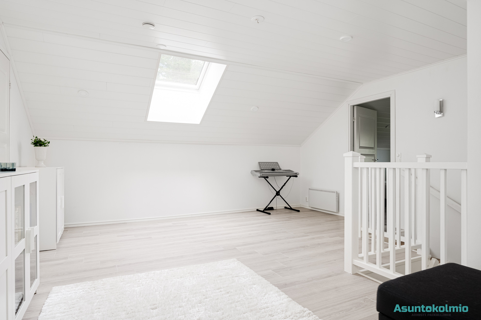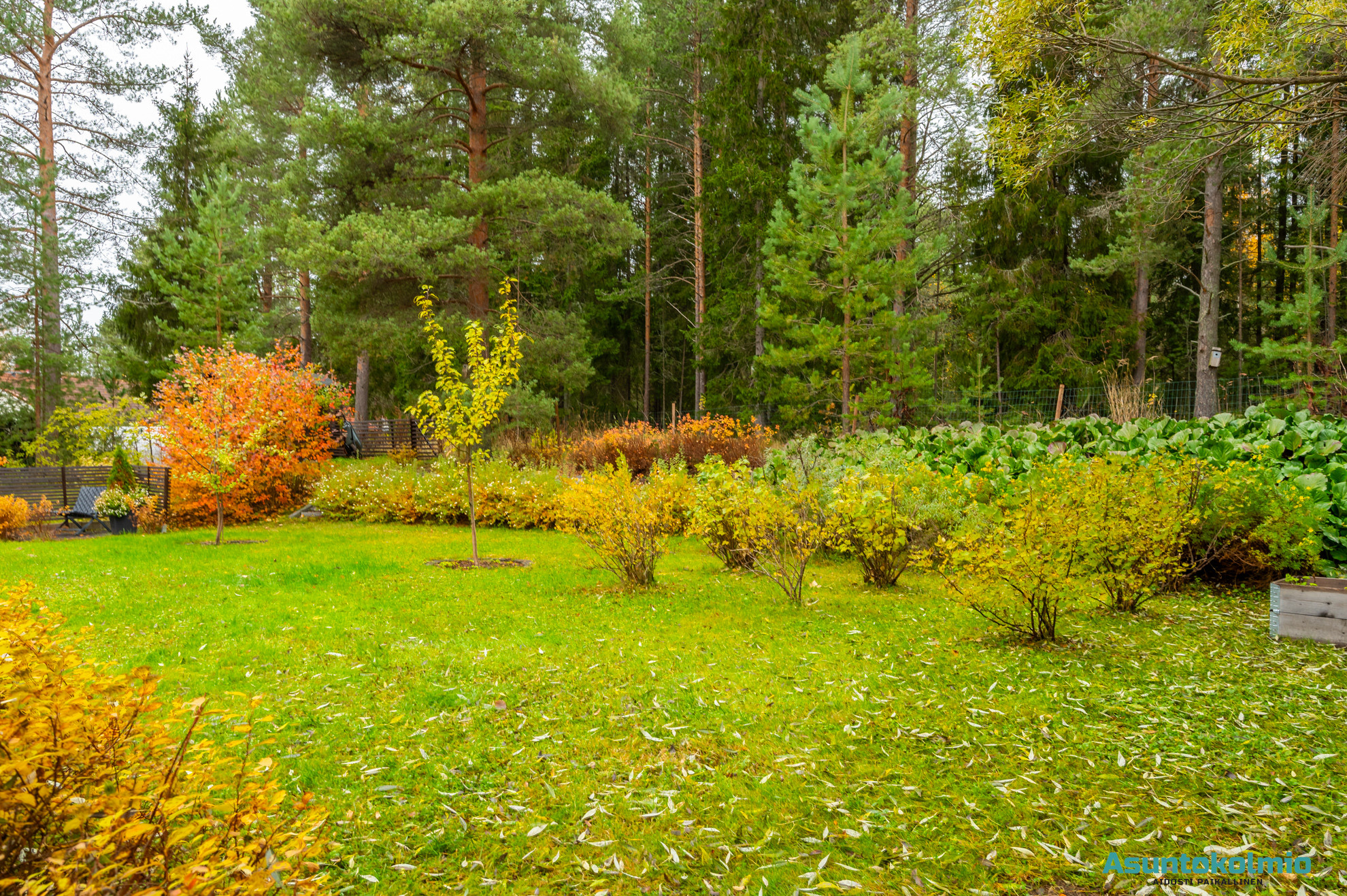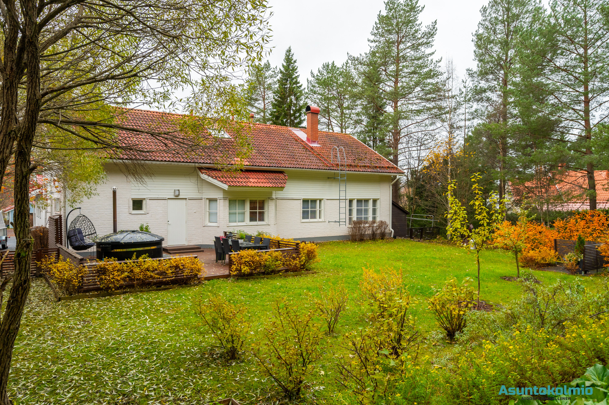Kerrassaan upea omakotitalo ja 2005 laajennettu yläkerta sisältää yhteensä 4 tilavaa makuuhuonetta, jonka lisäksi on esim. vierashuoneeksi soveltuva iso yläkerran aula sekä varastohuone. Alakerrassa olevat yhteiset tilat ovat käytännölliset ja kodin pinnat on lähes kauttaaltaan remontoitu vuosien 2015-2024 aikana. Olohuoneessa korotettu sisäkatto antaa tilalle ilmettä ja puistomaisia näkymiä kelpaa ihailla. Keittiö on nykyaikaisen vaalea ja kauniin tyylikäs ja sen yhteydessä oleva ruokailutila yhdistää olohuone-keittiön mukavan yhtenäiseksi. Vastikään remontoitu kodinhoitohuone on monen unelma, ja se sisältää runsaasti kaappitilaa, oman sisäänkäynnin, kurapisteen, arkieteisen sekä erillisen vaatehuoneen. Lämmin autotalli, sähköauton latauspisteellä varustettu autokatos, lämpimät varastotilat ja isolla takaterassilla oleva palju viimeistelevät tämän ihastuttavan kokonaisuuden ja kaunis piha-alue on erityisen viehättävä jokaisena vuodenaikana. Näyttävästä sisääntulosta löytyy komeat muurit, jotka ovat kiinteästi valaistut.