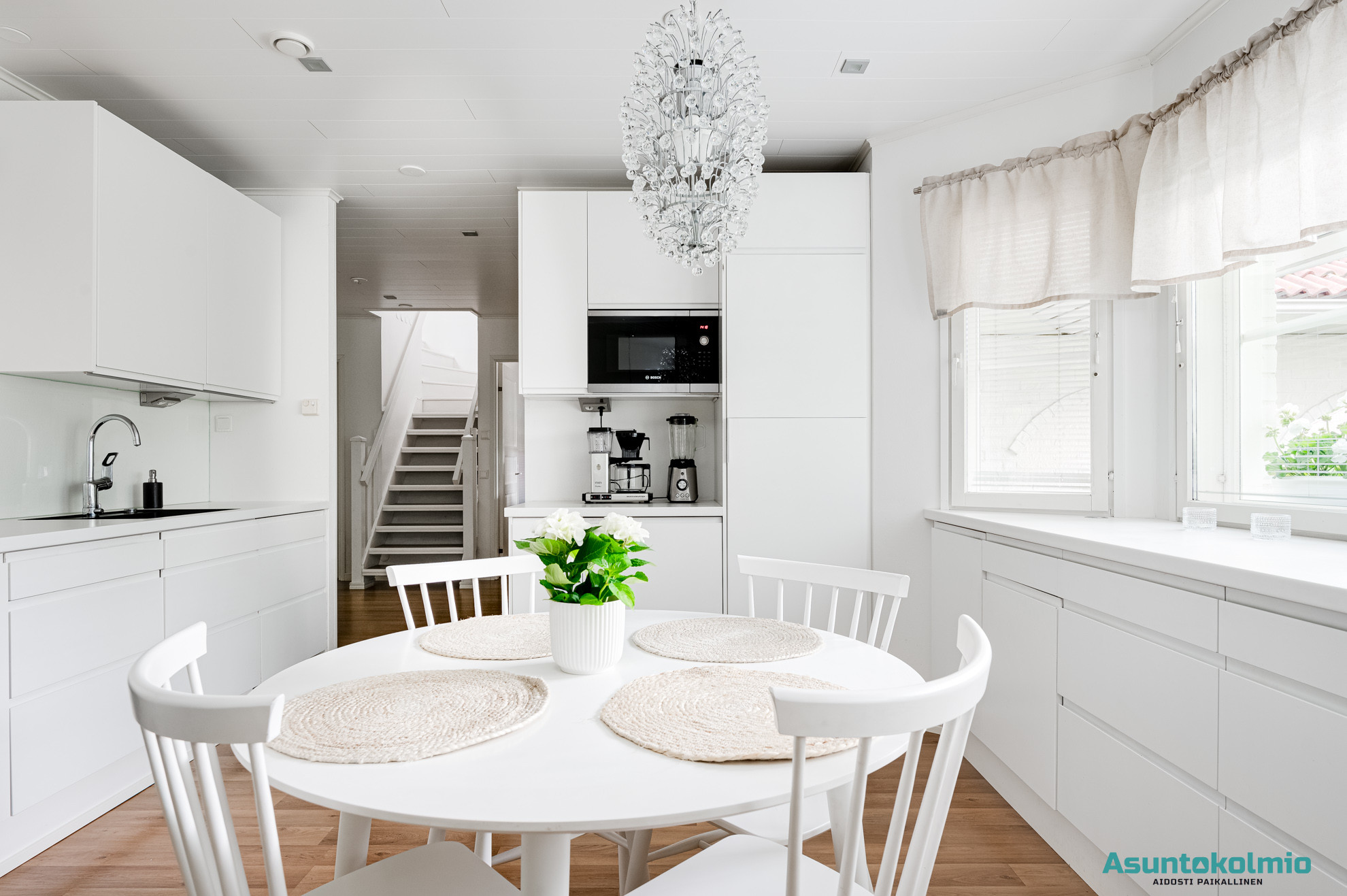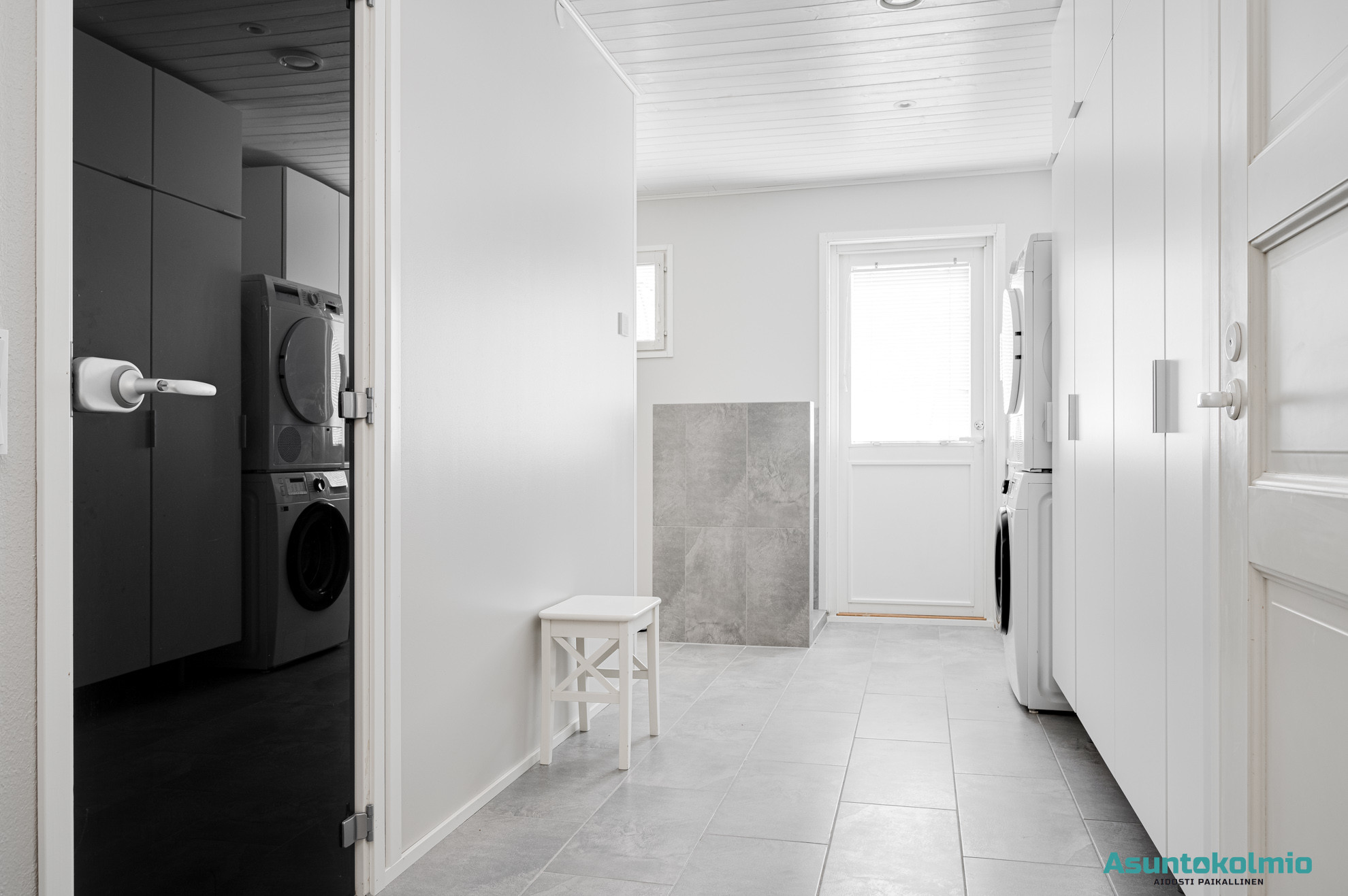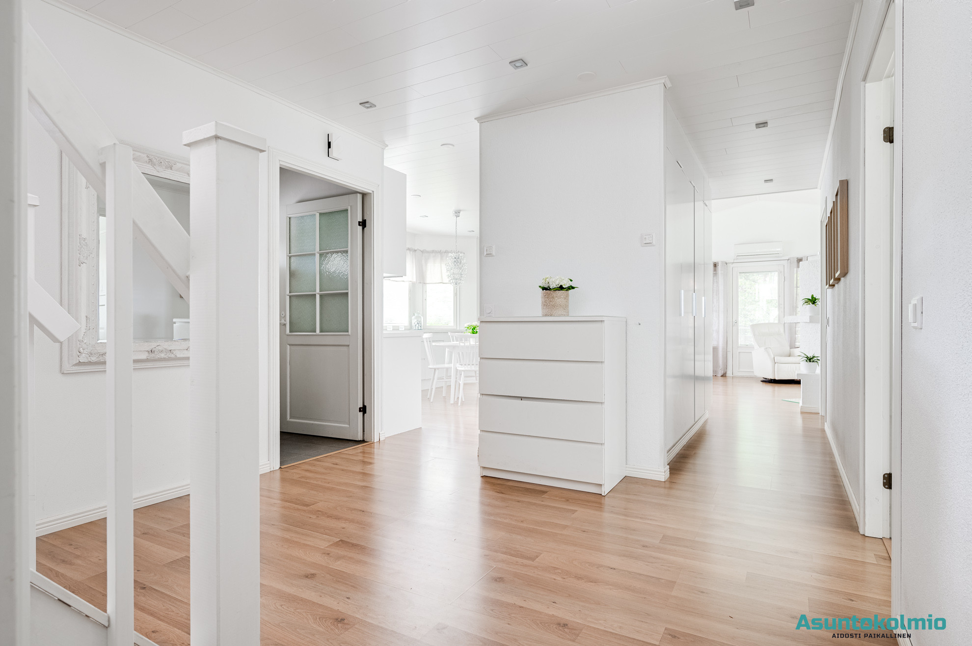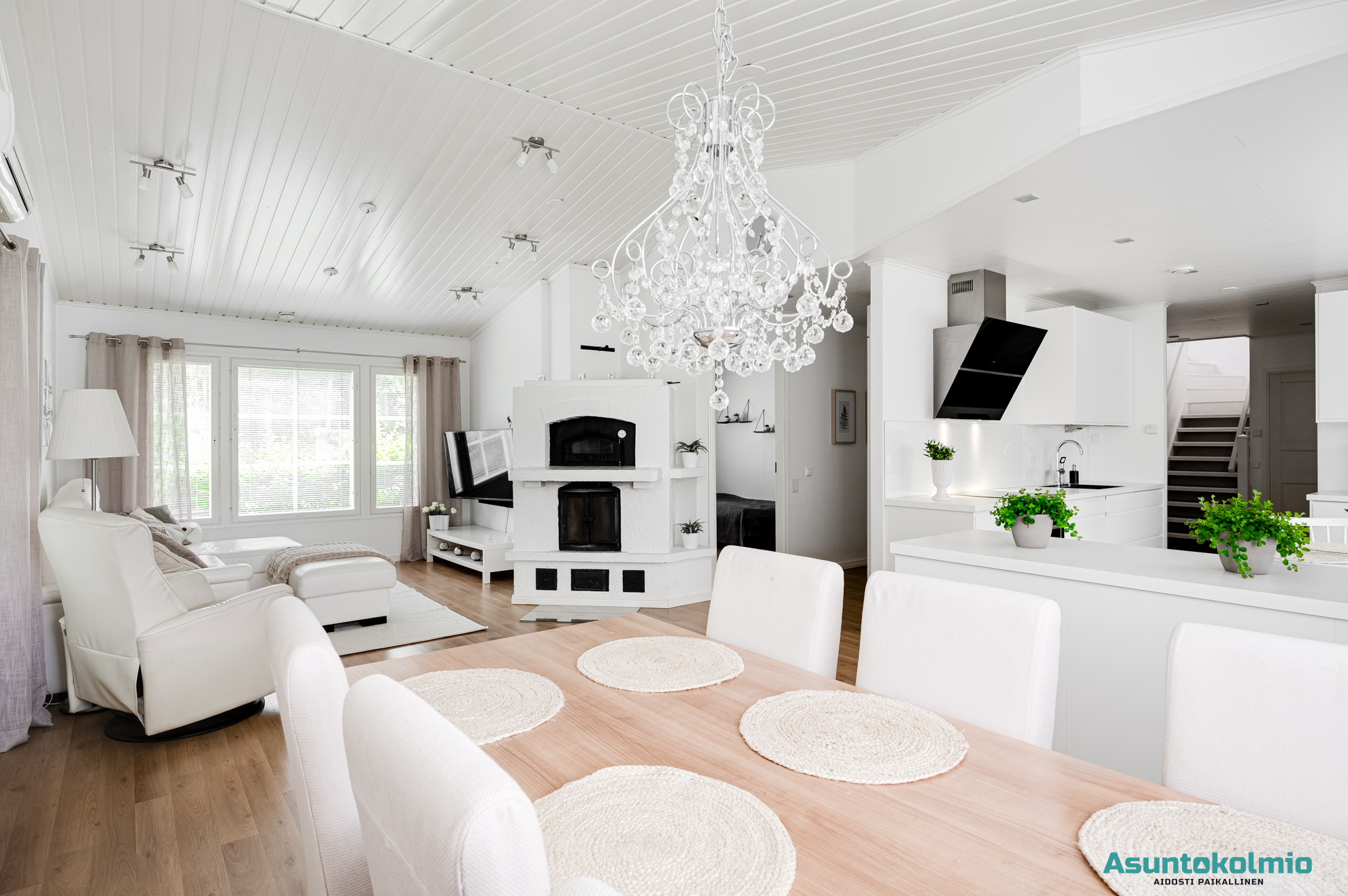 Kerrassaan upea omakotitalo ja 2005 laajennettu yläkerta sisältää yhteensä 4 tilavaa makuuhuonetta, jonka lisäksi on esim. vierashuoneeksi soveltuva iso yläkerran aula sekä varastohuone. Alakerrassa olevat yhteiset tilat ovat käytännölliset ja kodin pinnat on lähes kauttaaltaan remontoitu vuosien 2015-2024 aikana. Olohuoneessa korotettu sisäkatto antaa tilalle ilmettä ja puistomaisia näkymiä kelpaa ihailla. Keittiö on nykyaikaisen vaalea ja kauniin tyylikäs ja sen yhteydessä oleva ruokailutila yhdistää olohuone-keittiön mukavan yhtenäiseksi. Vastikään remontoitu kodinhoitohuone on monen unelma, ja se sisältää runsaasti kaappitilaa, oman sisäänkäynnin, kurapisteen, arkieteisen sekä erillisen vaatehuoneen. Lämmin autotalli, sähköauton latauspisteellä varustettu autokatos, lämpimät varastotilat ja isolla takaterassilla oleva palju viimeistelevät tämän ihastuttavan kokonaisuuden ja kaunis piha-alue on erityisen viehättävä jokaisena vuodenaikana. Näyttävästä sisääntulosta löytyy komeat muurit, jotka ovat kiinteästi valaistut.