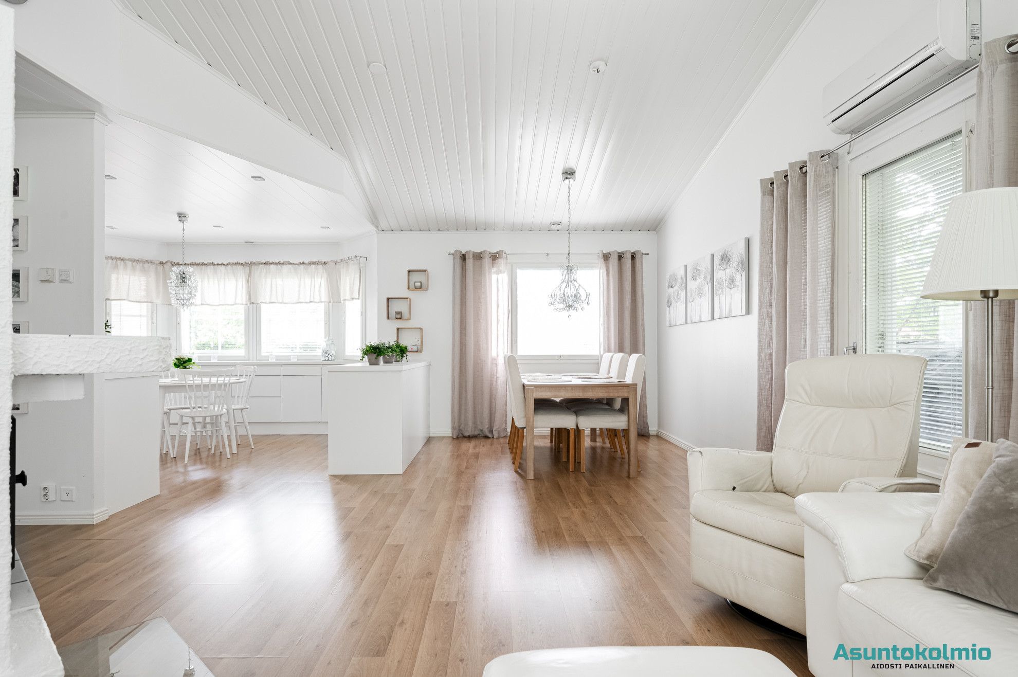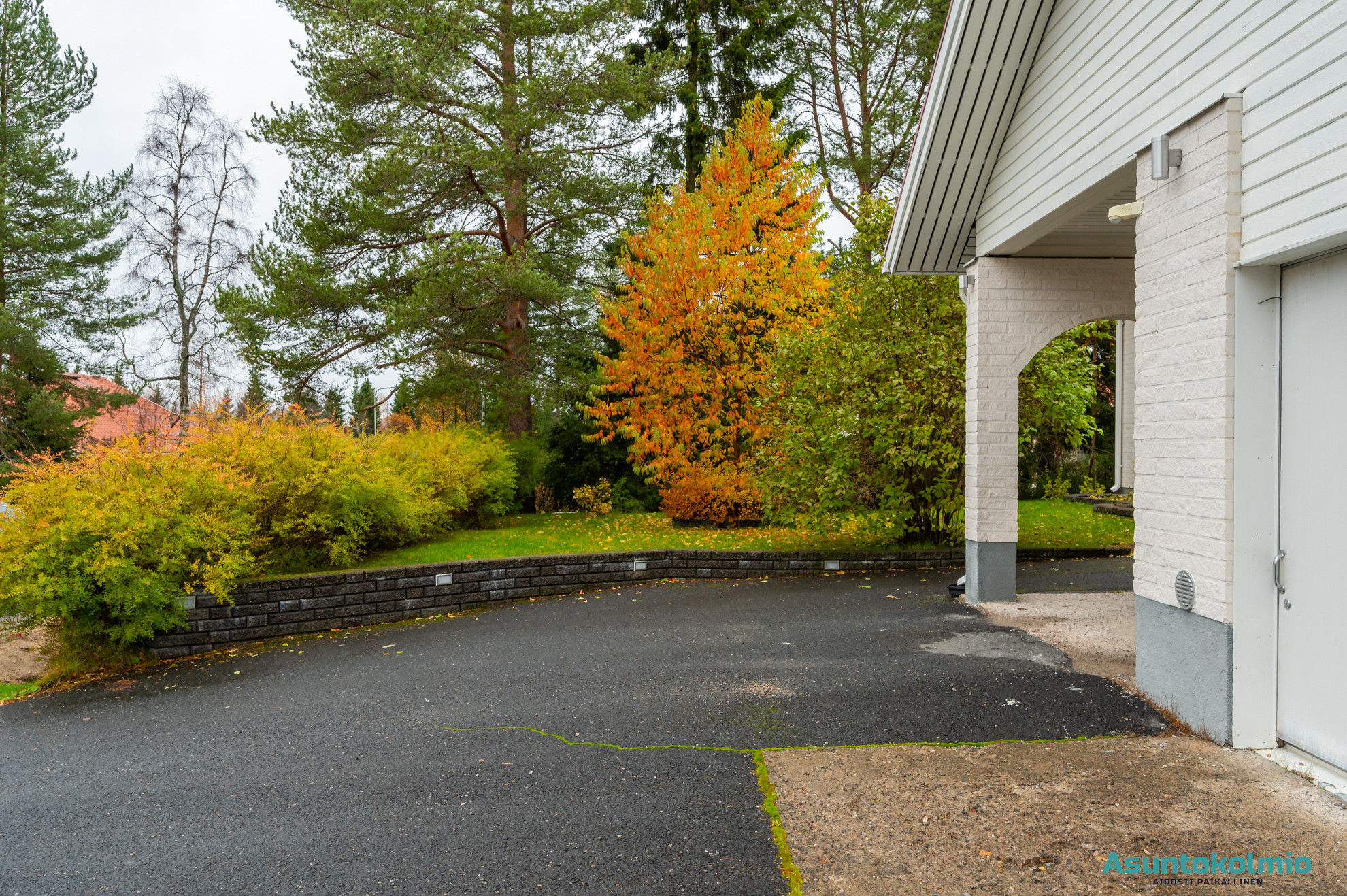 Ikäistänsä tuoreemman oloinen, vuonna 1993 näyttävästi loivaan rinteeseen rakennettu talo. Reilusti remontteja läpikäynyt, muuttovalmis kokonaisuus, jossa on edullista asua. Huoliteltu pihamaa rajoittuu mäntymetsäiseen puistoalueeseen. Lämmin autotalli löytyy heti pihan sisääntulosta, ja perheen autoille on lisäksi asfaltoidut pihapaikat sekä katos.