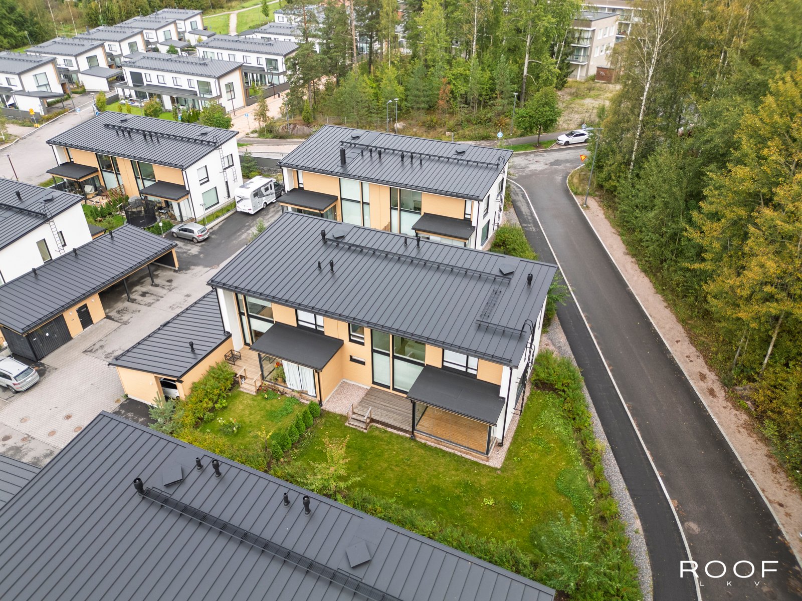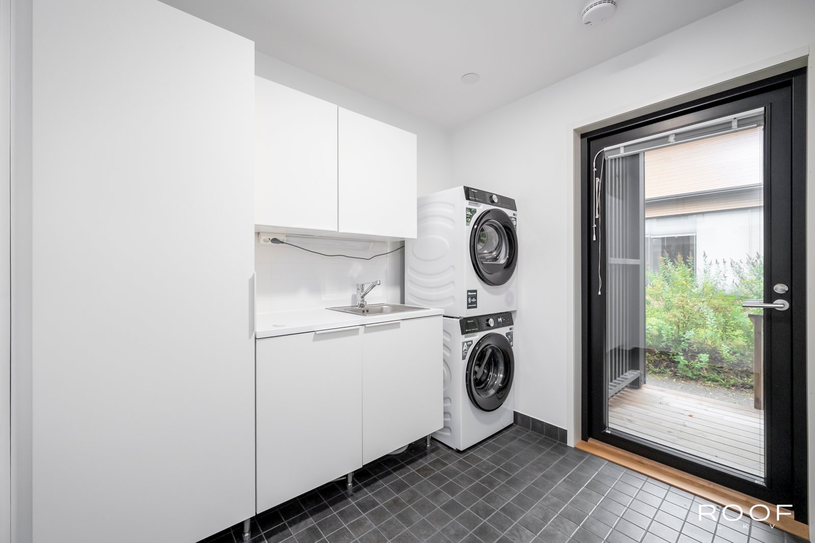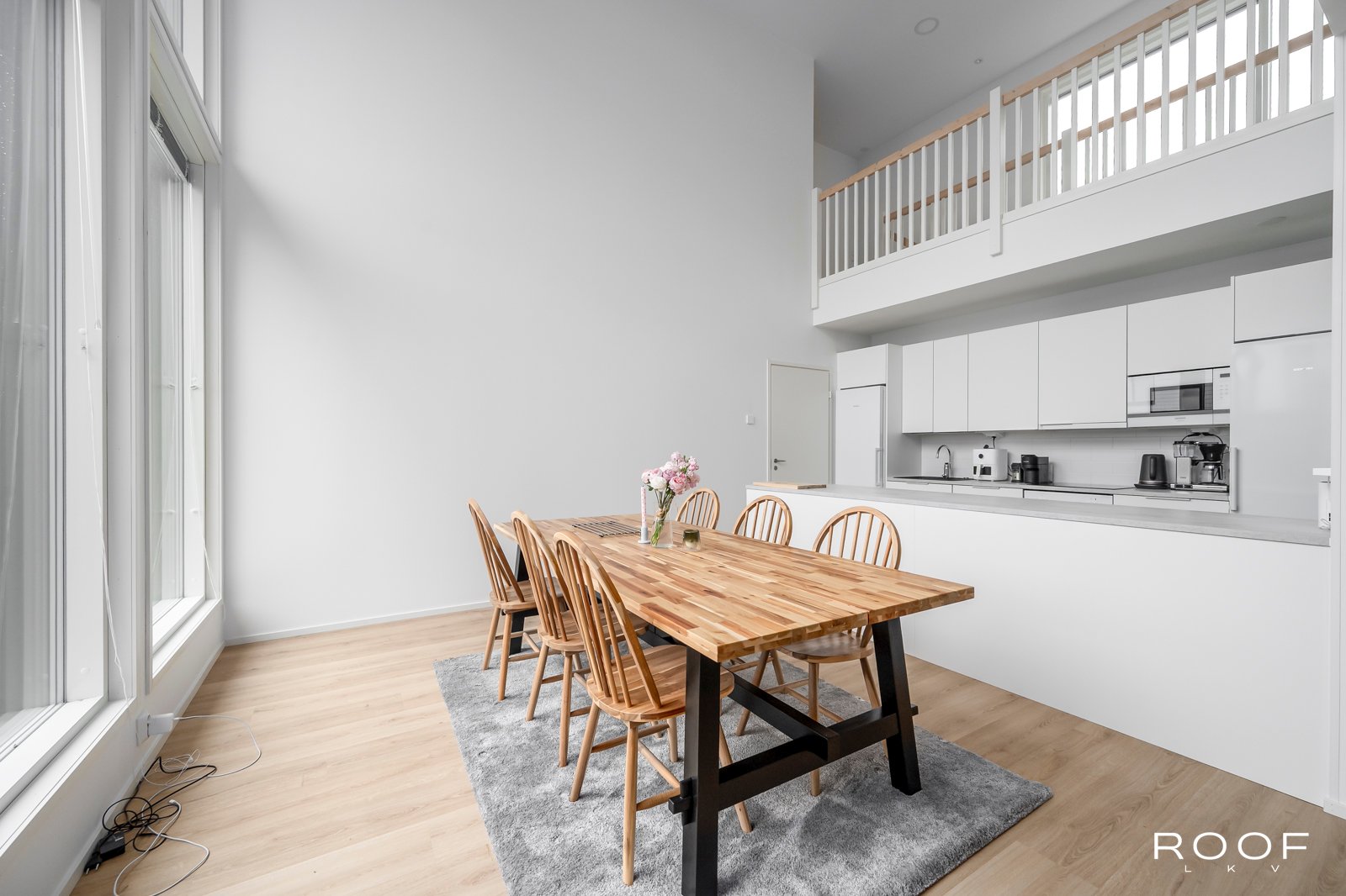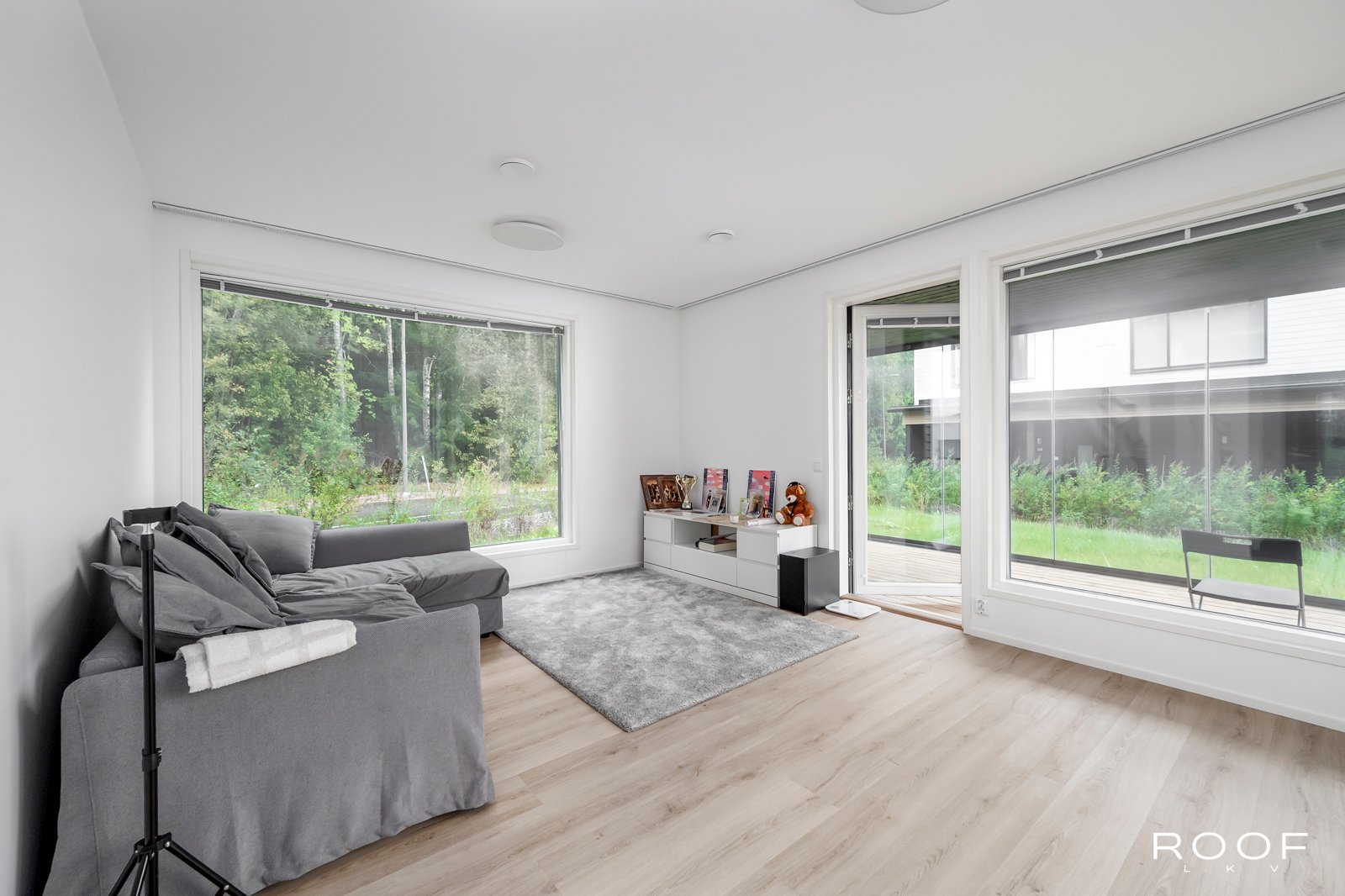 Tervetuloa tutustumaan tähän valoisaan ja avaraan paritaloasuntoon, joka tarjoaa toimivat tilat isommankin perheen arkeen. Asunnon pohjaratkaisu on suunniteltu käytännölliseksi ja viihtyisäksi: yläkerrasta löytyvät makuuhuoneet takaavat rauhalliset yöunet, kun taas alakerrassa kodin sydän, olohuone ja keittiö, yhdistyvät saumattomasti toisiinsa. Suuret ikkunat tuovat runsaasti luonnonvaloa, ja ruokailutilan kohdalla oleva hulppea aukko ylös asti lisää avaruuden tuntua. Käytännöllisyyttä arkeen tuo kaksi wc:tä, yksi kummassakin kerroksessa.