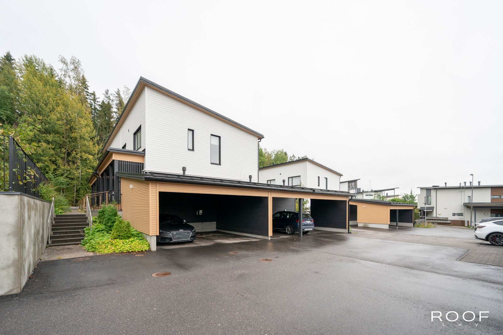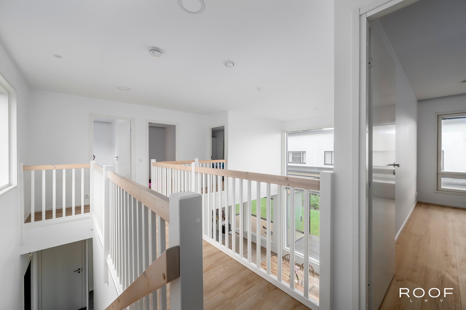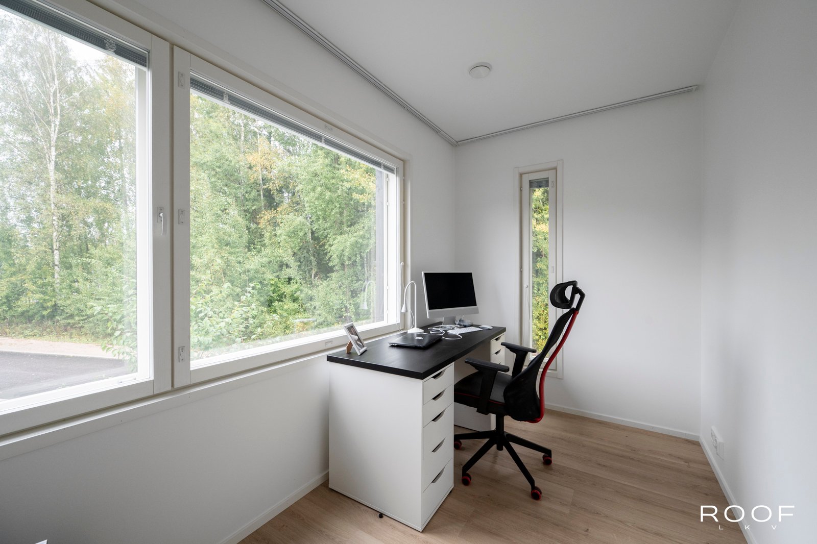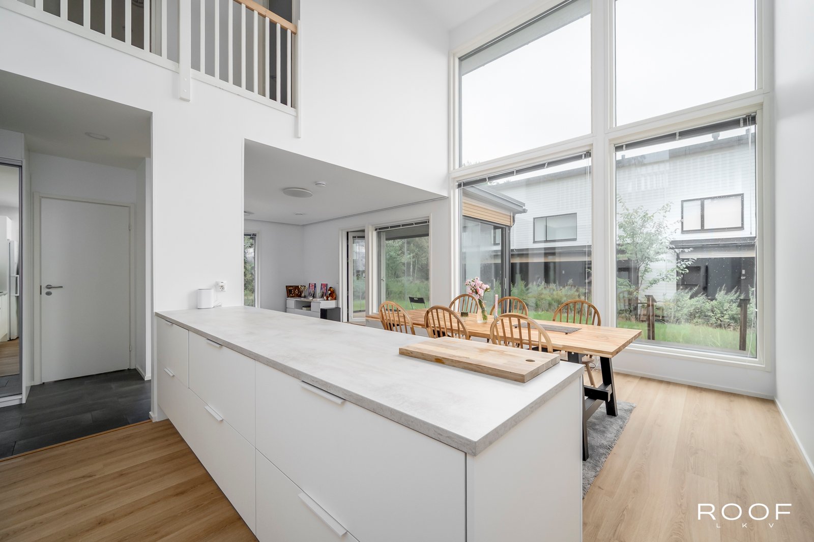 Tervetuloa tutustumaan tähän valoisaan ja avaraan paritaloasuntoon, joka tarjoaa toimivat tilat isommankin perheen arkeen. Asunnon pohjaratkaisu on suunniteltu käytännölliseksi ja viihtyisäksi: yläkerrasta löytyvät makuuhuoneet takaavat rauhalliset yöunet, kun taas alakerrassa kodin sydän, olohuone ja keittiö, yhdistyvät saumattomasti toisiinsa. Suuret ikkunat tuovat runsaasti luonnonvaloa, ja ruokailutilan kohdalla oleva hulppea aukko ylös asti lisää avaruuden tuntua. Käytännöllisyyttä arkeen tuo kaksi wc:tä, yksi kummassakin kerroksessa.