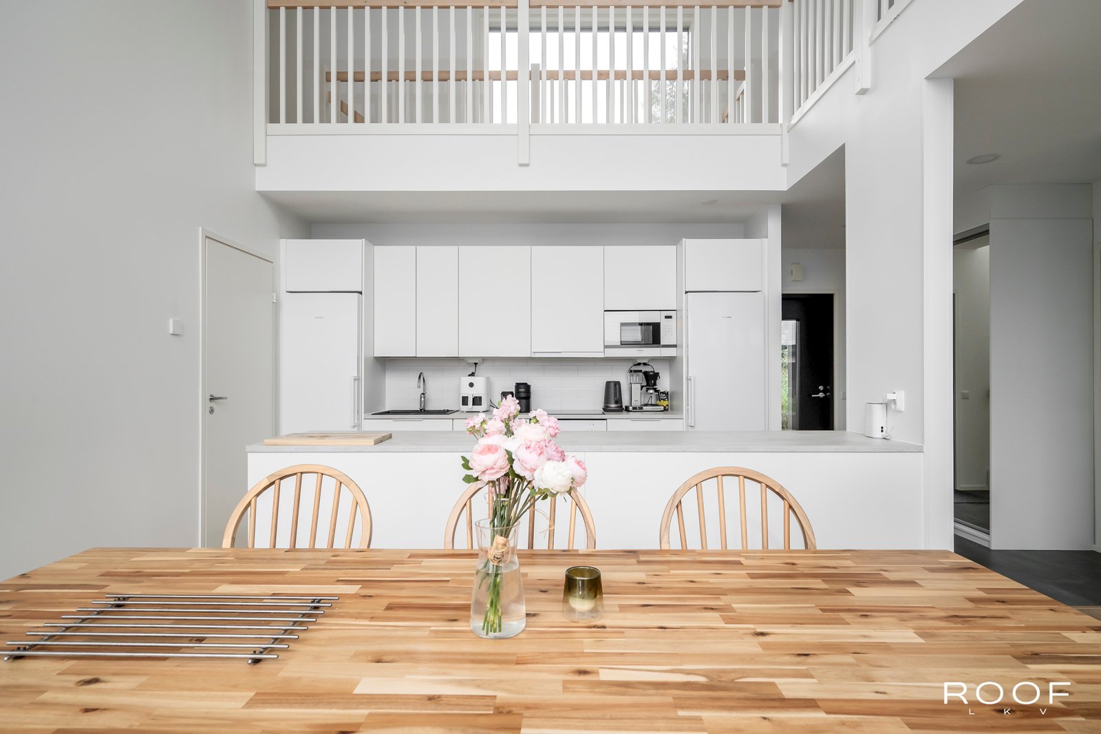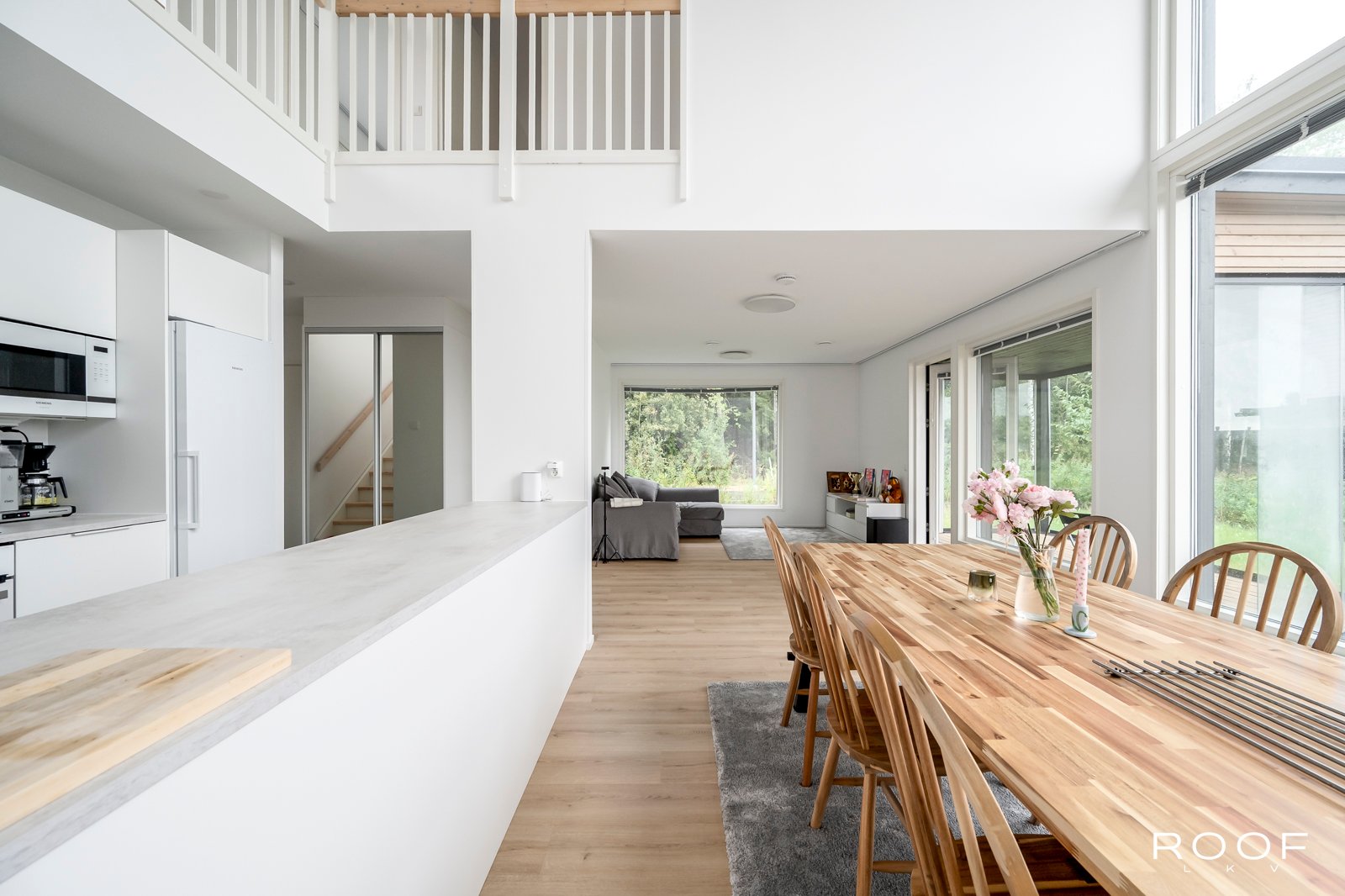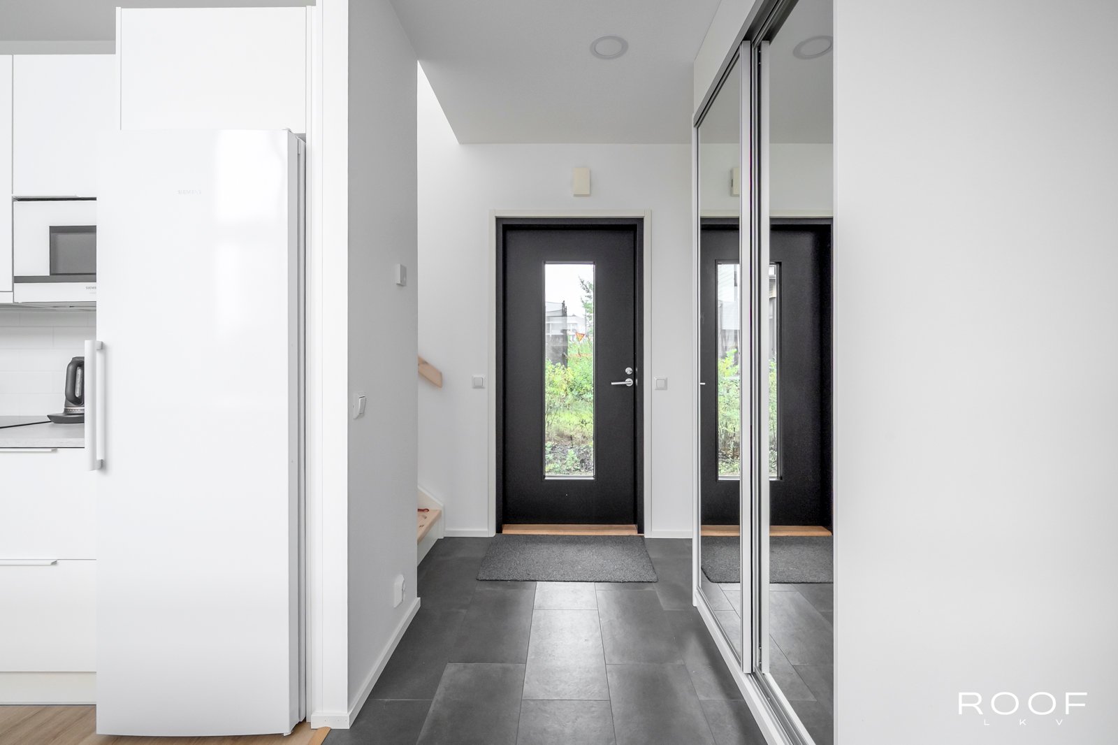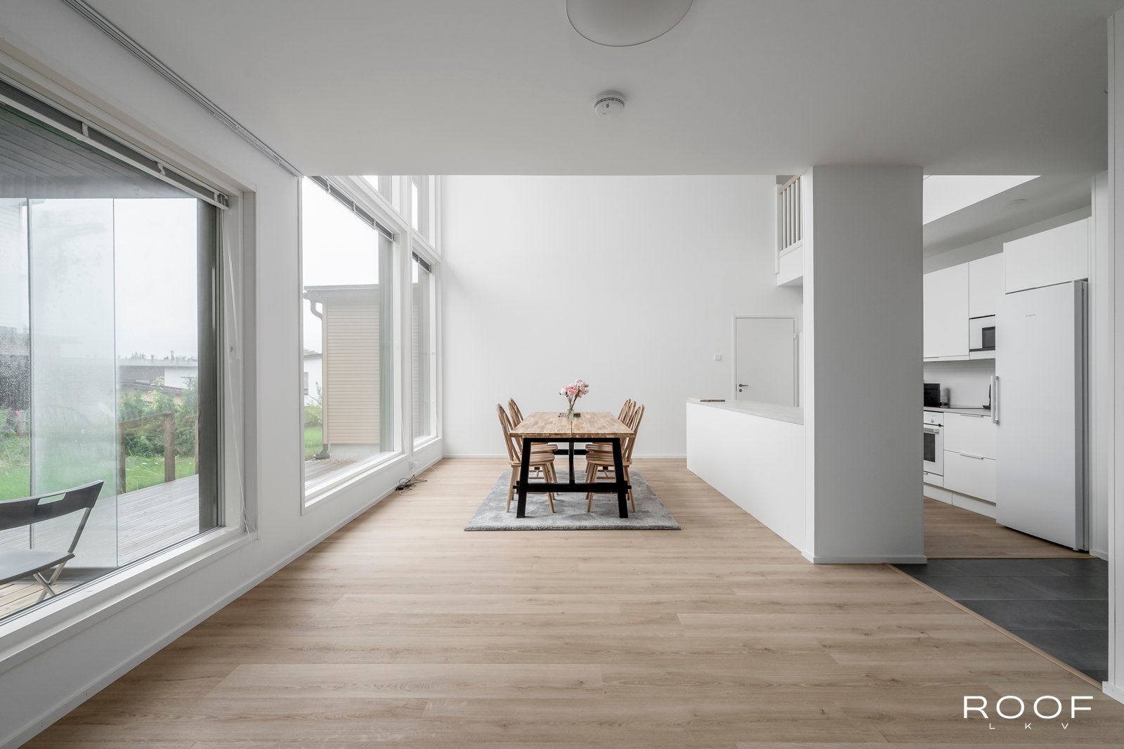 Tervetuloa tutustumaan tähän valoisaan ja avaraan paritaloasuntoon, joka tarjoaa toimivat tilat isommankin perheen arkeen. Asunnon pohjaratkaisu on suunniteltu käytännölliseksi ja viihtyisäksi: yläkerrasta löytyvät makuuhuoneet takaavat rauhalliset yöunet, kun taas alakerrassa kodin sydän, olohuone ja keittiö, yhdistyvät saumattomasti toisiinsa. Suuret ikkunat tuovat runsaasti luonnonvaloa, ja ruokailutilan kohdalla oleva hulppea aukko ylös asti lisää avaruuden tuntua. Käytännöllisyyttä arkeen tuo kaksi wc:tä, yksi kummassakin kerroksessa.