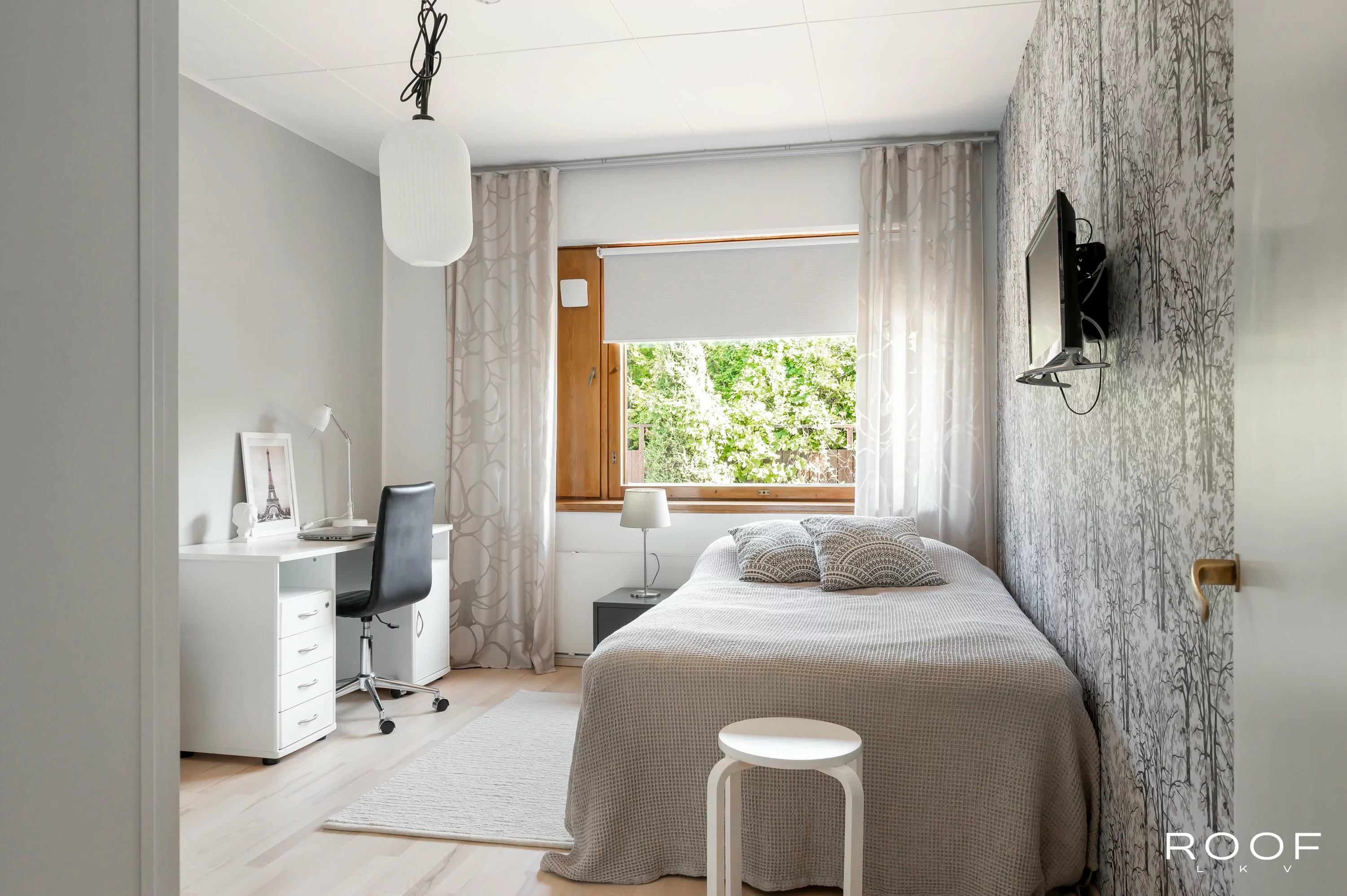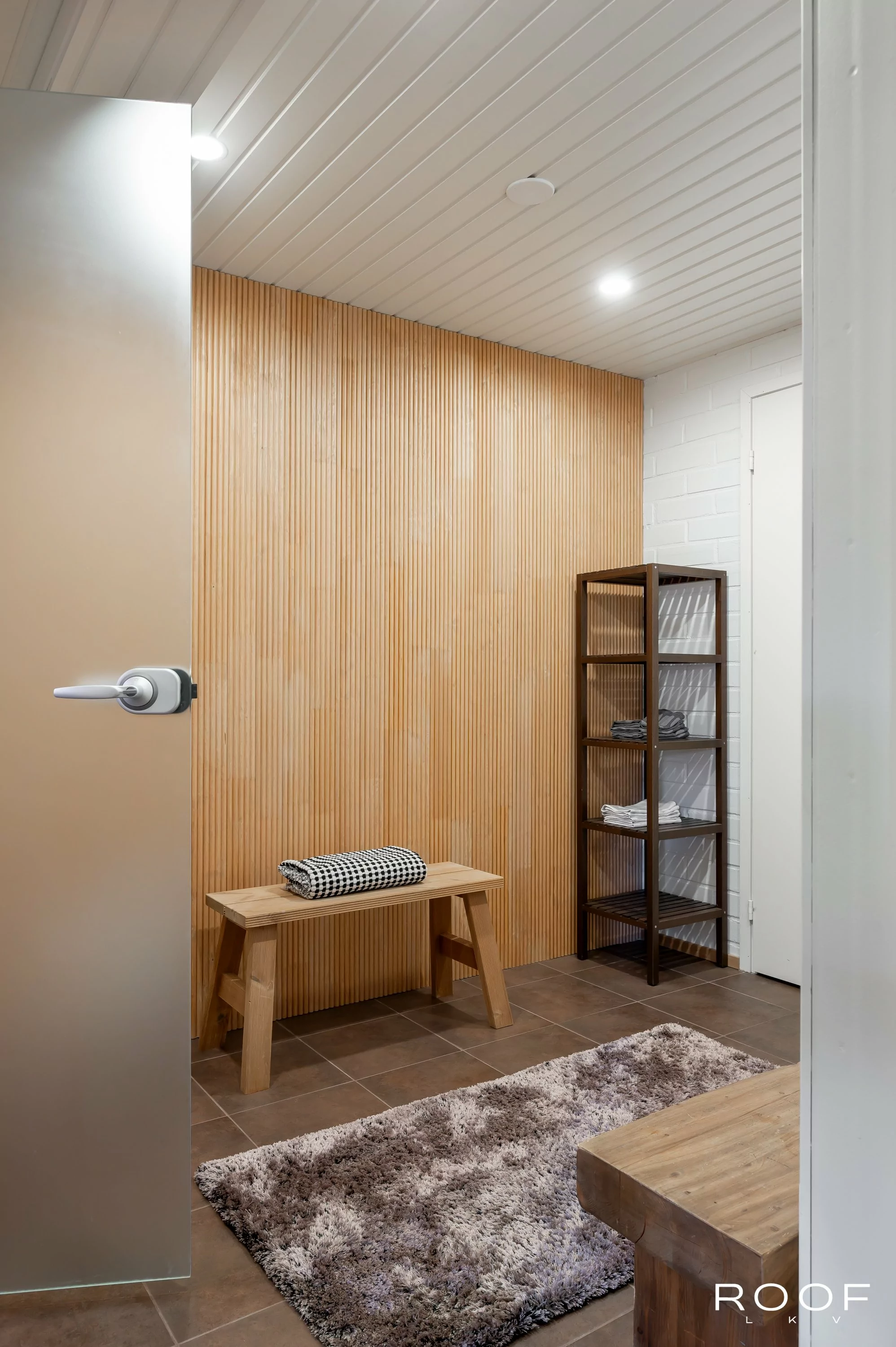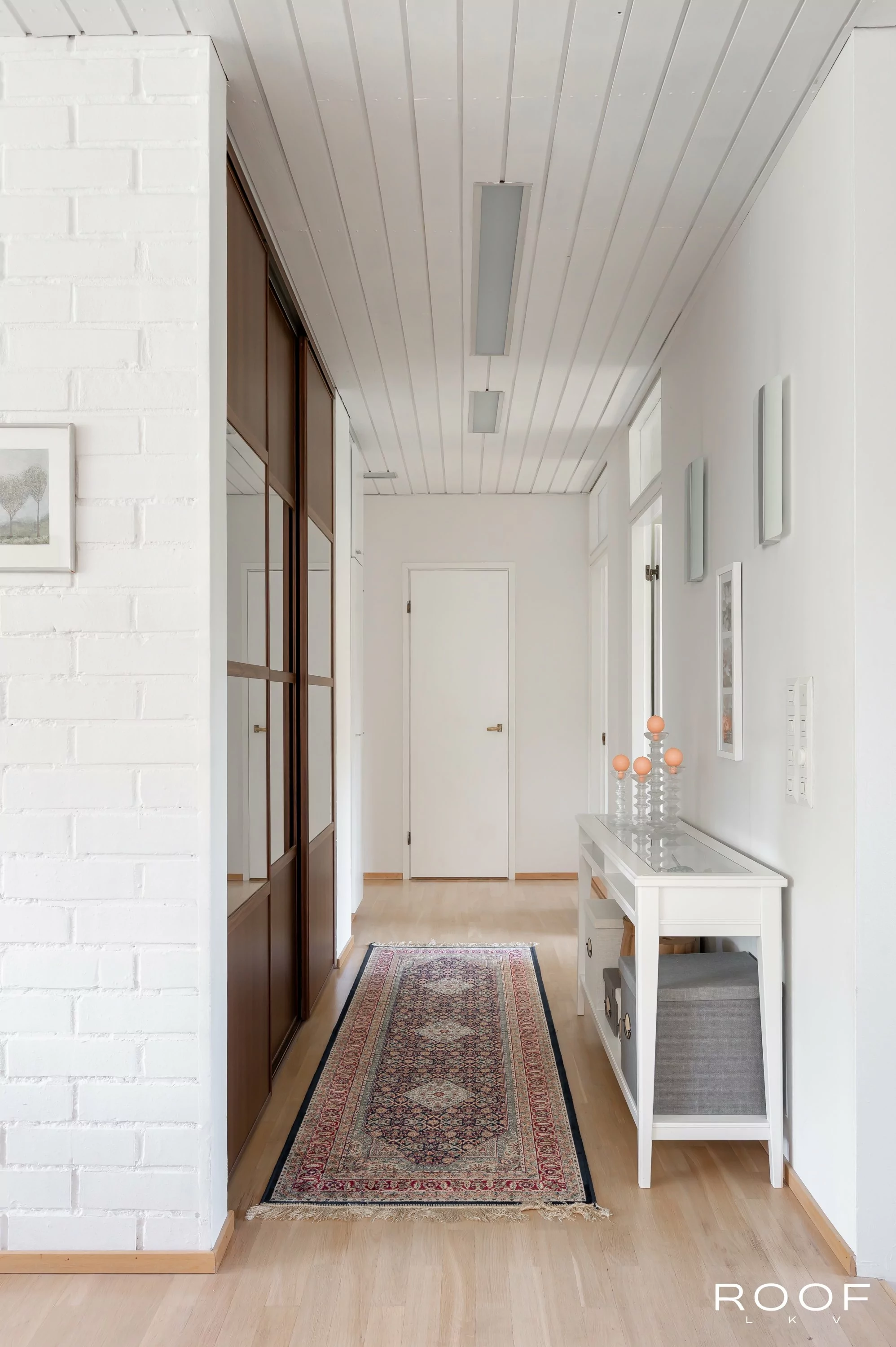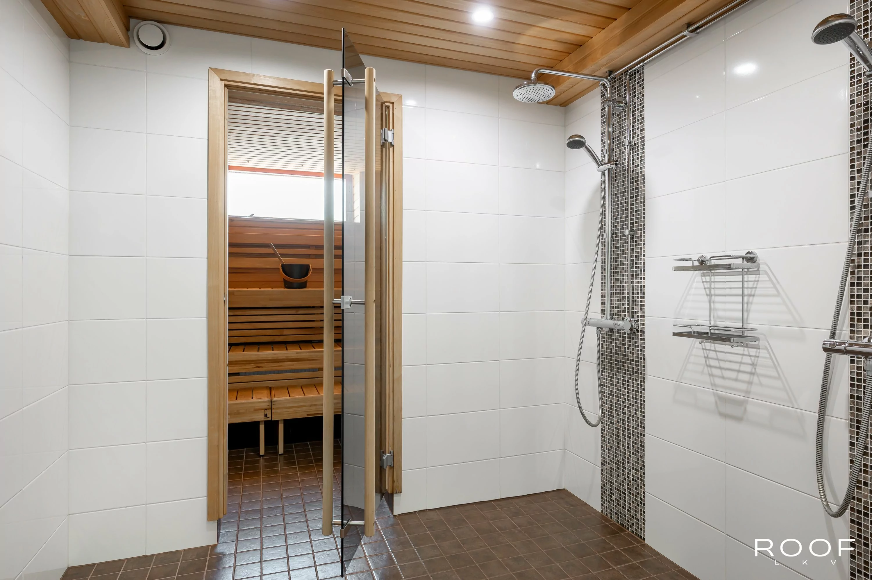 Tässä asunnossa on kaikille kodin toiminnoille loistavat omat tilansa, reilun kokoiset huoneet sekä paljon varastotilaa. Tilankäyttöä voi halutessaan mukauttaa omiin tarpeisiin esim. kirjastohuoneesta on helposti tehtävissä yksi iso makuuhuone lisää. Alakerran iso takkahuone toimii kodin toisena olohuoneena.