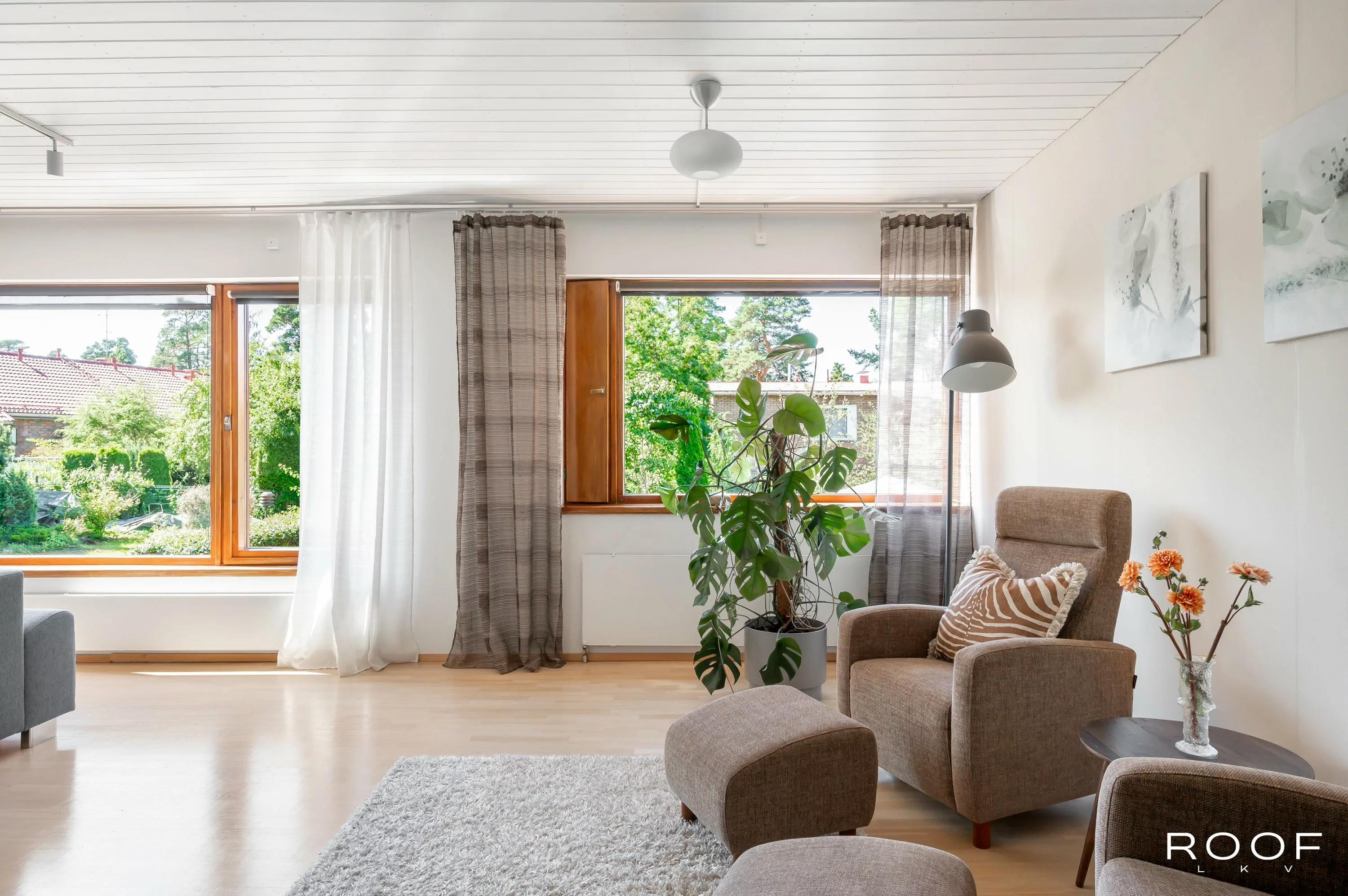 Idyllisessä Tammisalossa tilava, valoisuutta ja vehreitä näkymiä tarjoava hyväkuntoinen rivitaloasunto, jossa mittavat peruskorjaus- ja parannusurakat taloyhtiössä juuri valmistuneet.