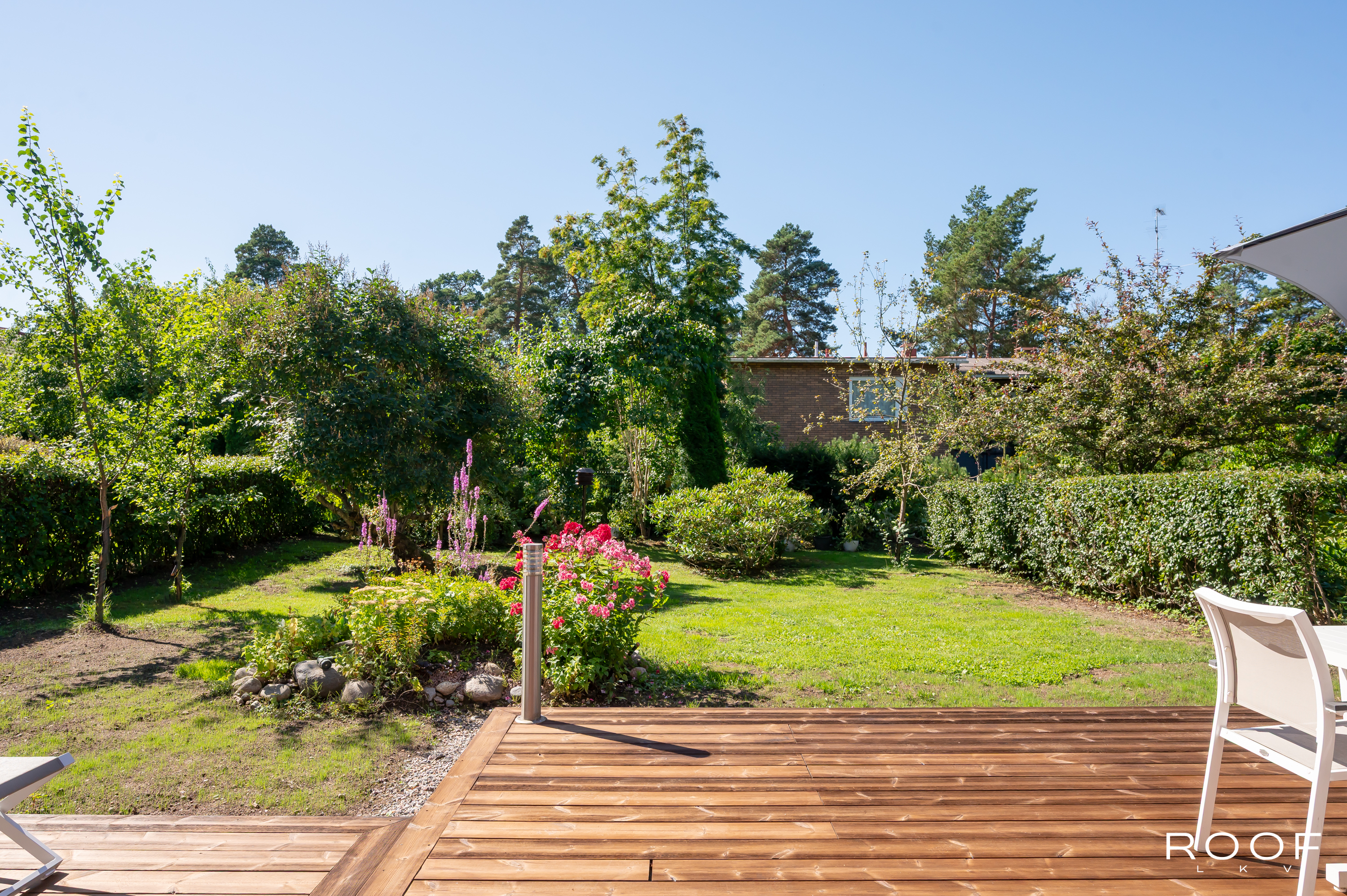Oma mukavan kokoinen ja rauhallinen piha avautuu etelän suuntaan.