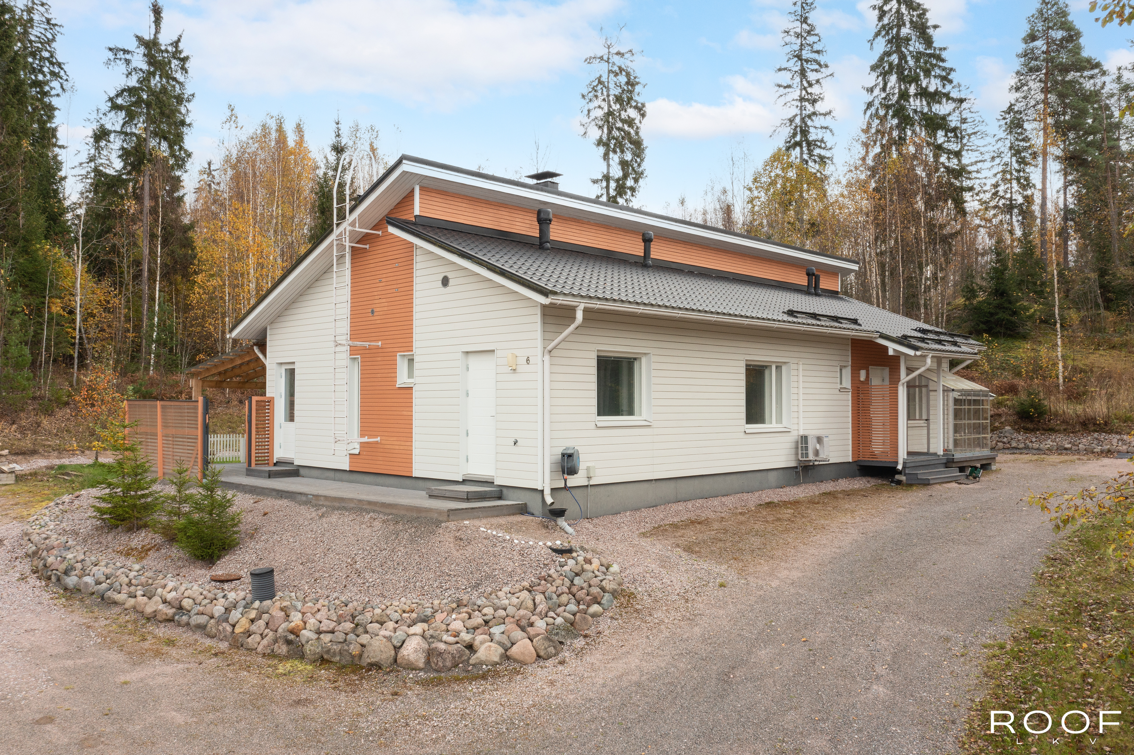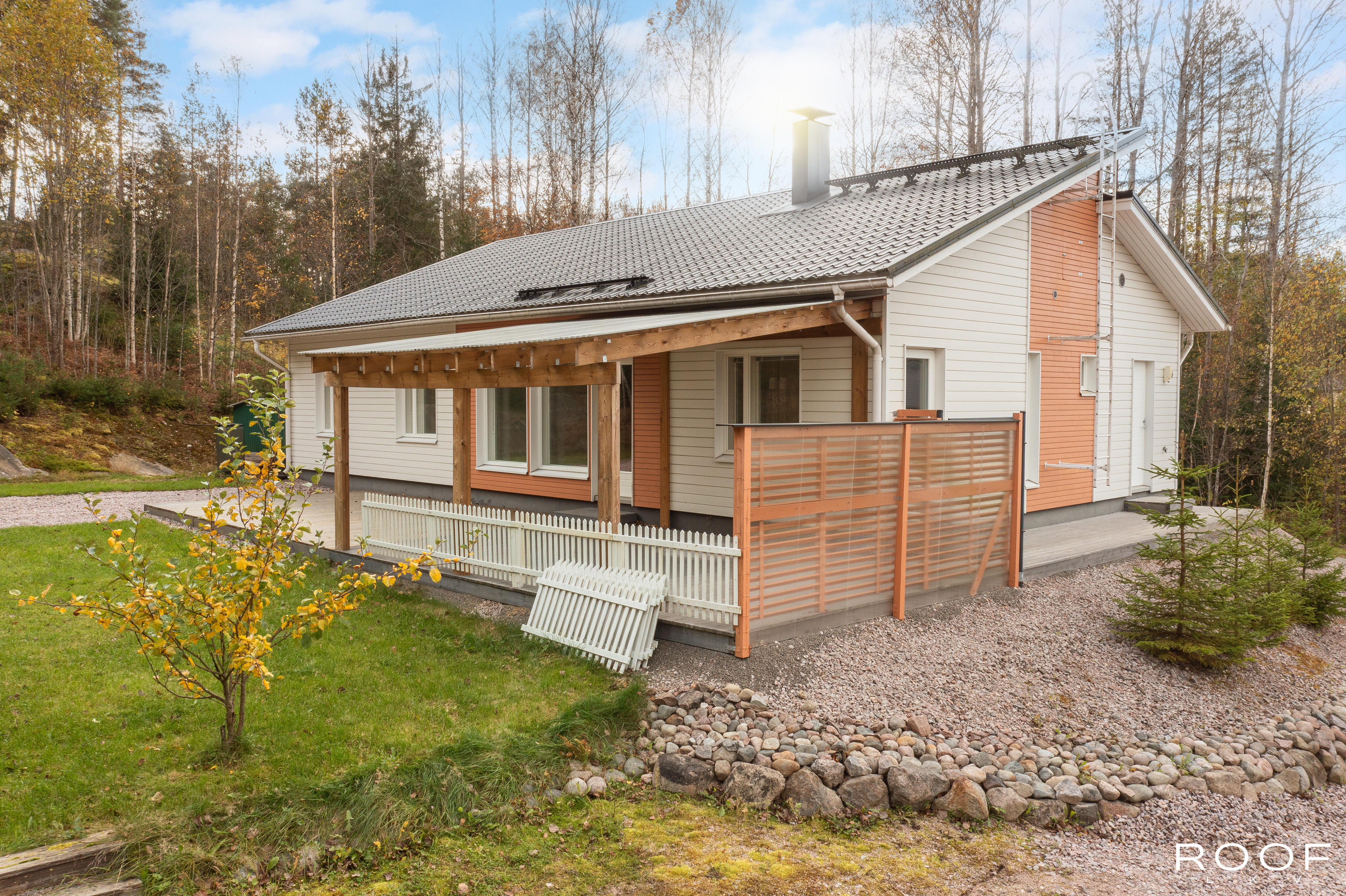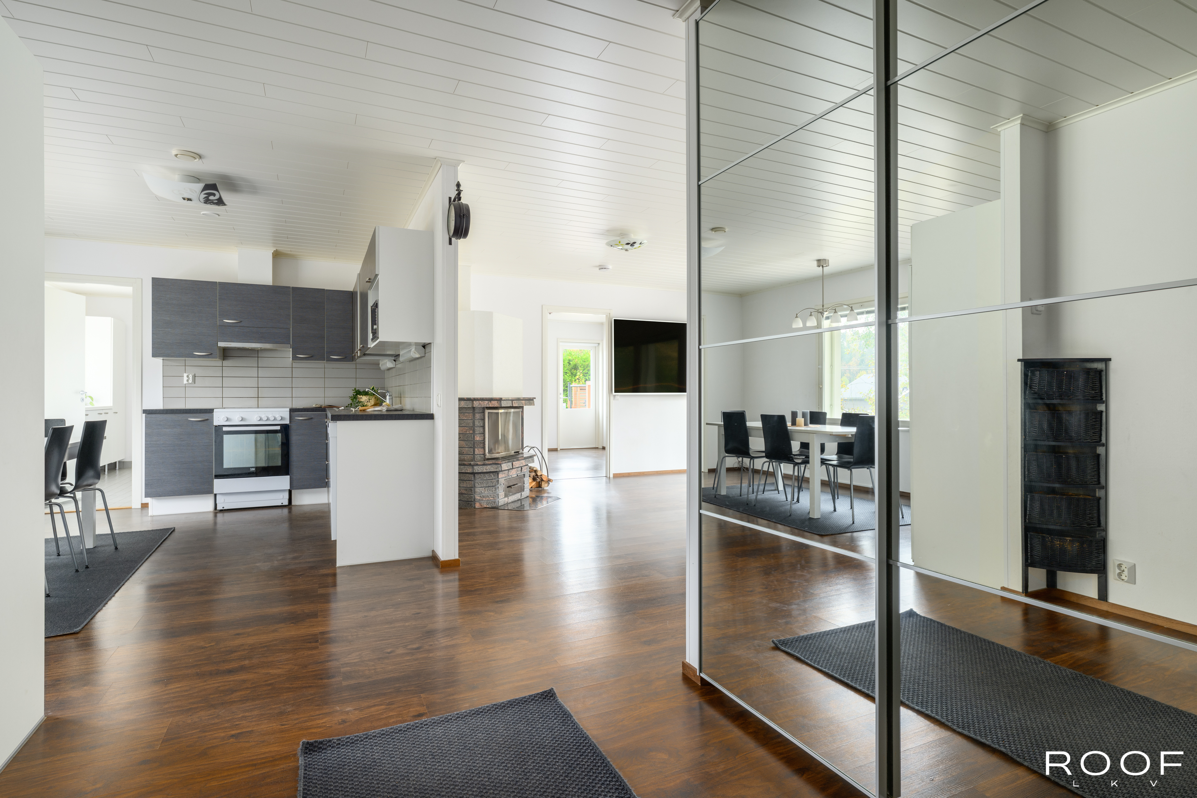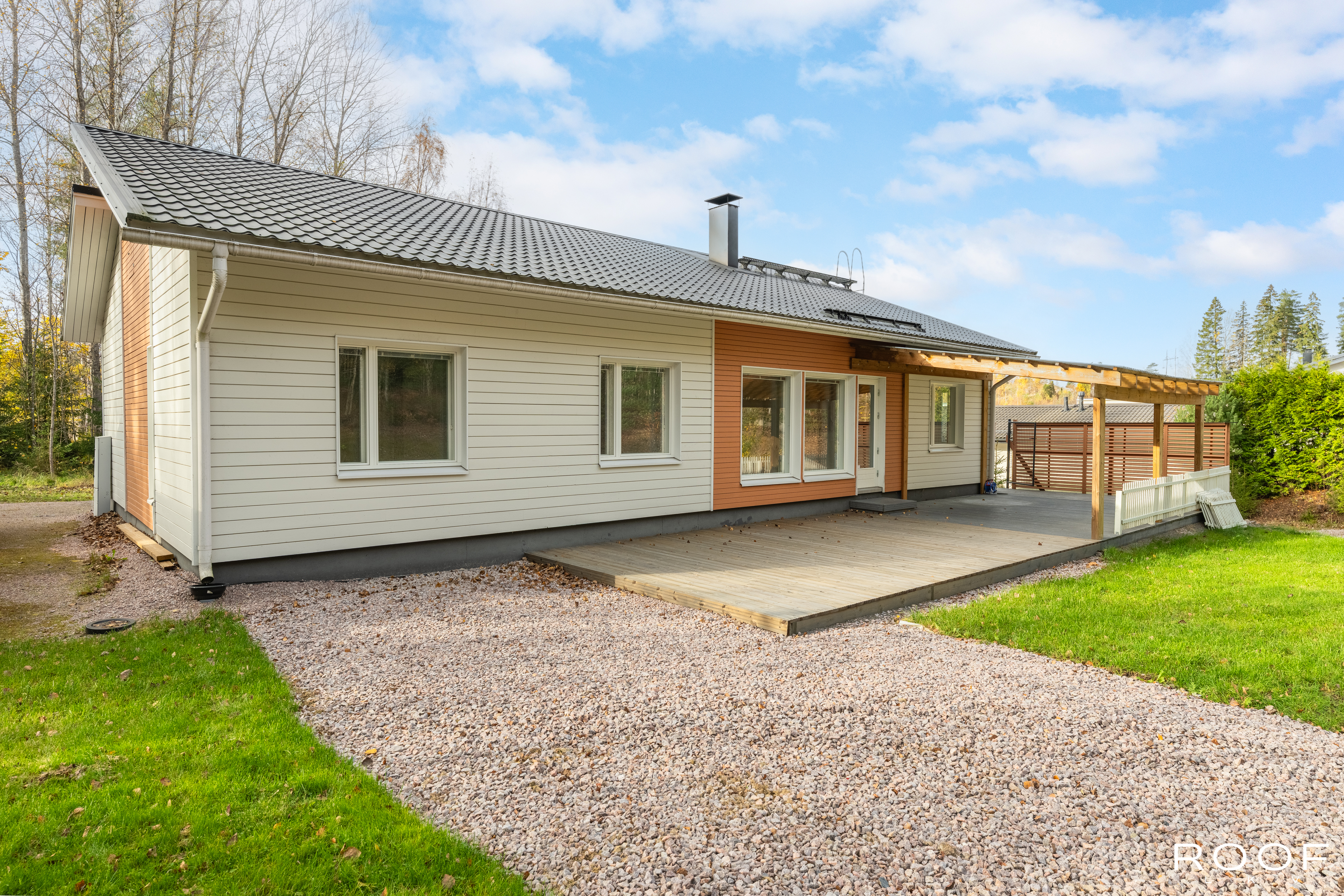 Tämä vuonna 2012 valmistunut, yksitasoinen omakotitalo tarjoaa avarat ja toimivat tilat perheelle, joka arvostaa laatua ja luonnonläheisyyttä. Talon sydämessä on valoisa olohuone, jossa varaava takka luo lämpöä ja tunnelmaa. Olohuoneesta on käynti suurelle, osittain katetulle terassille, jossa kesäpäivät ja ilta-aurinko kutsuvat viihtymään. Keittiö on hyvin varusteltu ja yhteydessä tilavaan ruokailutilaan, ja neljä makuuhuonetta tarjoavat runsaasti tilaa eri elämäntilanteisiin. Puukiukaallinen sauna, toimiva kodinhoitohuone omalla uloskäynnillä sekä nykyaikaiset mukavuudet – kuten lattialämmitys ja ilmalämpöpumppu , tekevät asumisesta vaivatonta vuoden ympäri.