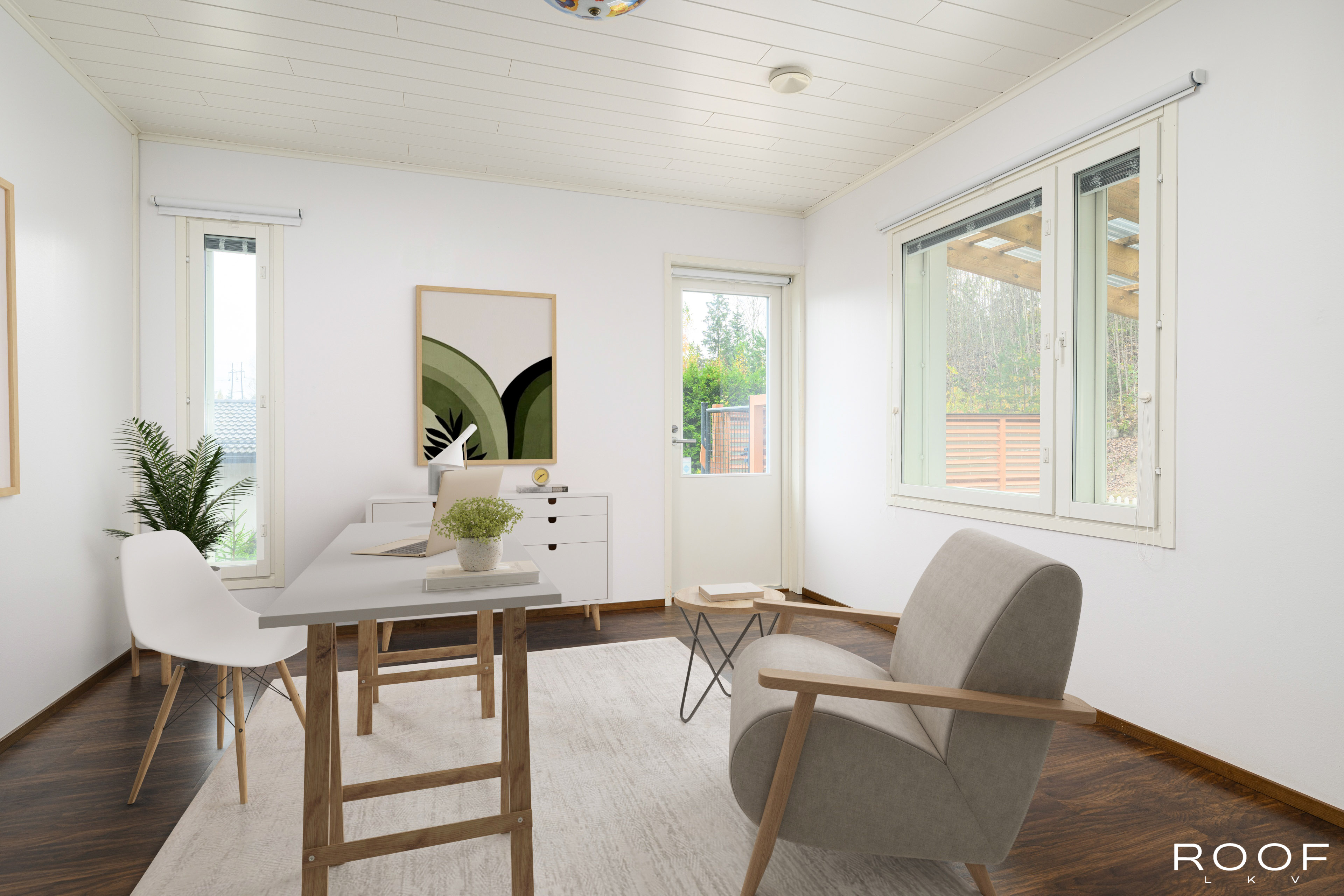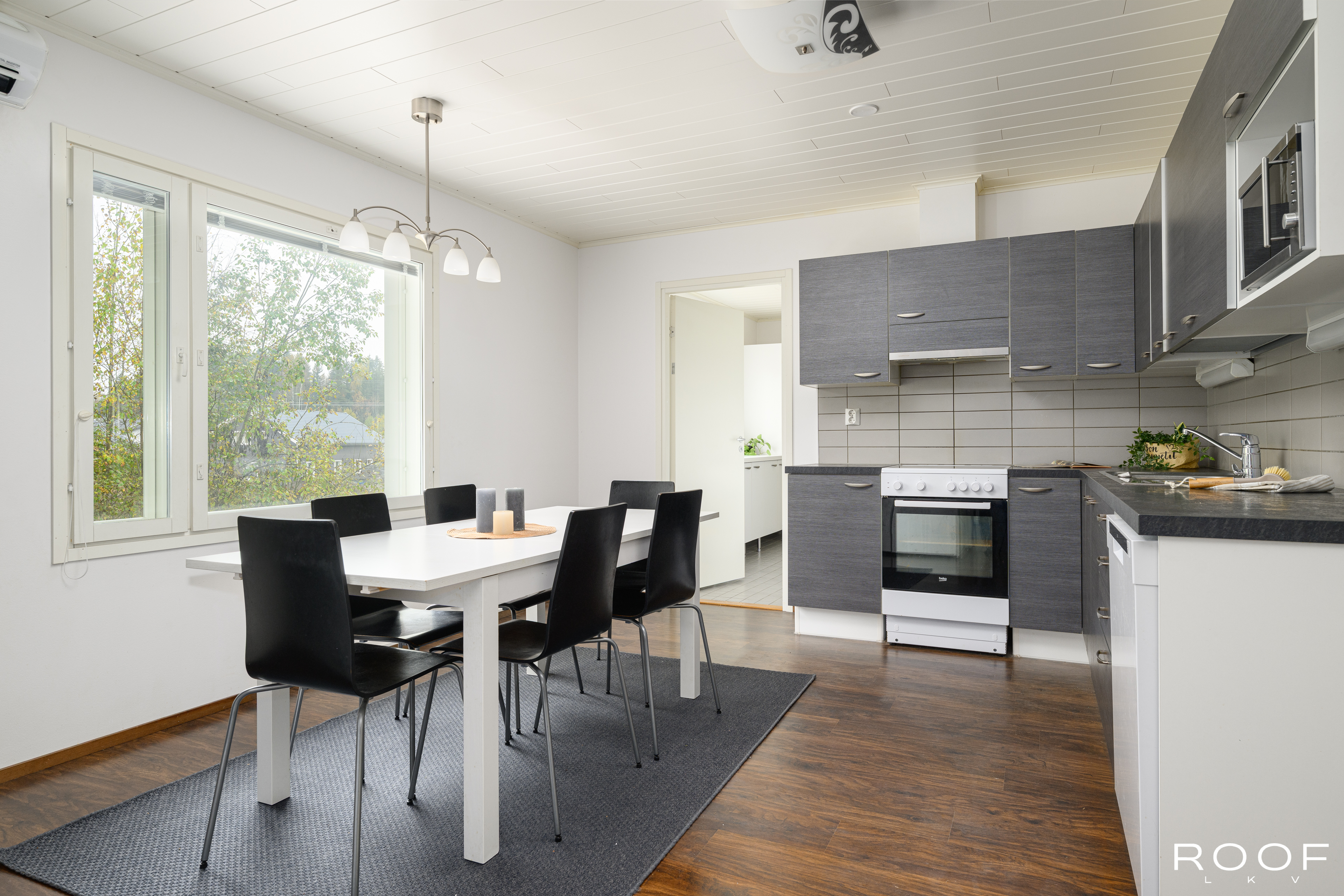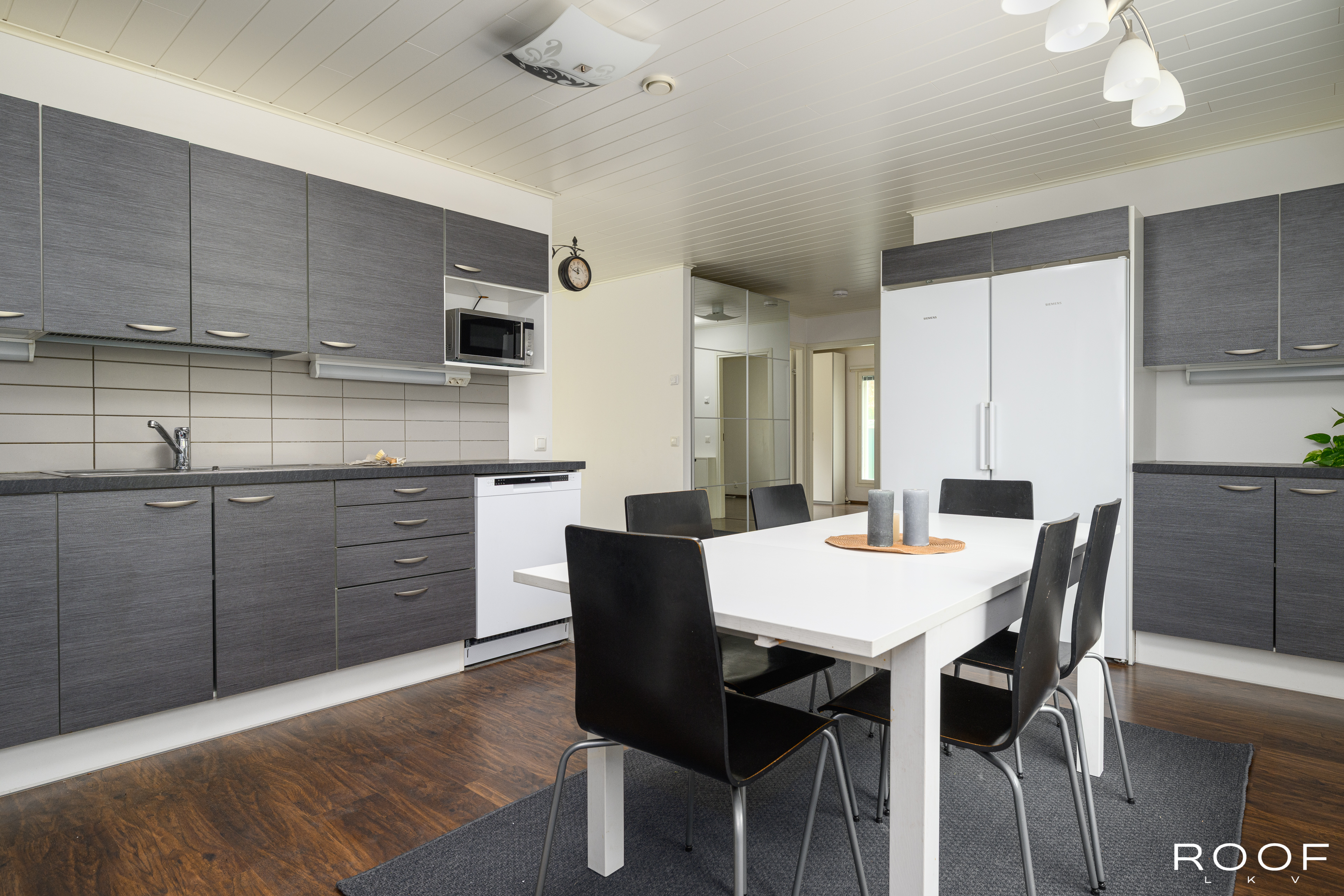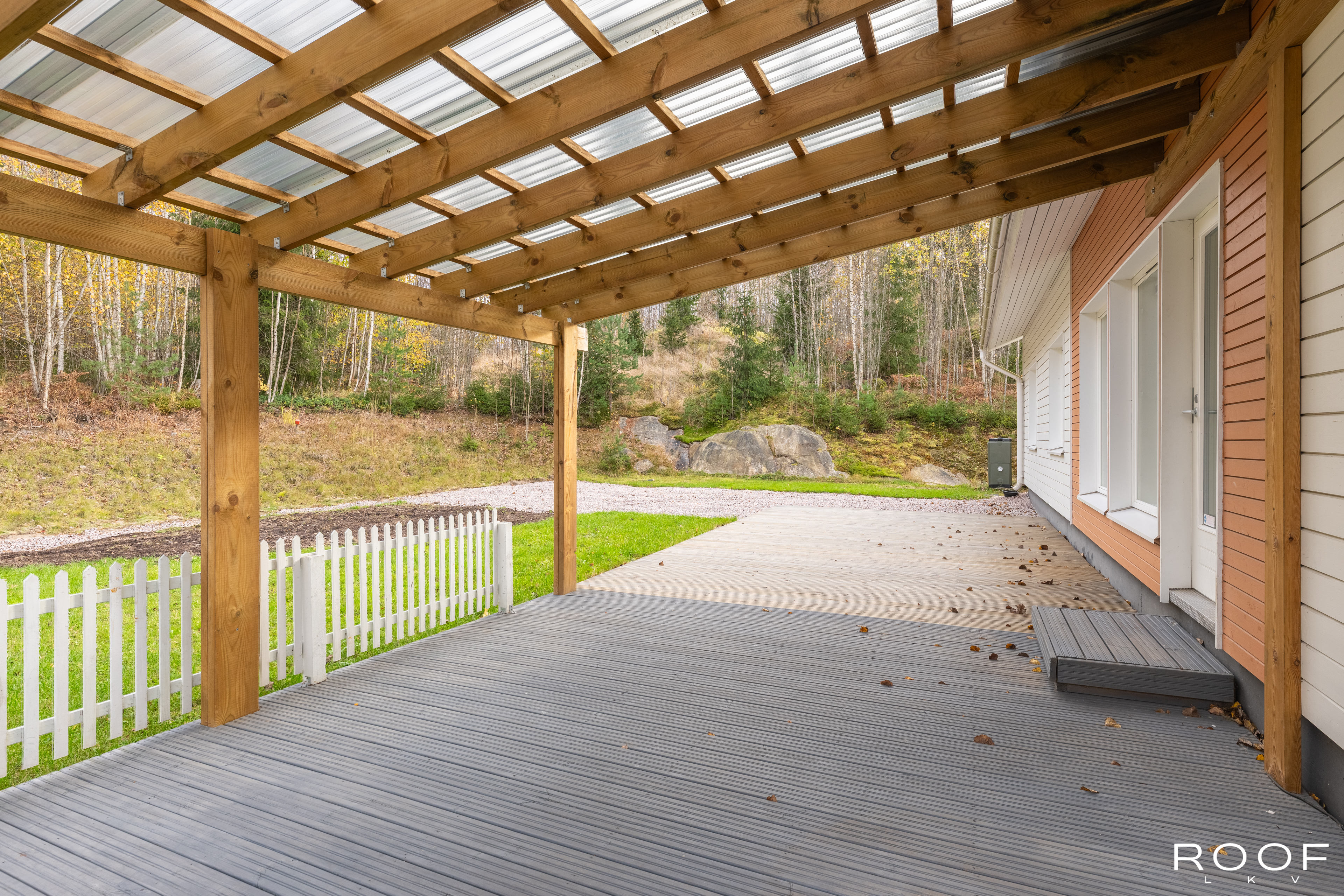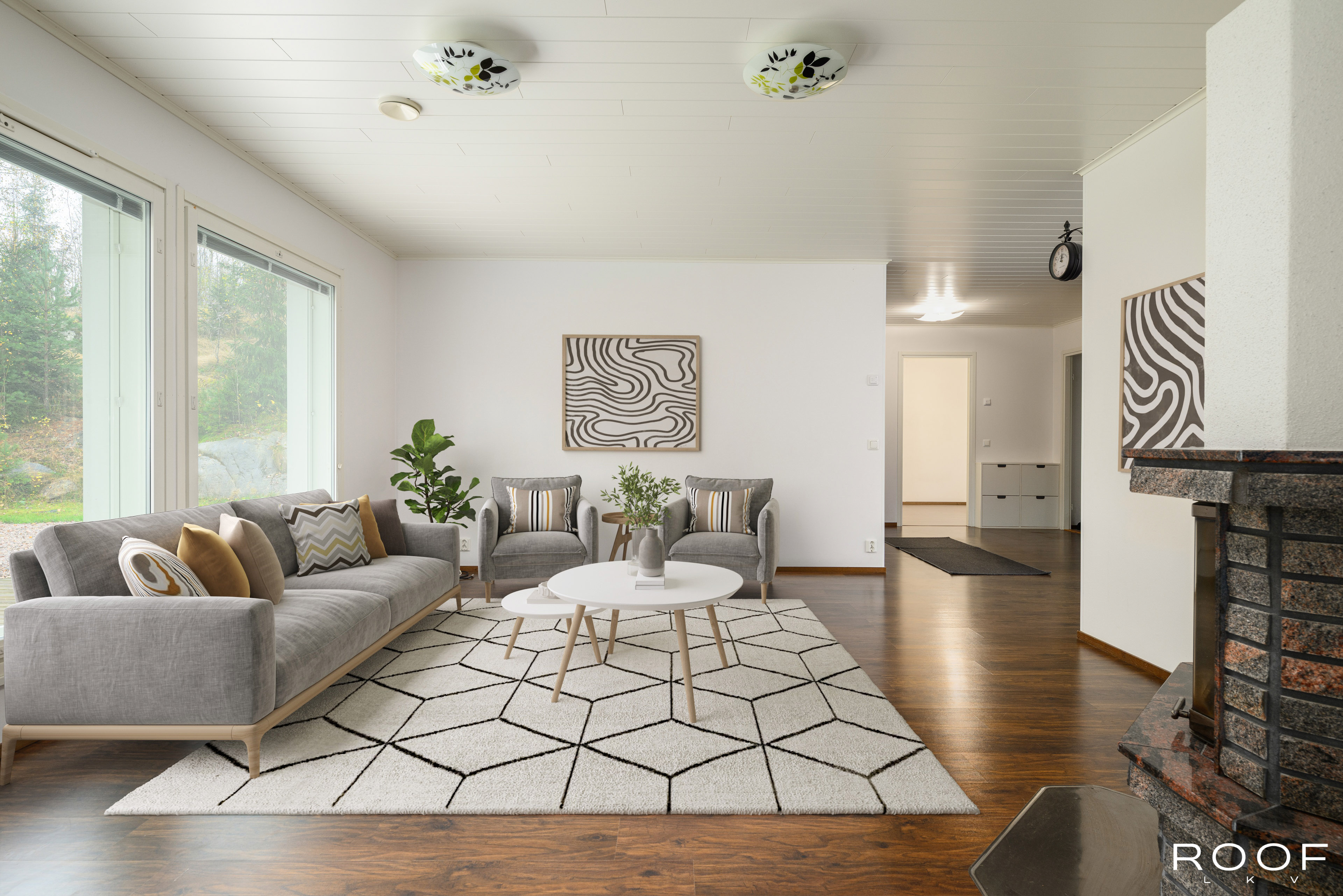 Tämä vuonna 2012 valmistunut, yksitasoinen omakotitalo tarjoaa avarat ja toimivat tilat perheelle, joka arvostaa laatua ja luonnonläheisyyttä. Talon sydämessä on valoisa olohuone, jossa varaava takka luo lämpöä ja tunnelmaa. Olohuoneesta on käynti suurelle, osittain katetulle terassille, jossa kesäpäivät ja ilta-aurinko kutsuvat viihtymään. Keittiö on hyvin varusteltu ja yhteydessä tilavaan ruokailutilaan, ja neljä makuuhuonetta tarjoavat runsaasti tilaa eri elämäntilanteisiin. Puukiukaallinen sauna, toimiva kodinhoitohuone omalla uloskäynnillä sekä nykyaikaiset mukavuudet – kuten lattialämmitys ja ilmalämpöpumppu , tekevät asumisesta vaivatonta vuoden ympäri.