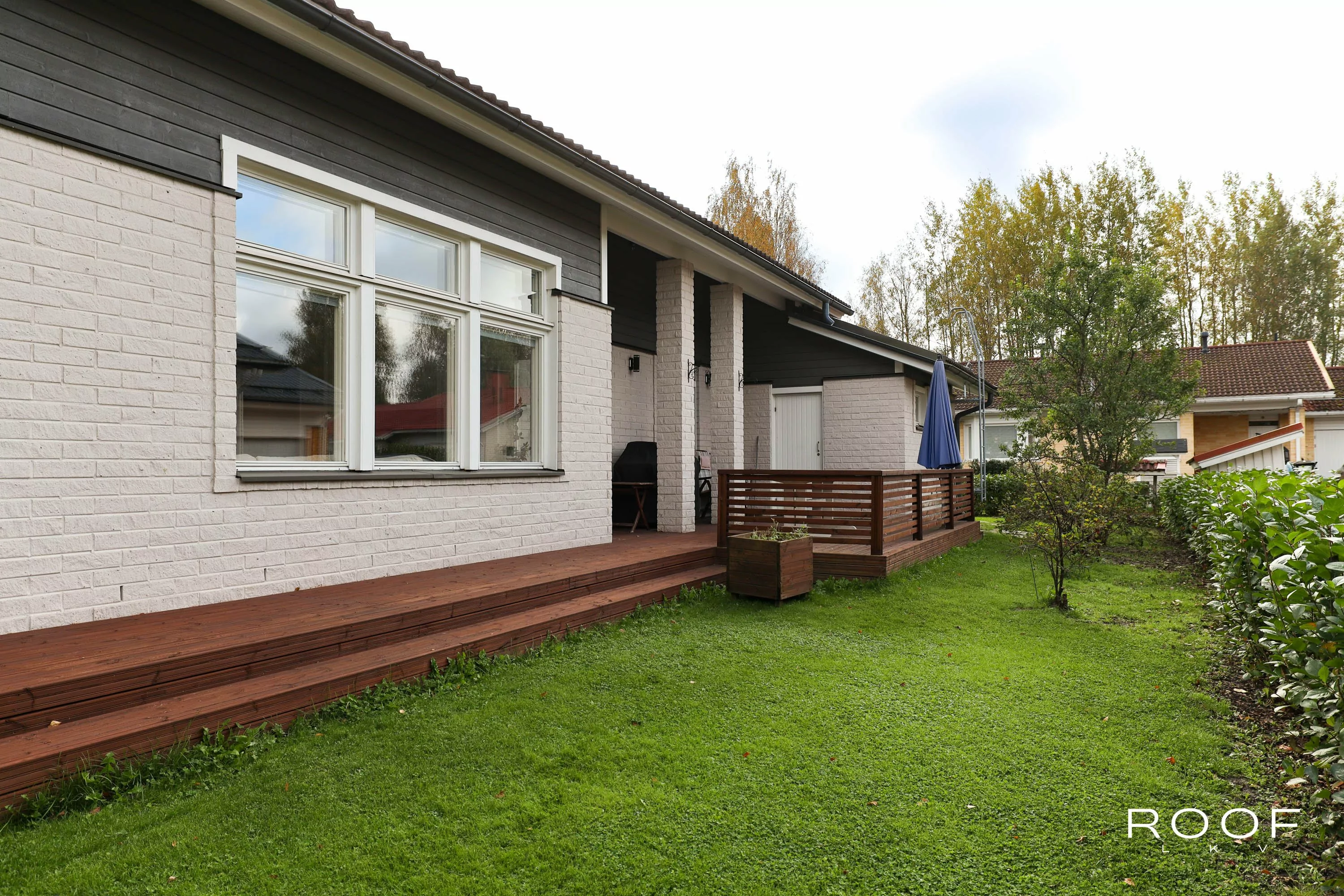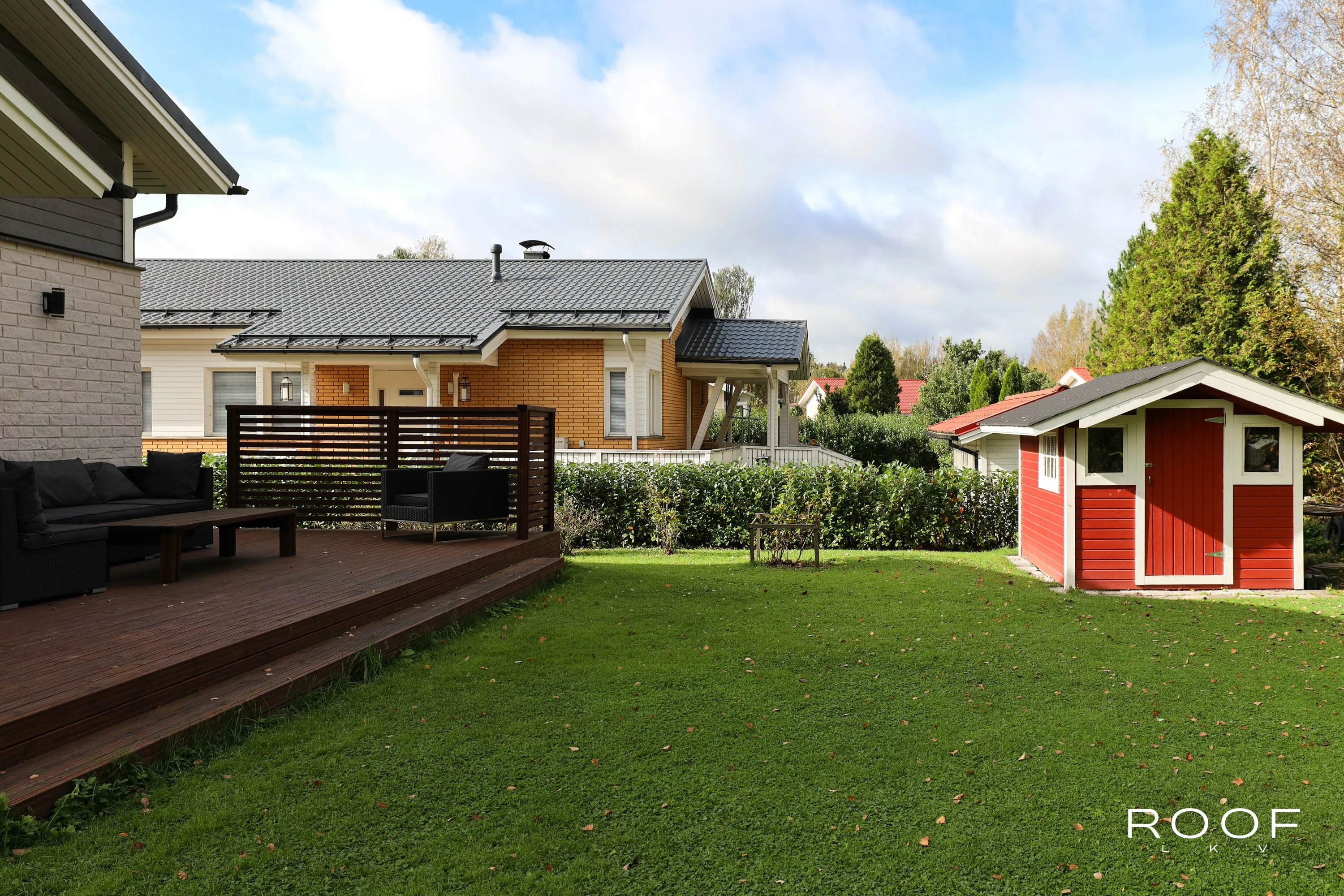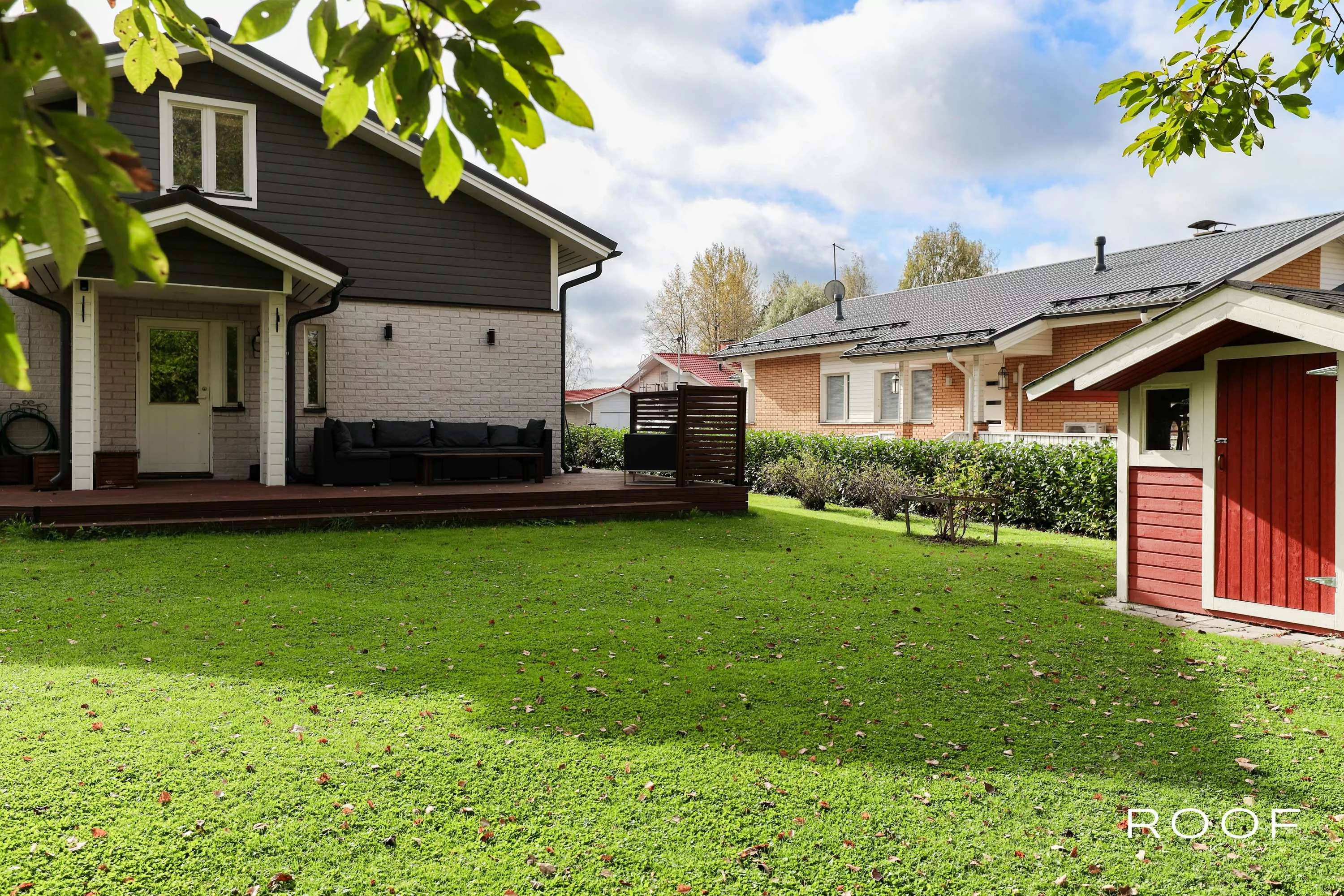 Iso piha rajoittuu suoraan metsäiseen puistoalueeseen, mikä tuo pihalle yksityisyyttä ja tilan tuntua. T...