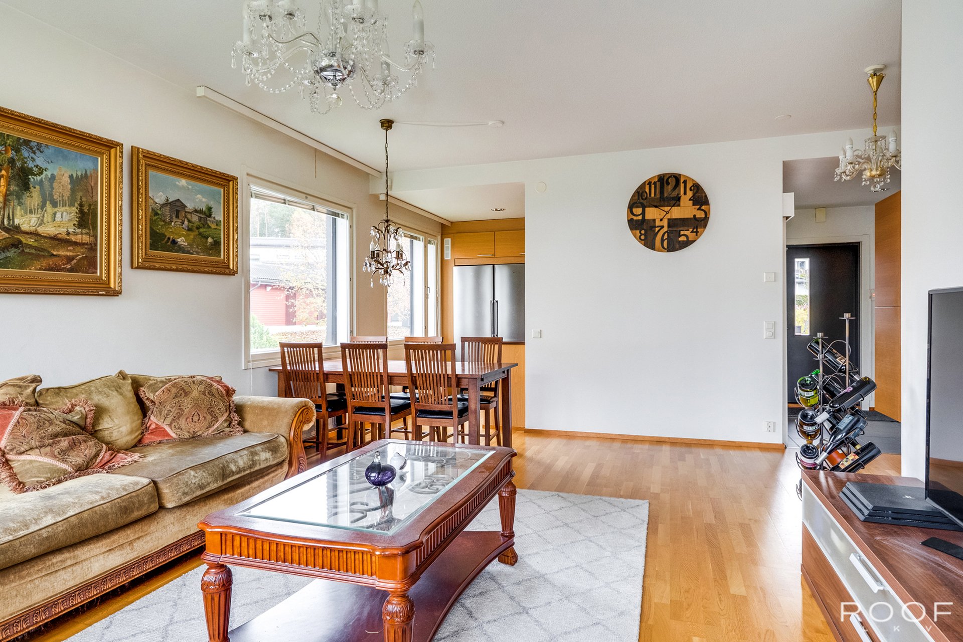 Nyt tarjolla rauhalliselta ja lapsiystävälliseltä asuinalueelta tilava rivitalohuoneisto. Tämä kaunis koti tarjoaa runsaiden neliöidensä ja varustuksiensa osalta vastinetta tämän päivän toiveisiin. Asunnon pohjaratkaisu tarjoaa avaruutta olohuoneen yhdistyessä toivotusti keittiöön. Olohuoneen ja keittiön yhteyteen saa mahtumaan isommankin sohvaryhmän ja ruokapöydän. Olohuoneesta kulku huoneiston länsi suuntaan avautuvalle pihaterassille, jossa nautit kesäisistä hetkistä. Asunnolla neljä makuuhuonetta, joista yksi sijaitsee olohuoneen vieressä ja kolme huoneis...
