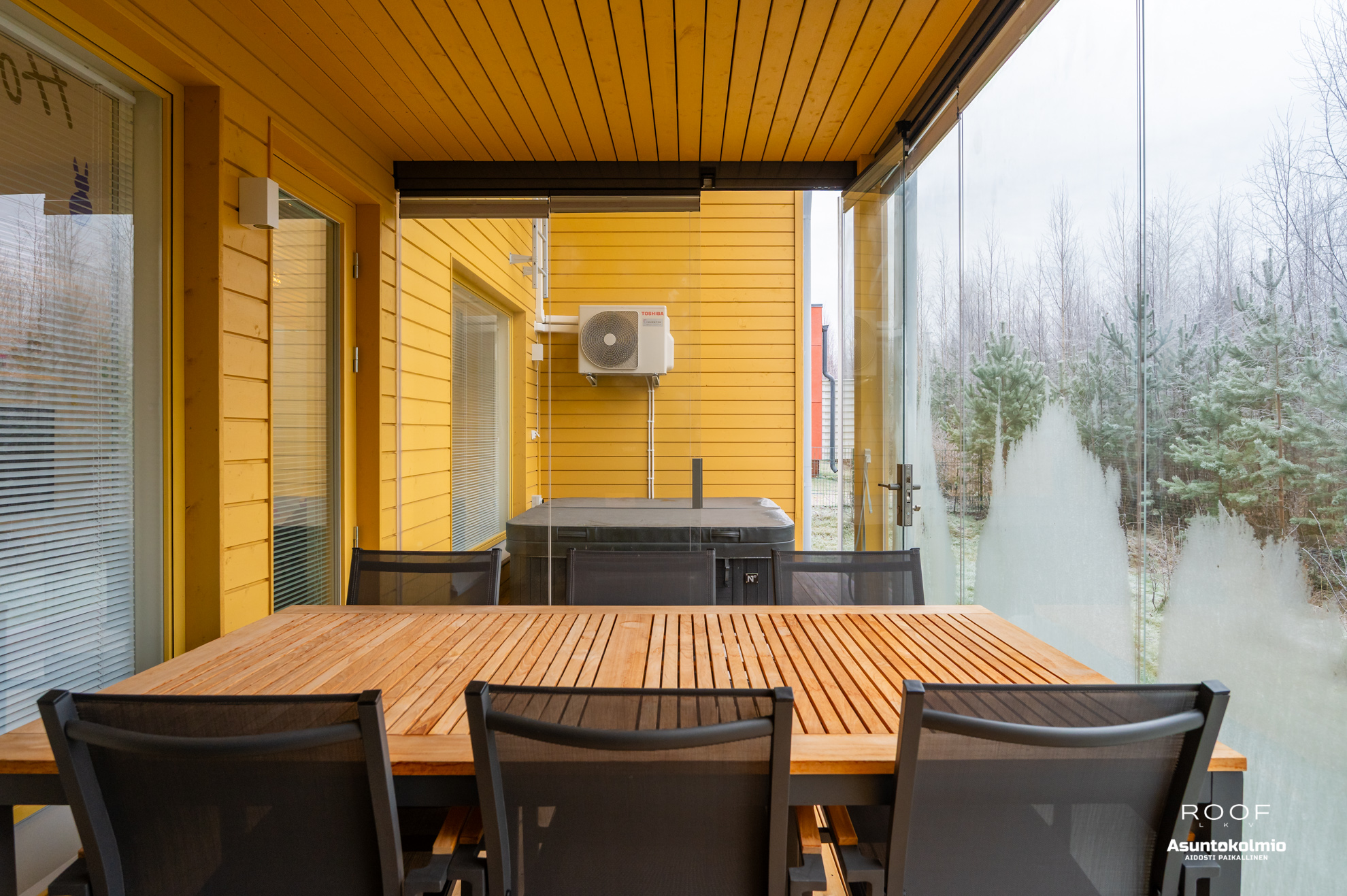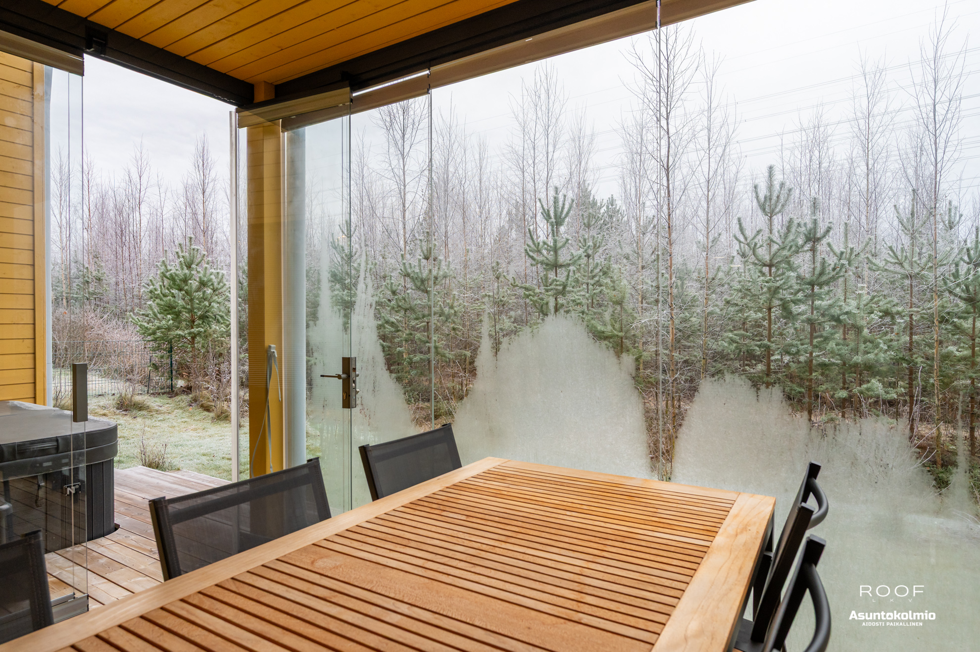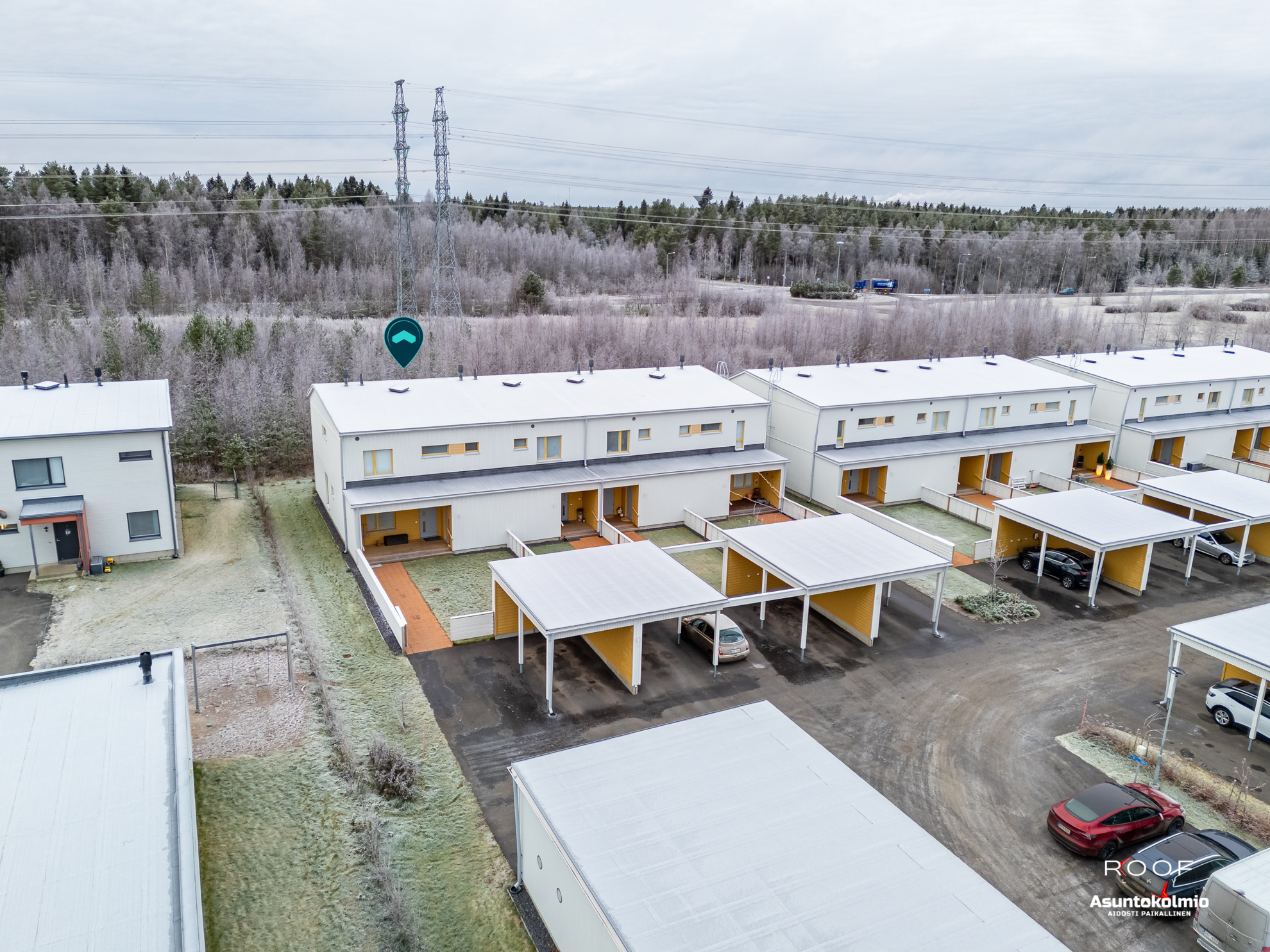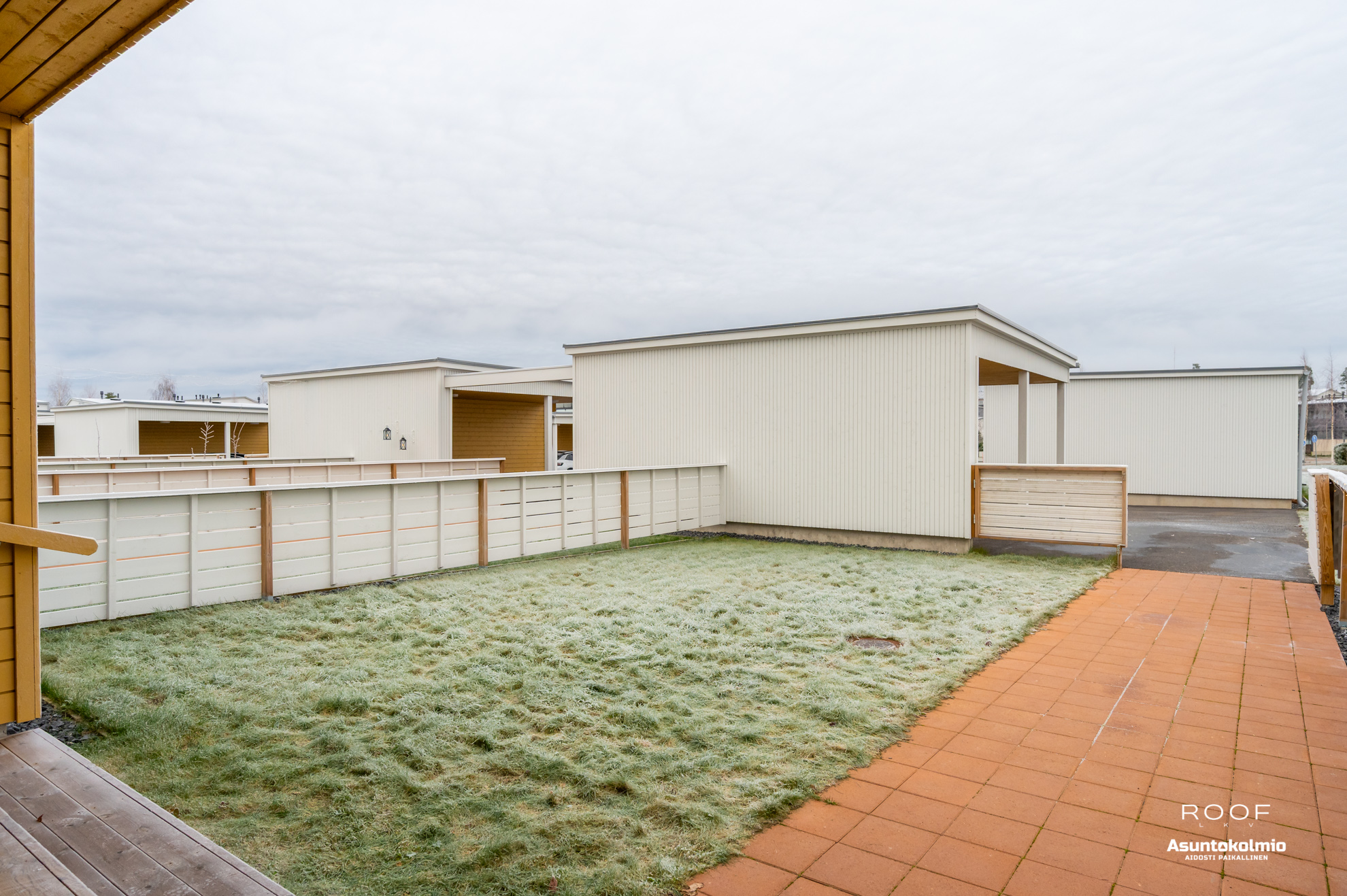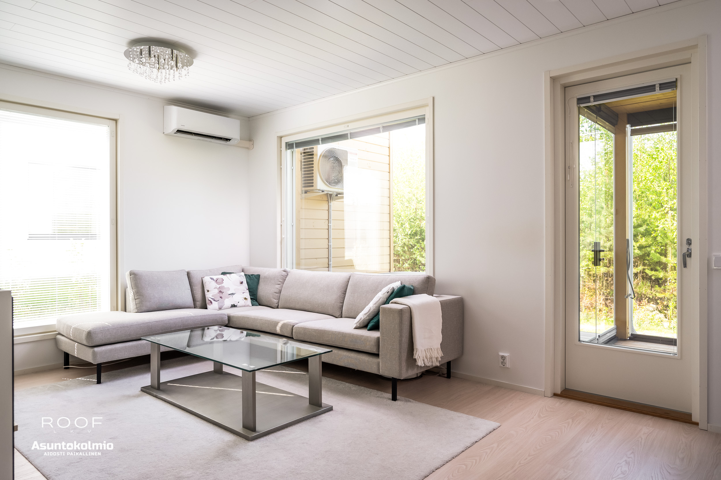 Vuonna 2022 valmistunut neljän makuuhuoneen suuri 119,5m2 rivitalon päätykoti metsään rajoittuvalla takapihalla.