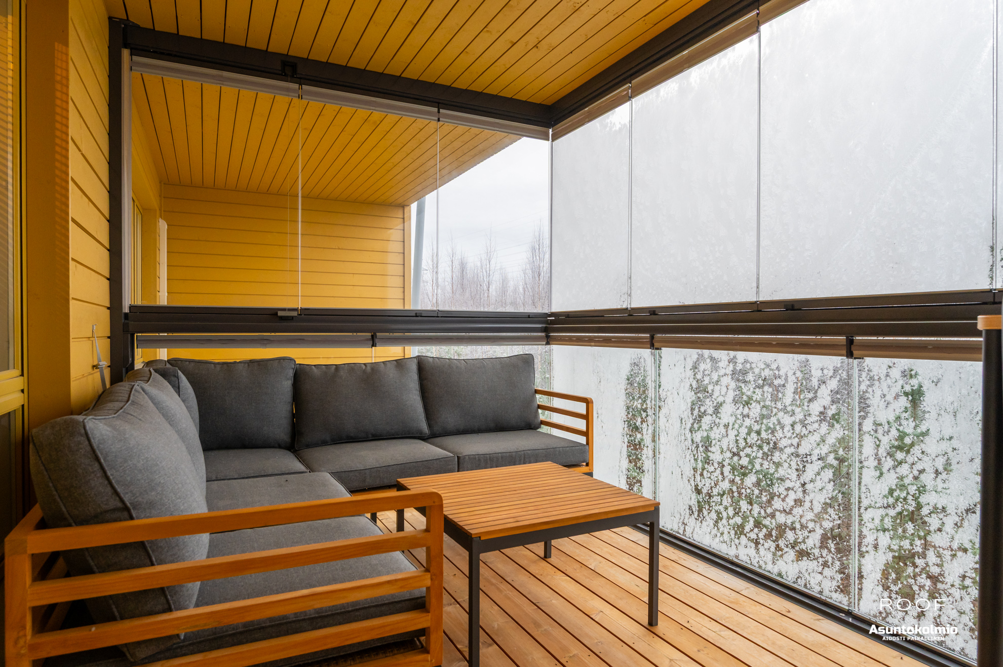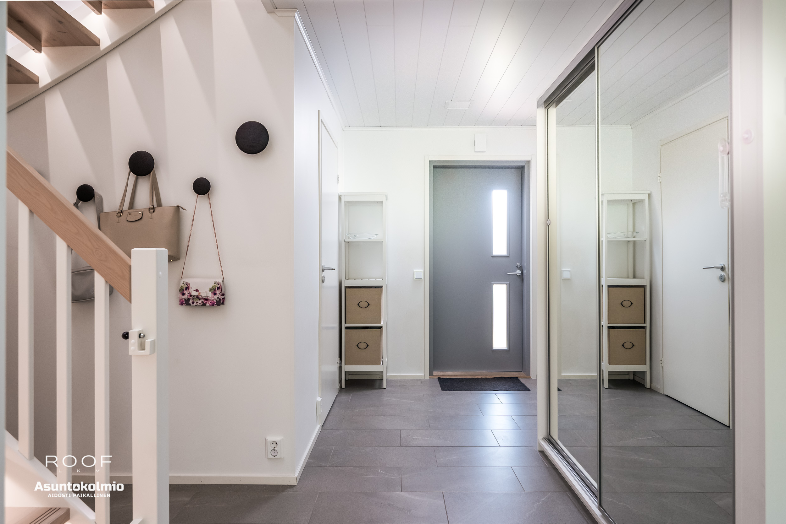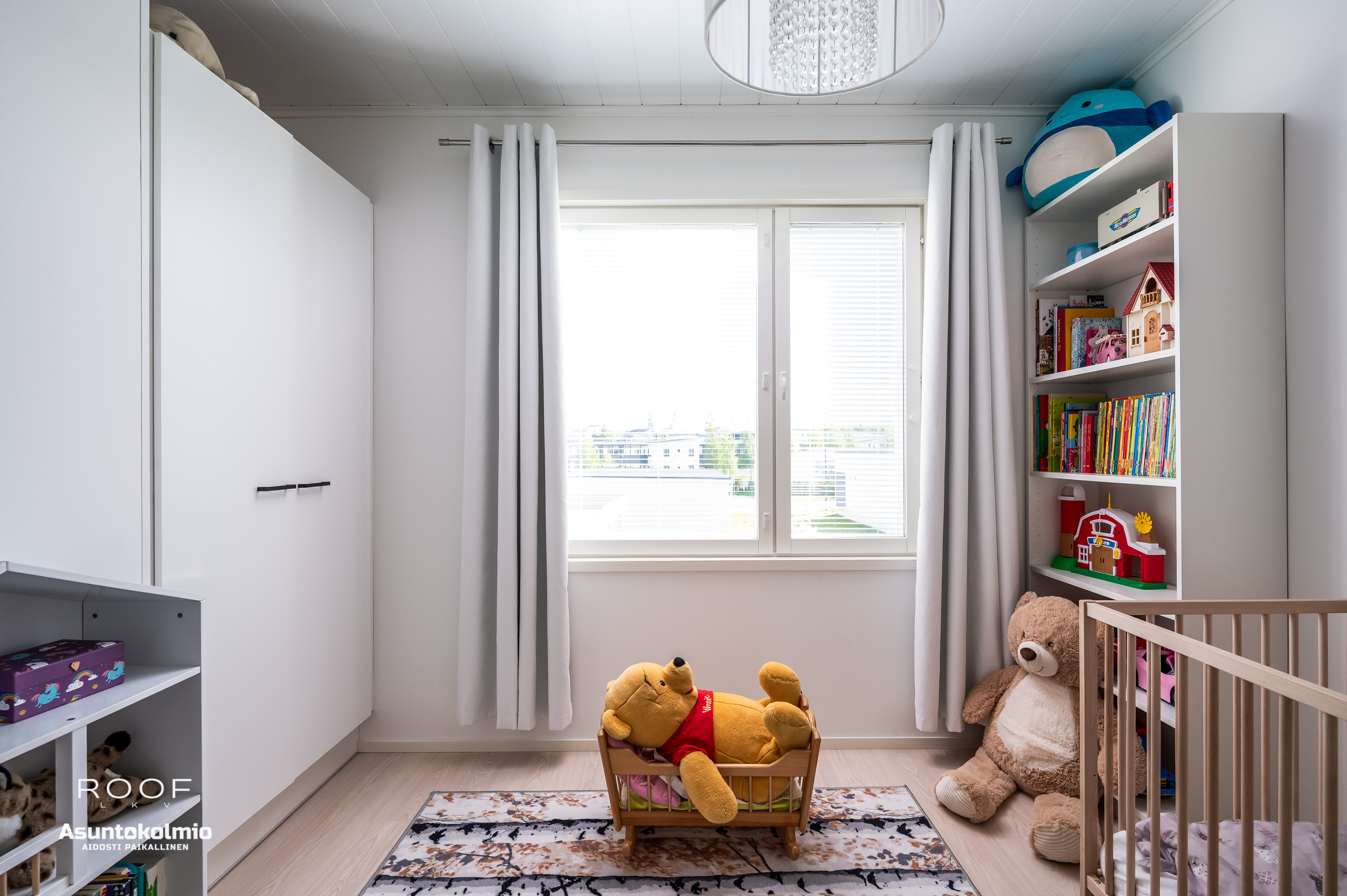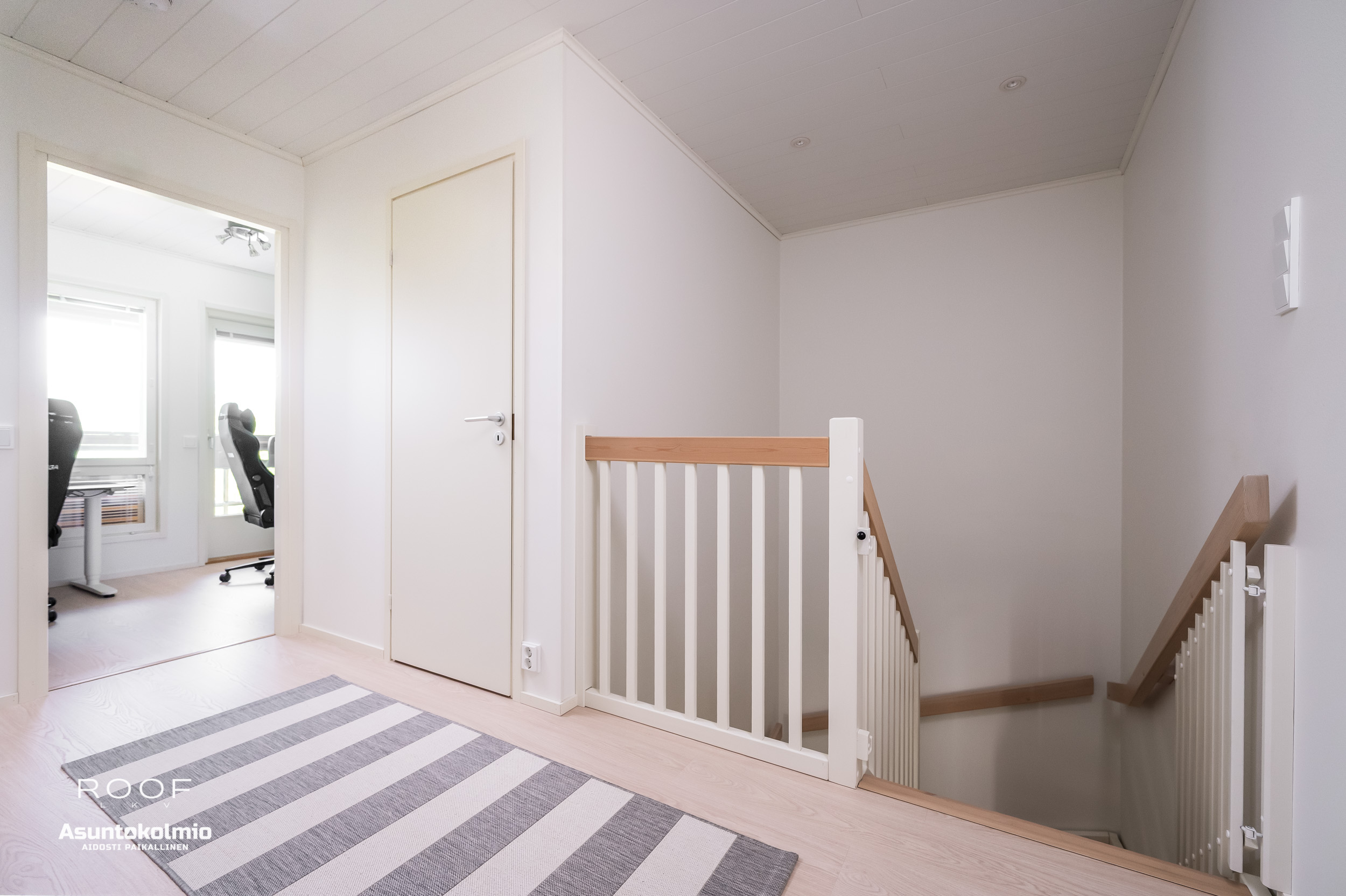 Tervetuloa As Oy Oulun Korundiin! Tämä suuri koti on loistava vaihtoehto esimerkiksi omakotitalolle, mikäli toiveena on omakotitalon tilat ilman siinä asumisen tuomaa vaivaa sekä vastuuta. Yksi makuuhuoneista on alakerrassa suuren eteisen yhteydessä ja kolme muuta löytyy yläkerrasta, jonne on sijoitettu myös kylpyhuone sekä sauna. Yläaulasta on kulku myös reilun kokoiseen vaatehuoneeseen. Arkea sujuvoittaa oma erillinen kodinhoitohuone.