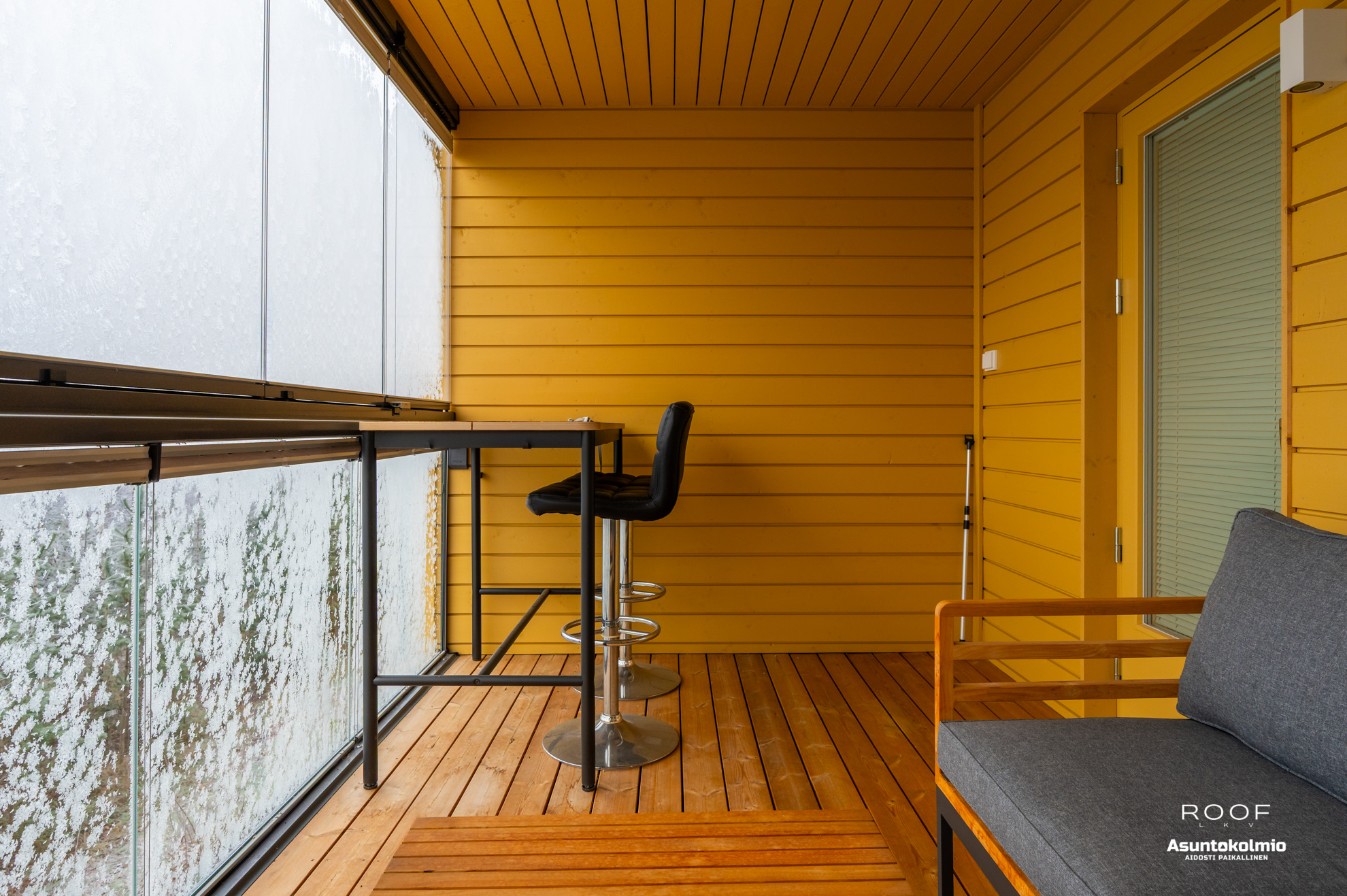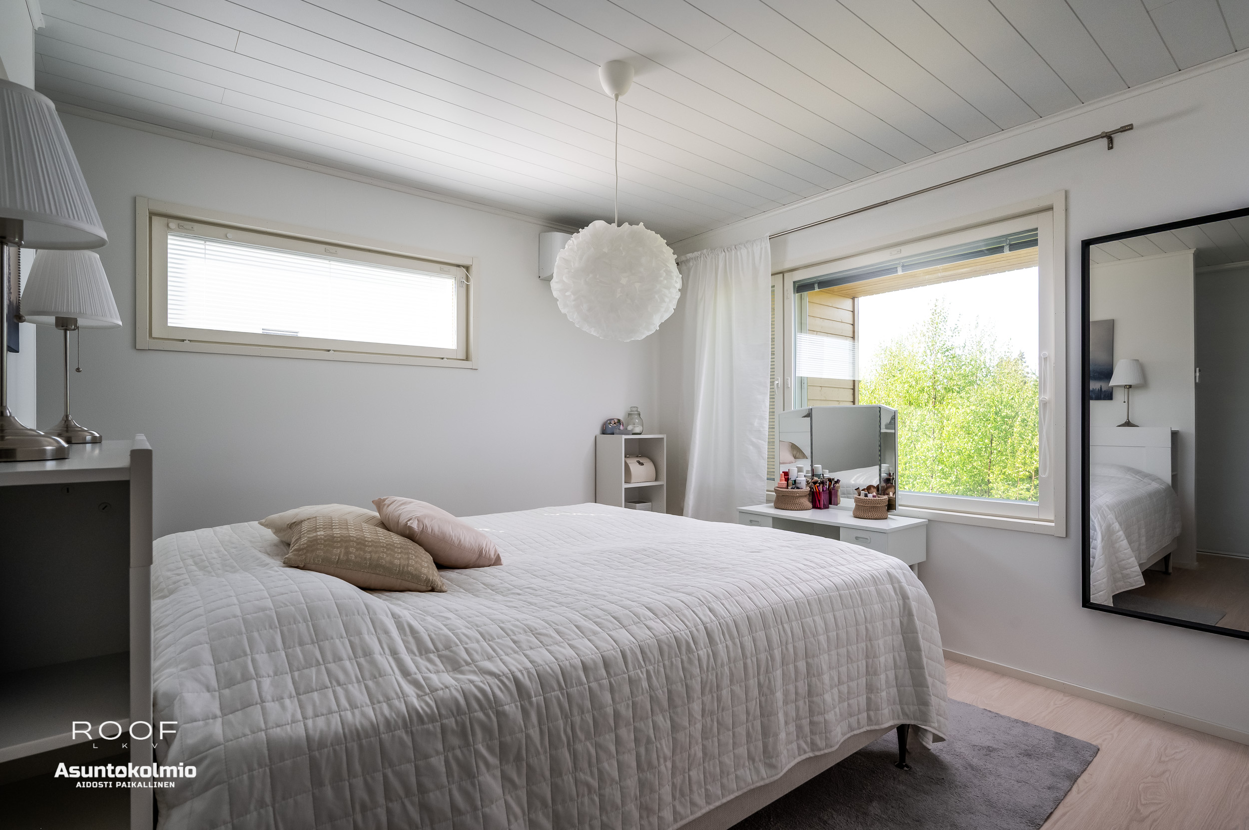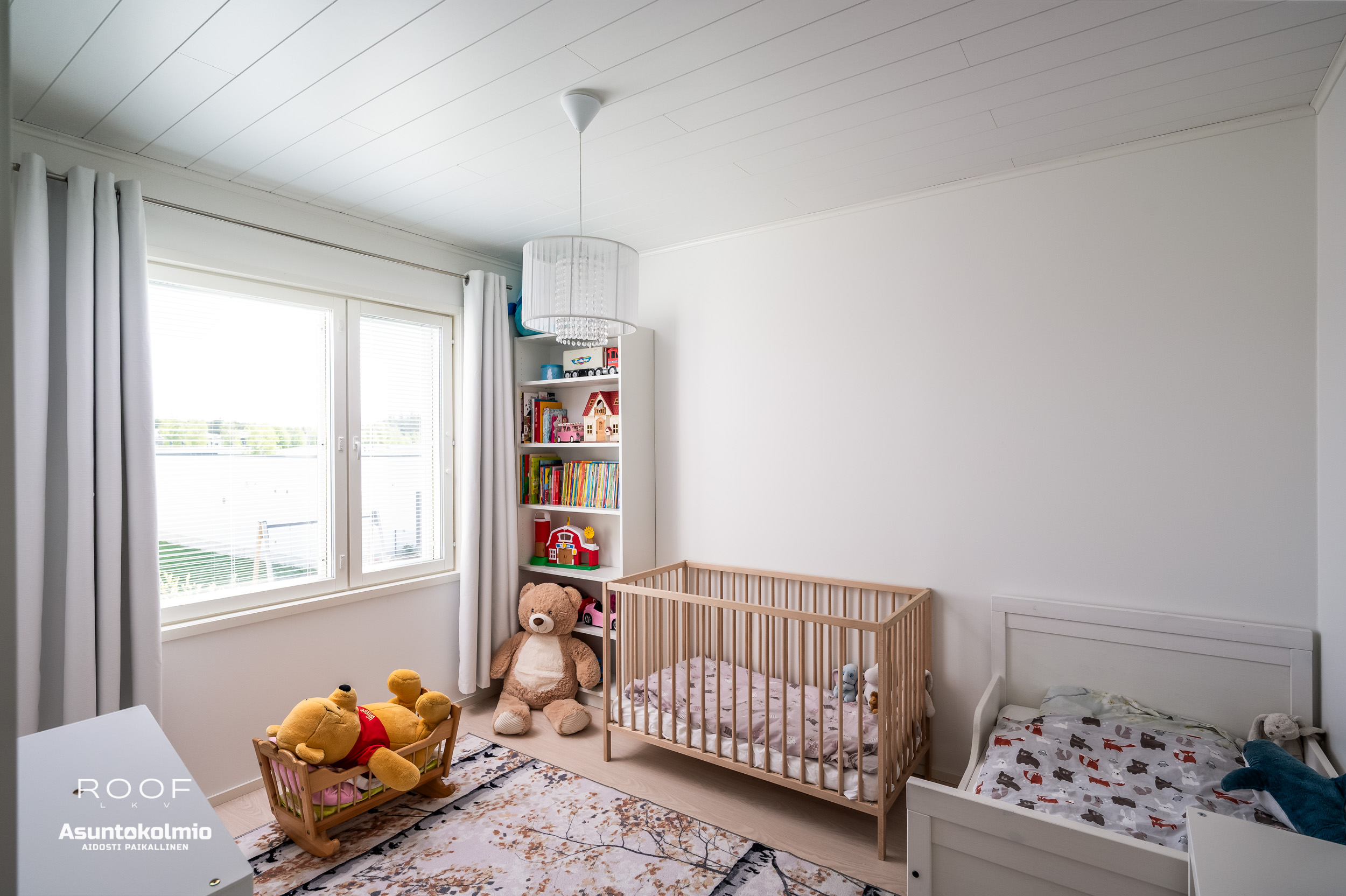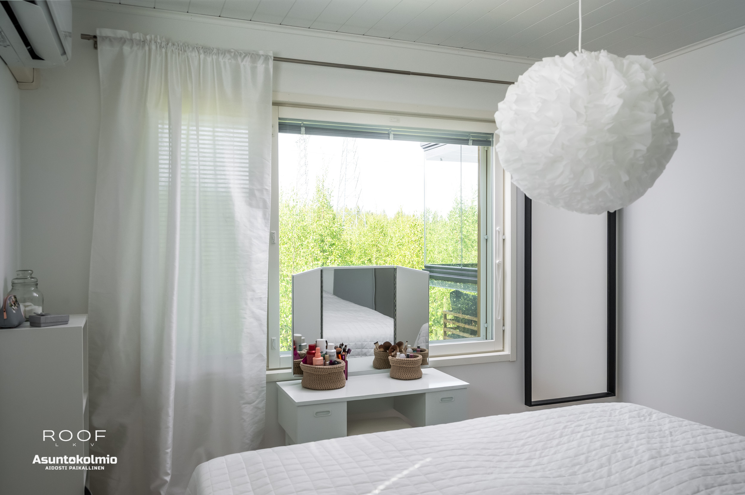 Tervetuloa As Oy Oulun Korundiin! Tämä suuri koti on loistava vaihtoehto esimerkiksi omakotitalolle, mikäli toiveena on omakotitalon tilat ilman siinä asumisen tuomaa vaivaa sekä vastuuta. Yksi makuuhuoneista on alakerrassa suuren eteisen yhteydessä ja kolme muuta löytyy yläkerrasta, jonne on sijoitettu myös kylpyhuone sekä sauna. Yläaulasta on kulku myös reilun kokoiseen vaatehuoneeseen. Arkea sujuvoittaa oma erillinen kodinhoitohuone.