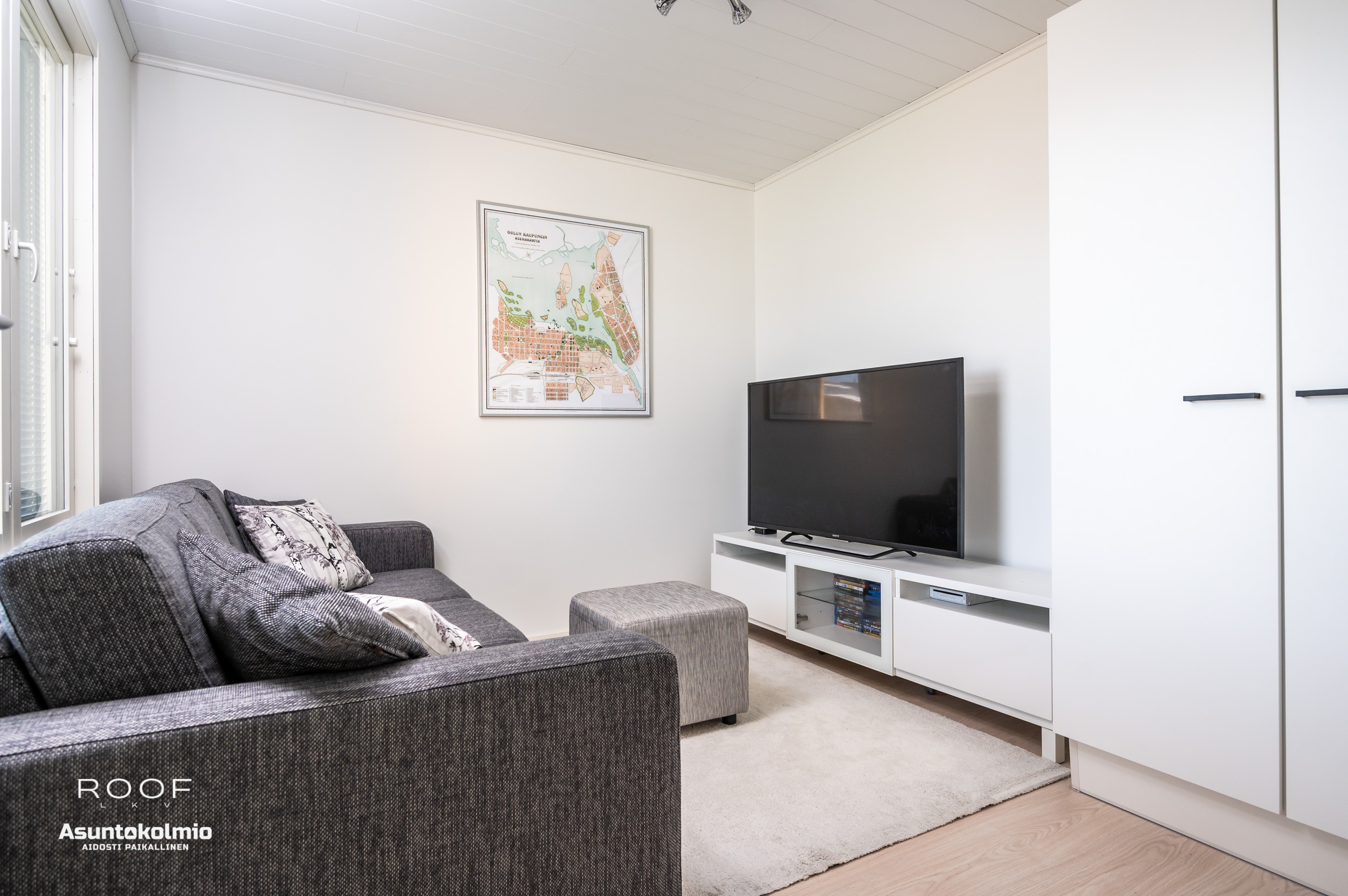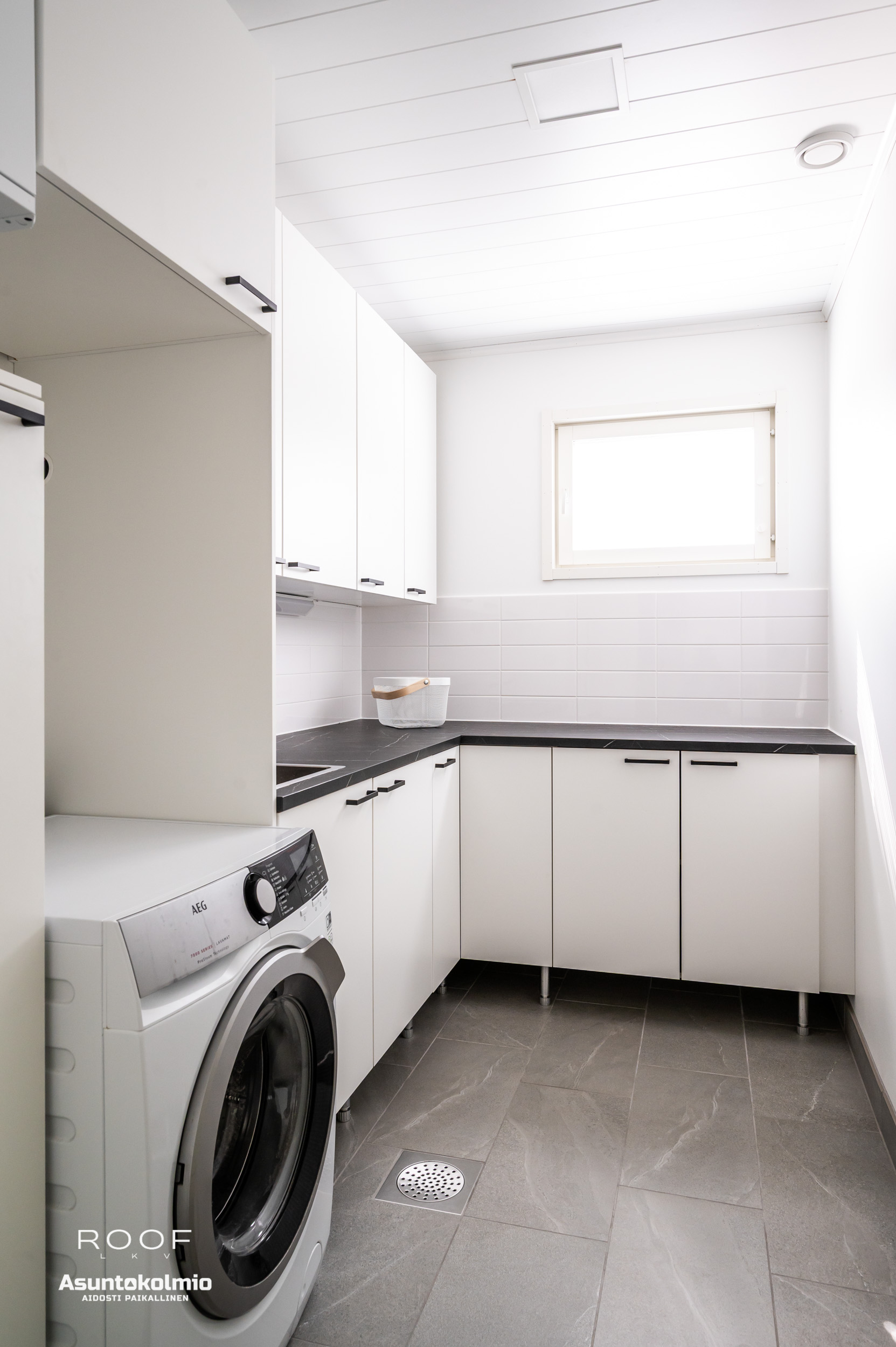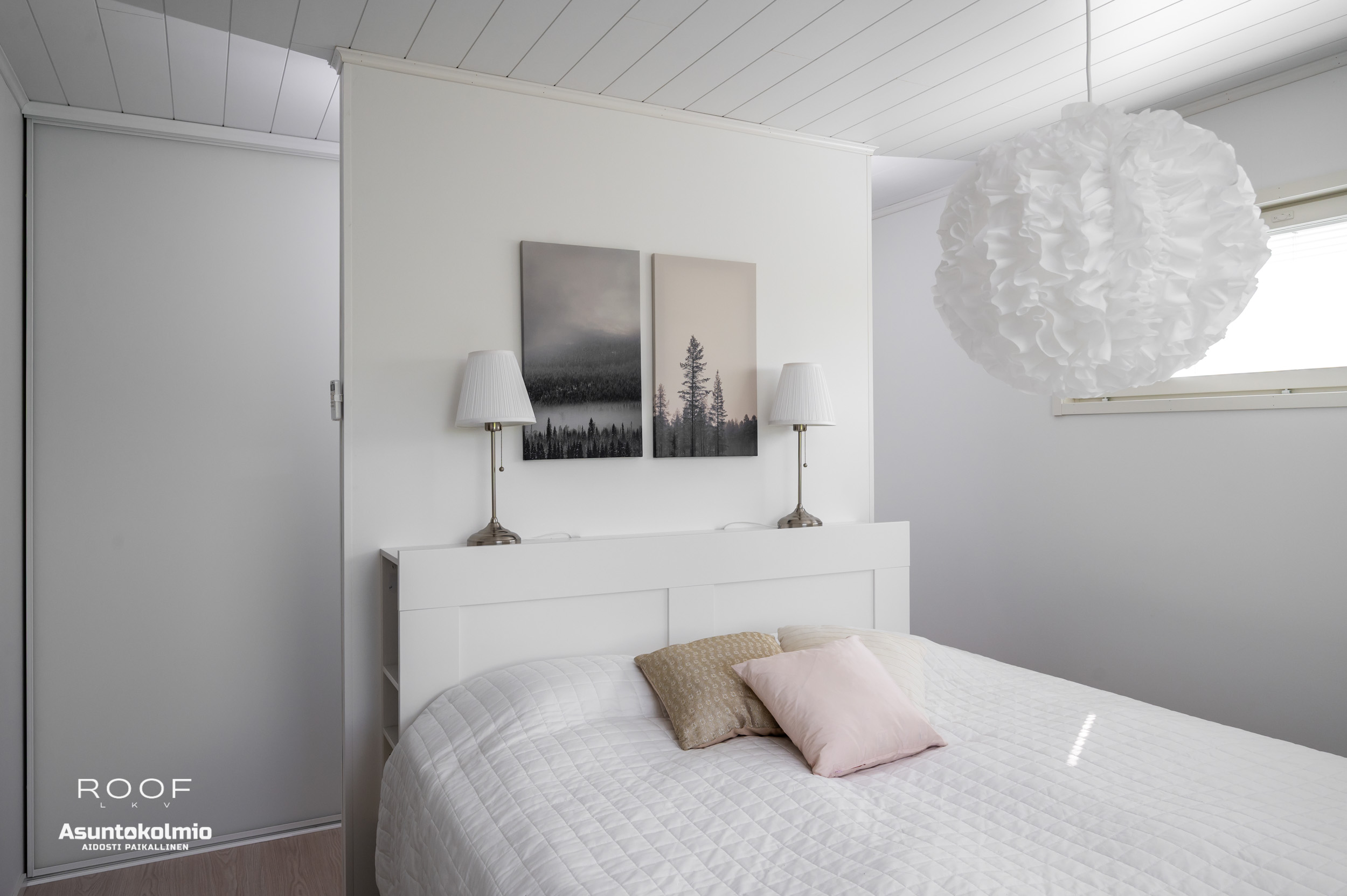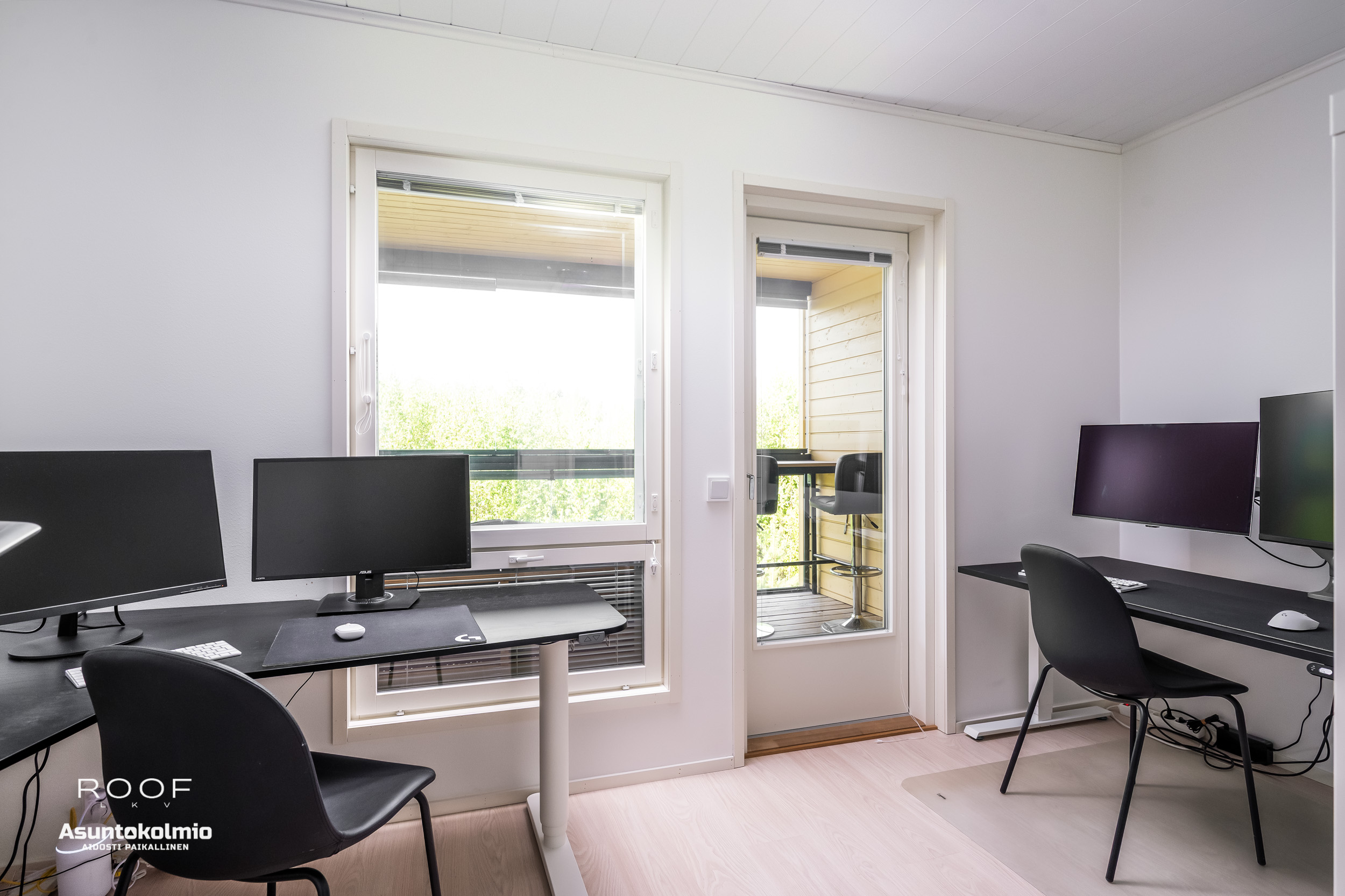 Tervetuloa As Oy Oulun Korundiin! Tämä suuri koti on loistava vaihtoehto esimerkiksi omakotitalolle, mikäli toiveena on omakotitalon tilat ilman siinä asumisen tuomaa vaivaa sekä vastuuta. Yksi makuuhuoneista on alakerrassa suuren eteisen yhteydessä ja kolme muuta löytyy yläkerrasta, jonne on sijoitettu myös kylpyhuone sekä sauna. Yläaulasta on kulku myös reilun kokoiseen vaatehuoneeseen. Arkea sujuvoittaa oma erillinen kodinhoitohuone.