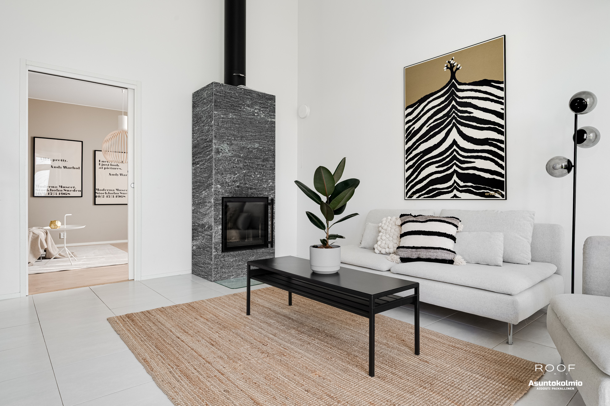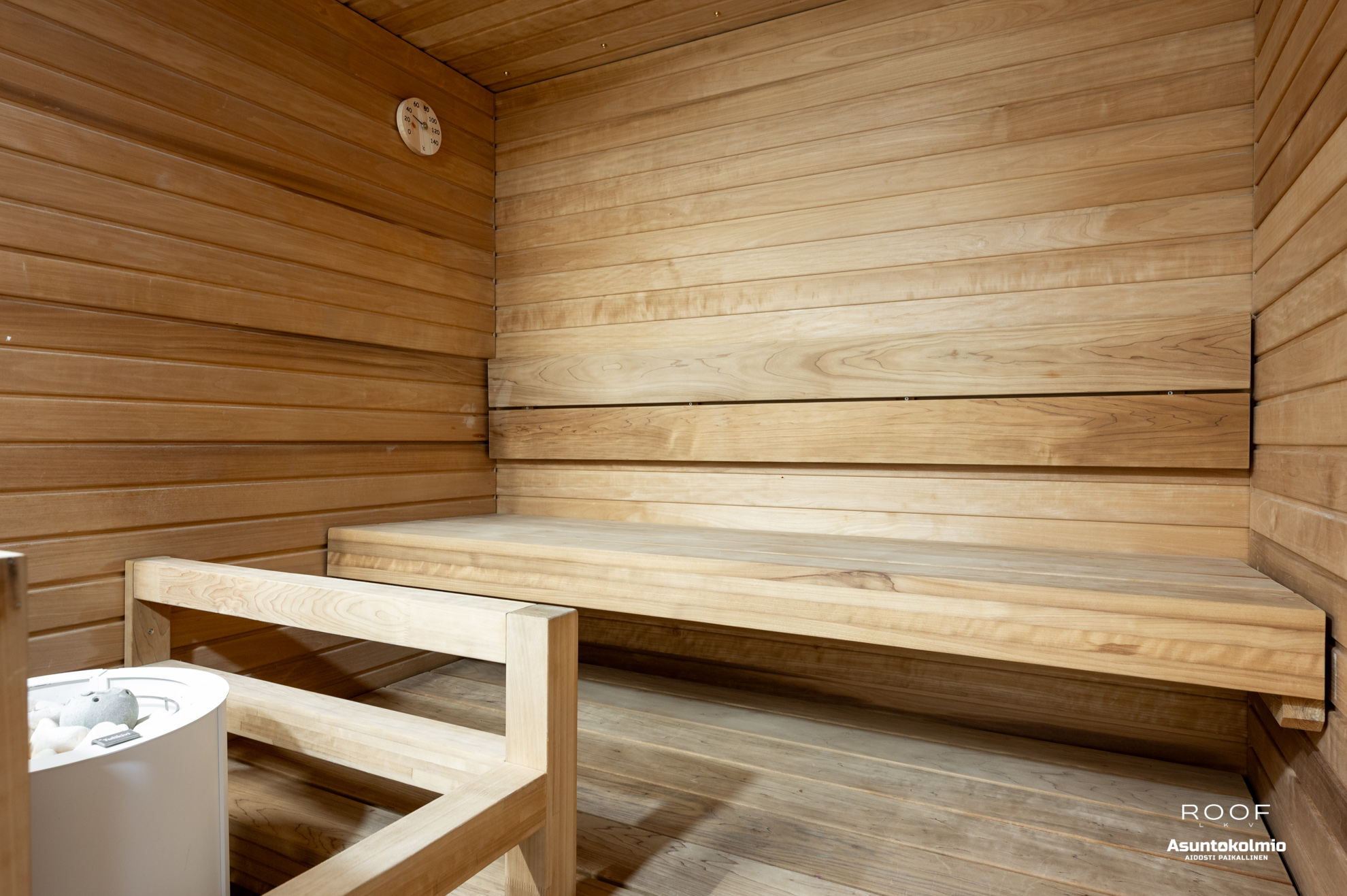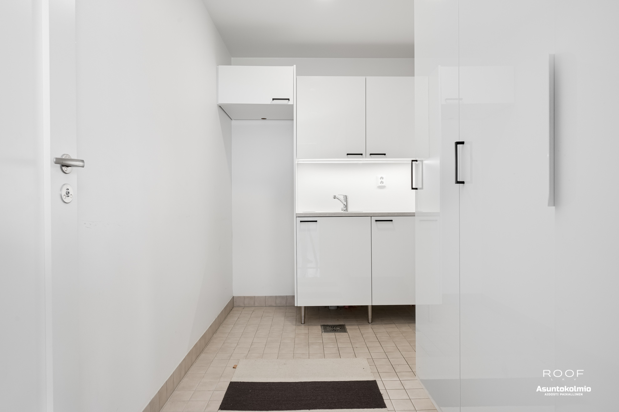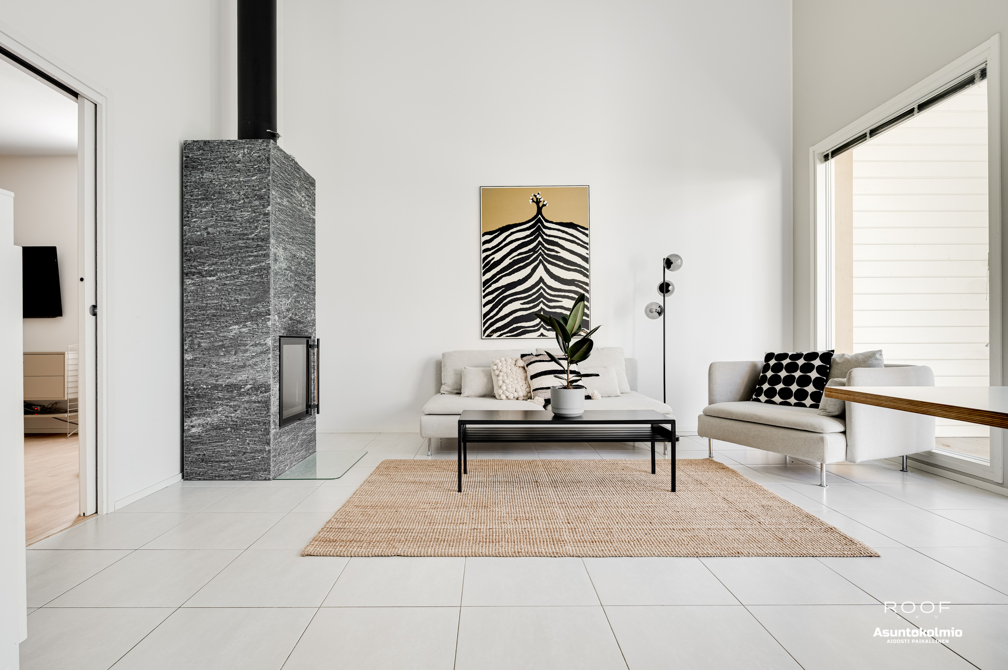 Huoneiston edestä löytyy kahden auton katos sekä lämmin varasto, ja lämpimästä väestönsuojasta löytyy lisää säilytystilaa. Olohuoneesta on käynti aurinkoiselle lounaaseen suuntautuvalle terassille, ja pihalle sopii varmasti kaikki, mitä lapsiperhe kaipaa. Tekniikaltaan asunto on luonnollisesti täydellisen moderni. Lämmitysmuotona on kaukolämpö vesikiertoisella lattialämmityksellä ja ilmanvaihto hoituu koneellisesti. Lisäksi löytyy viilentävä ilmalämpöpumppu kesähelteille ja varaava takka tuomaan tunnelmaa talvipakkasille.